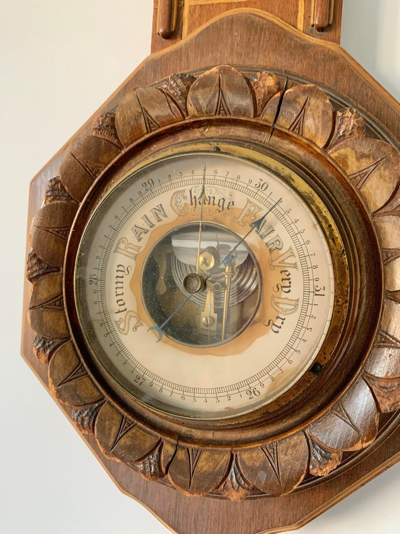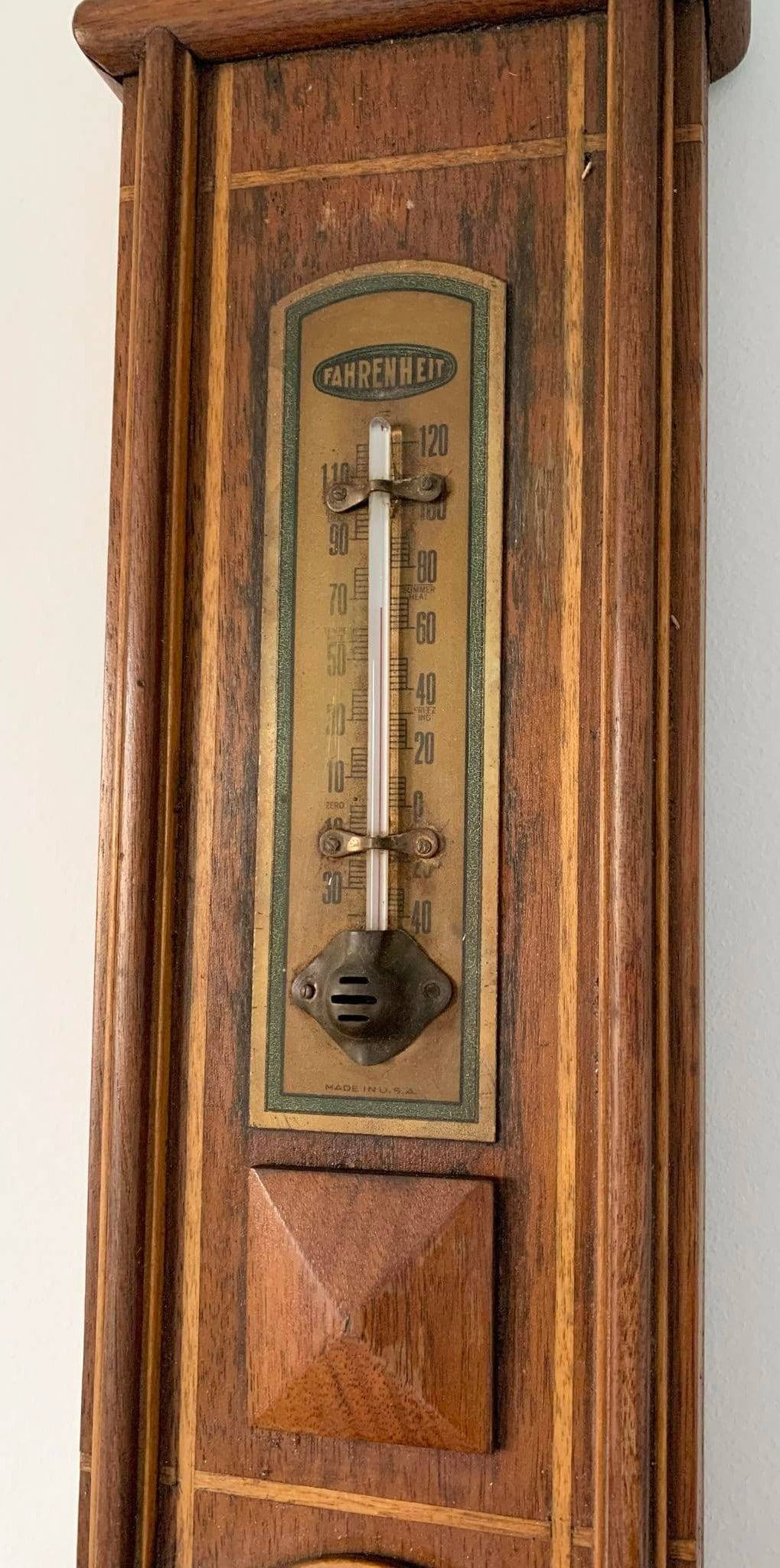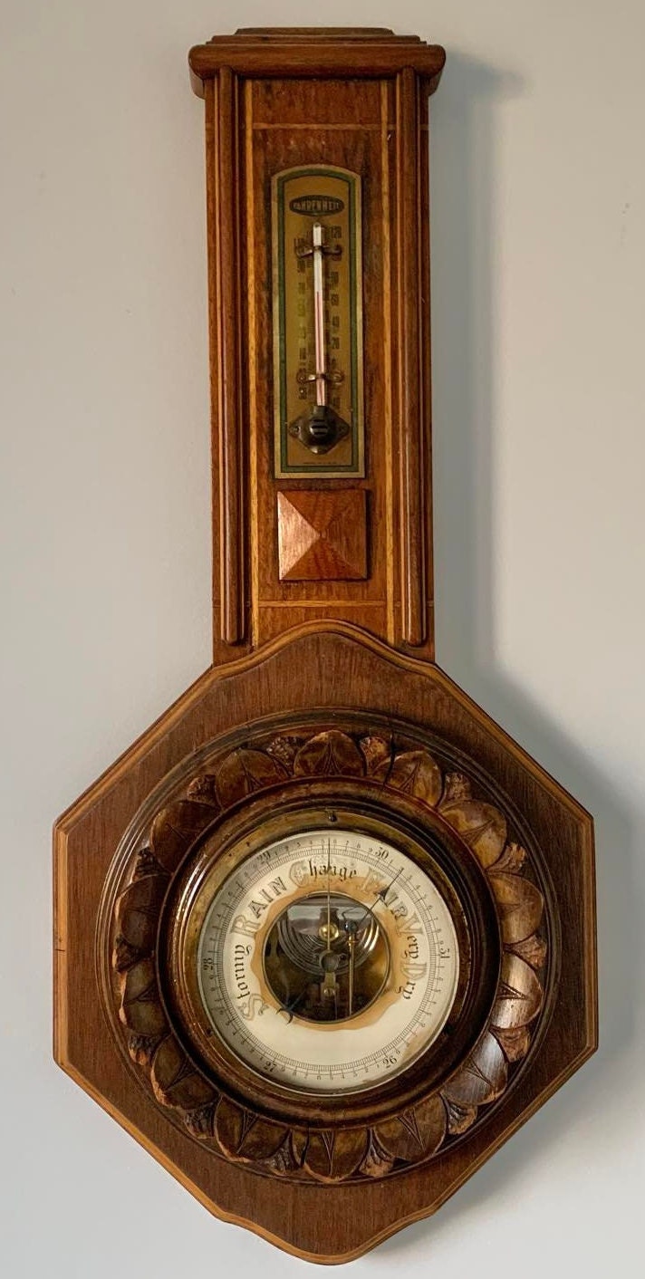 Large Antique Victorian Carved Wood Wall Aneroid Barometer - Made in the USA