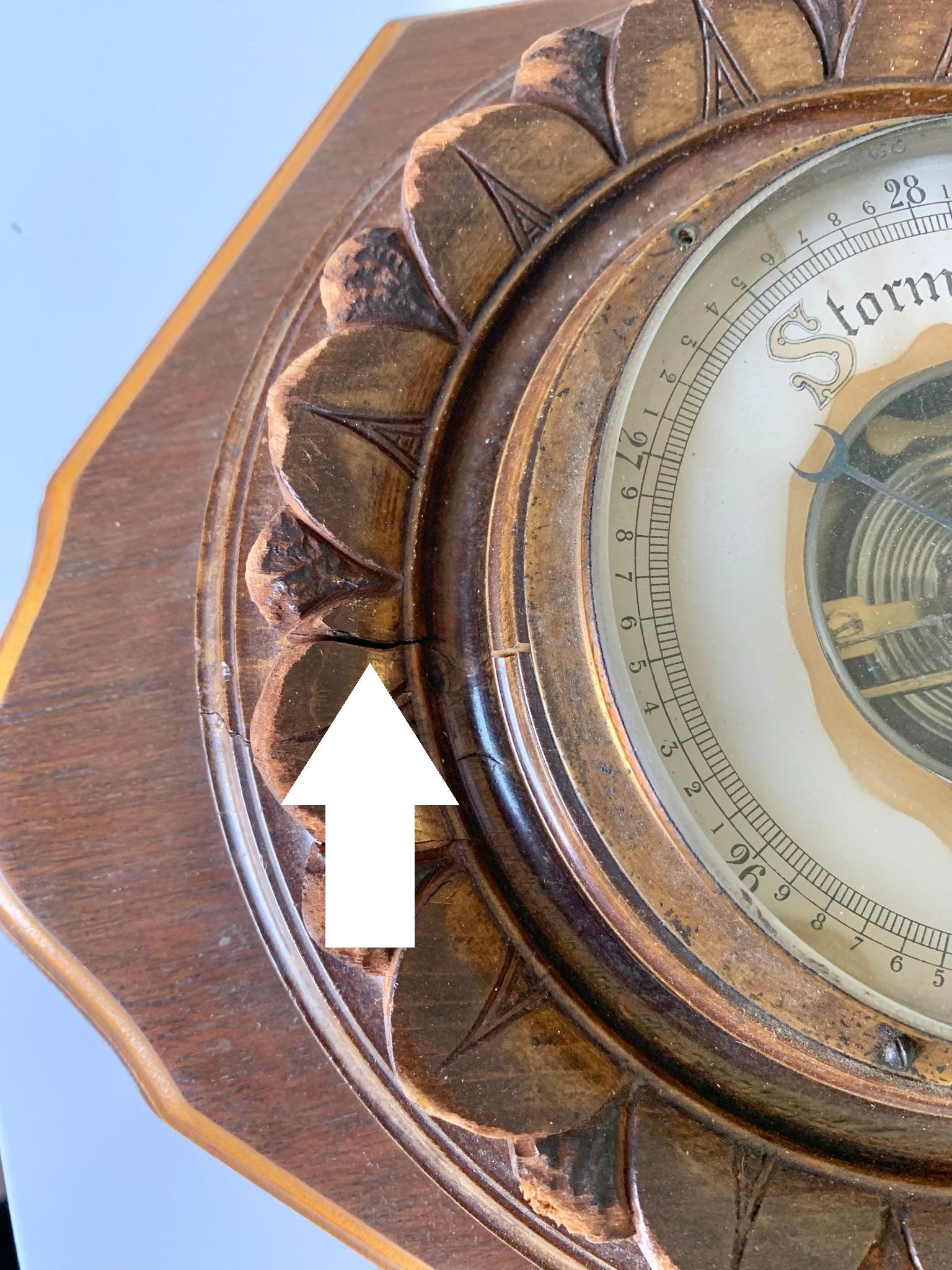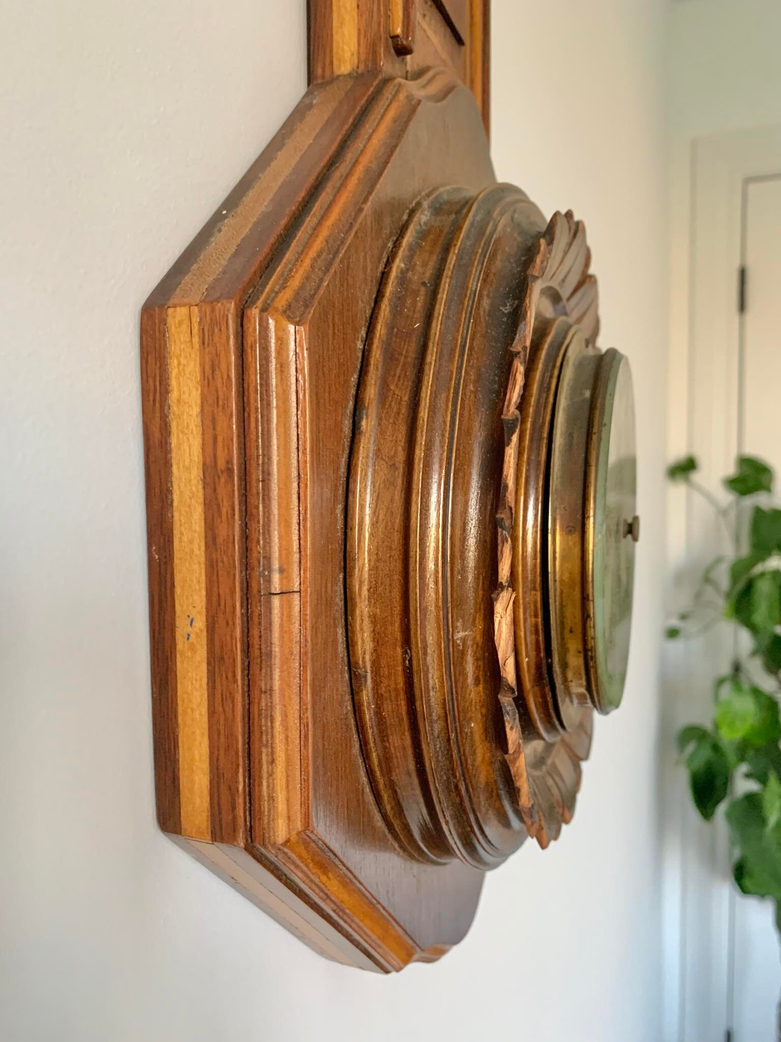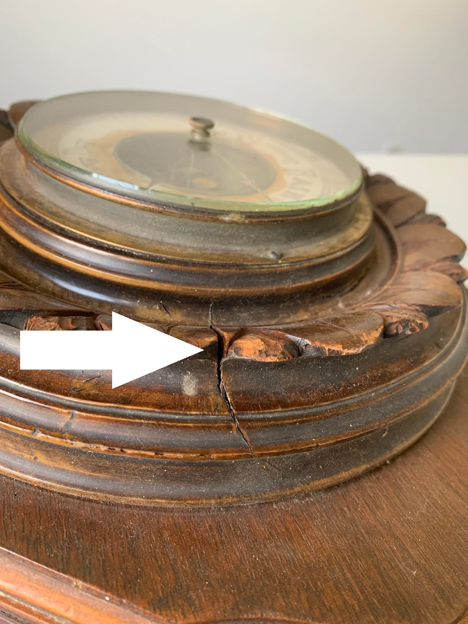 Large Antique Victorian Carved Wood Wall Aneroid Barometer - Made in the USA