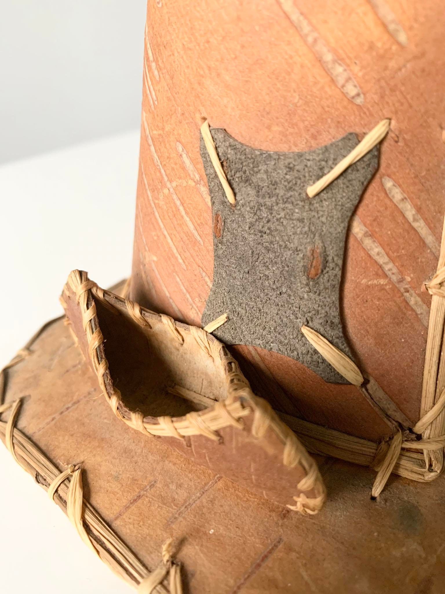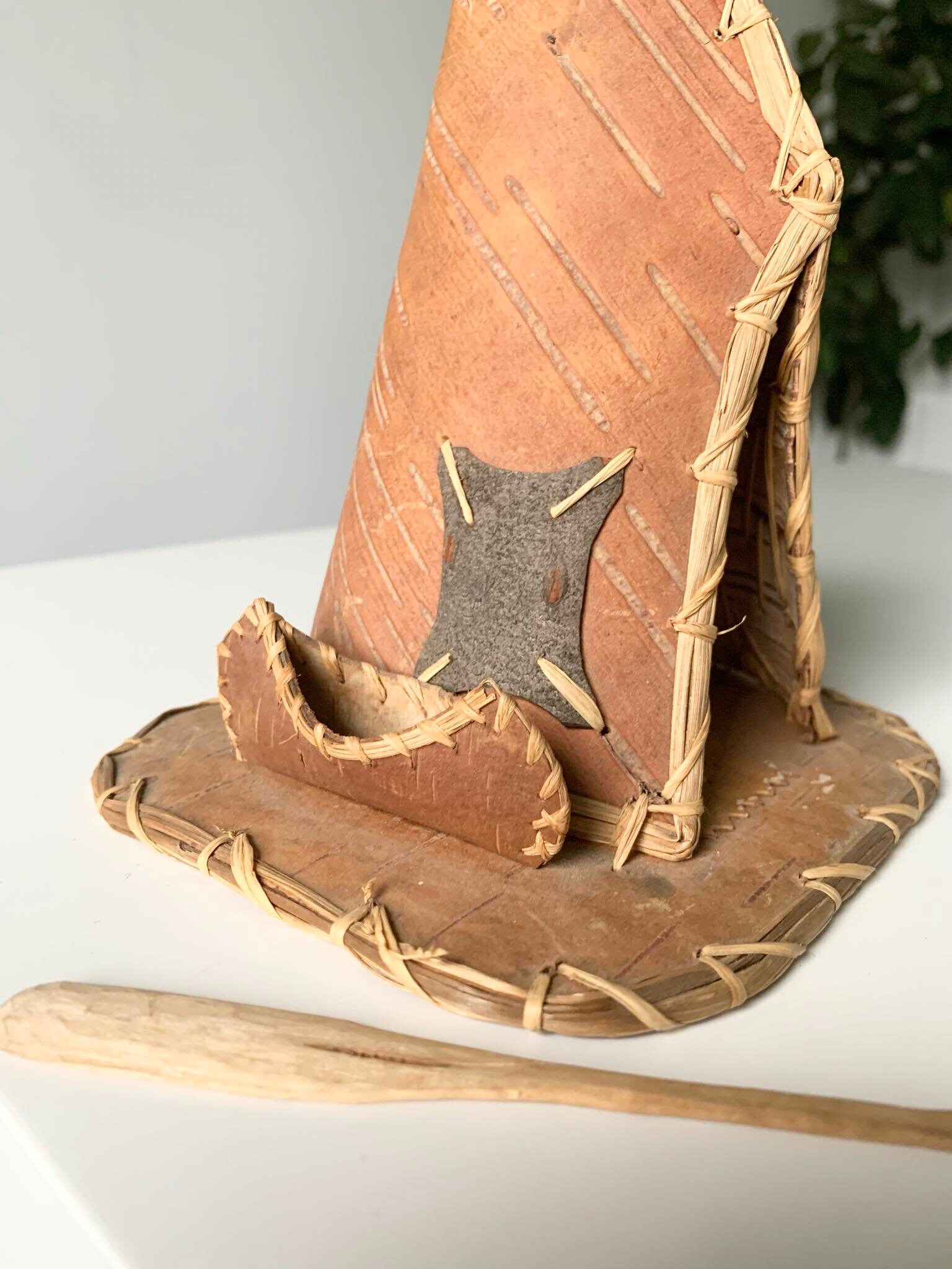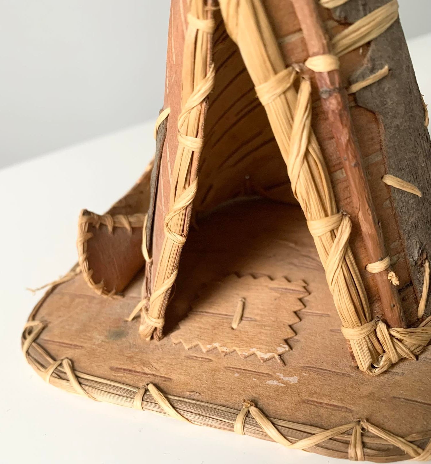 Vintage Indigenous Handmade Birchbark Tee Pee with Canoe and Paddle