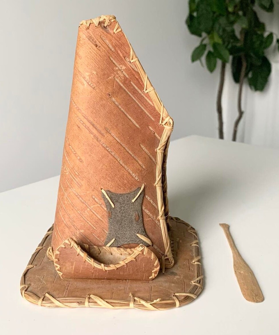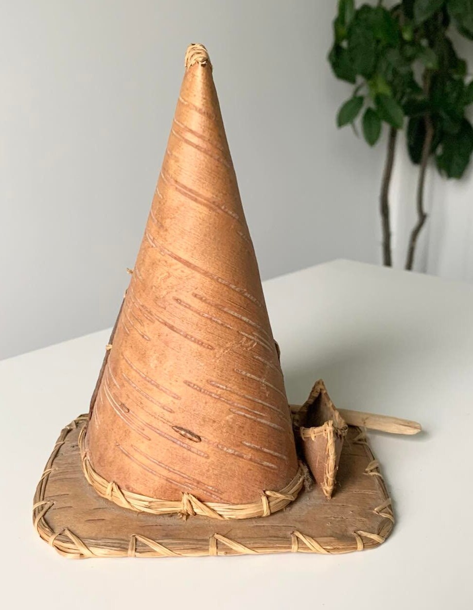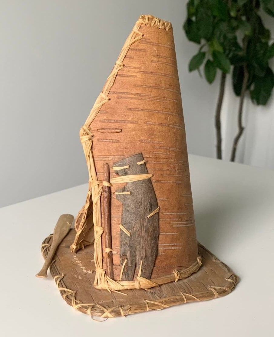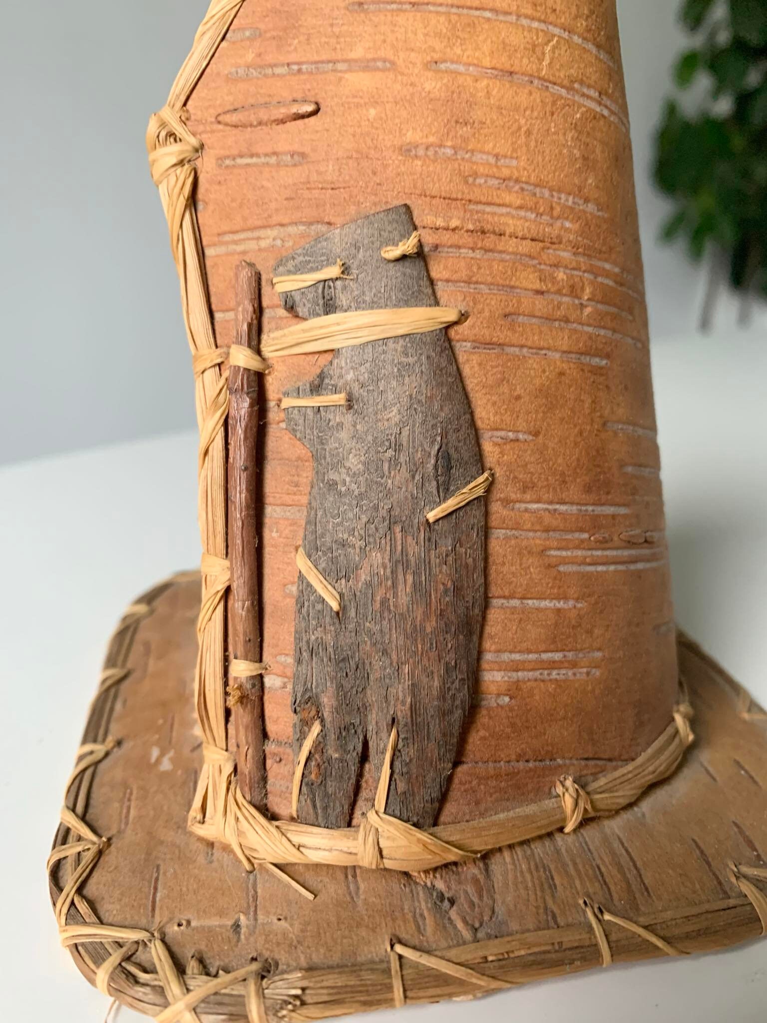 Vintage Indigenous Handmade Birchbark Tee Pee with Canoe and Paddle