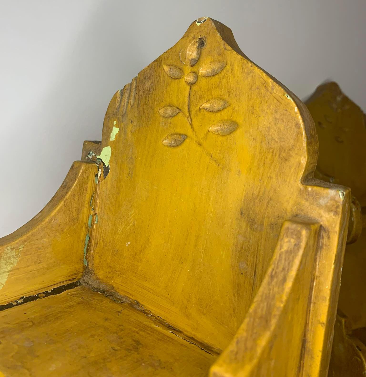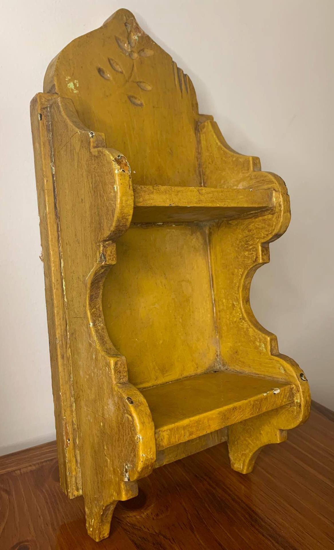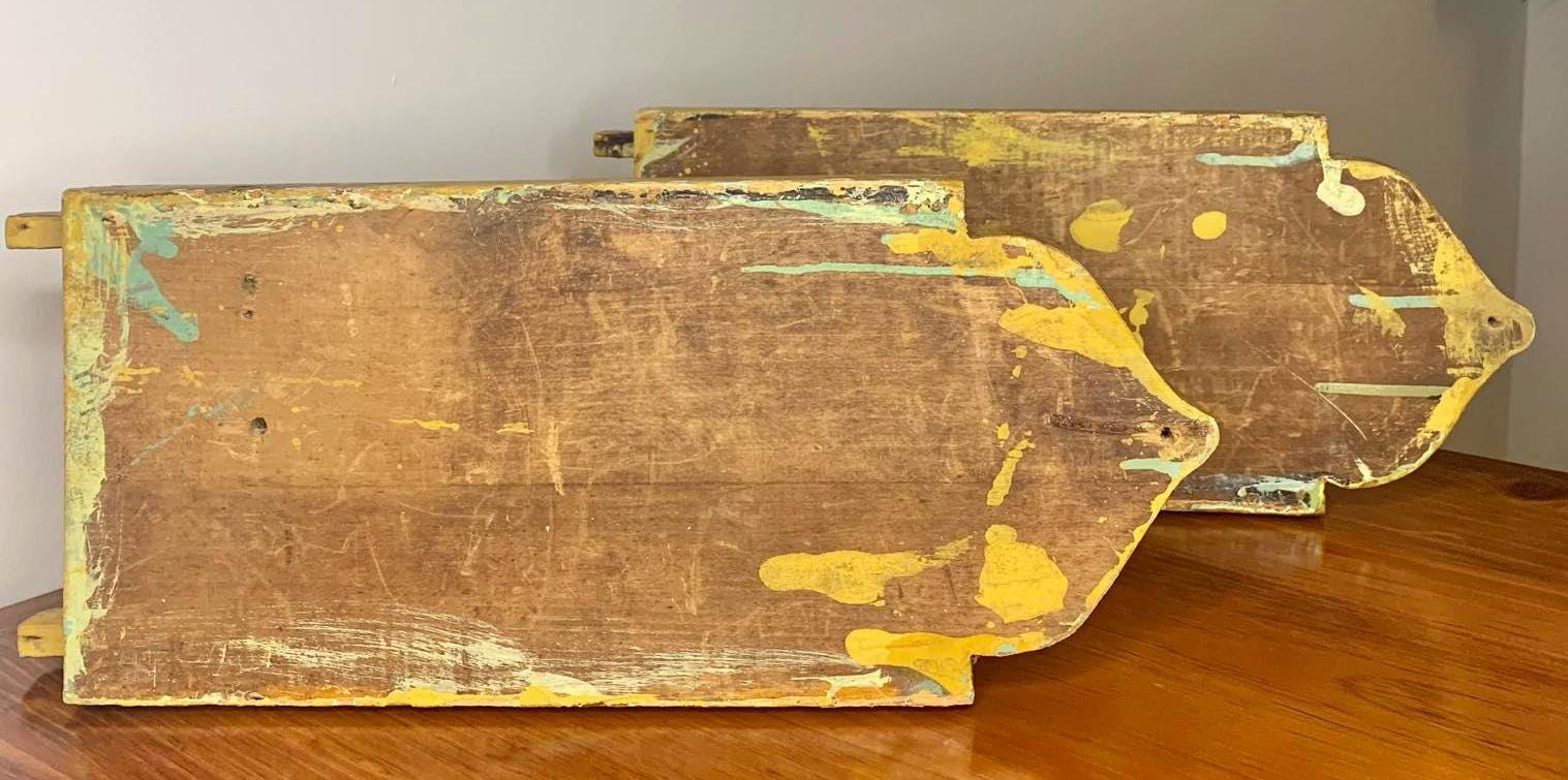 Matching Pair of Primitive Canadian Wooden Shelves with Heavy Mustard Color Over-Paint