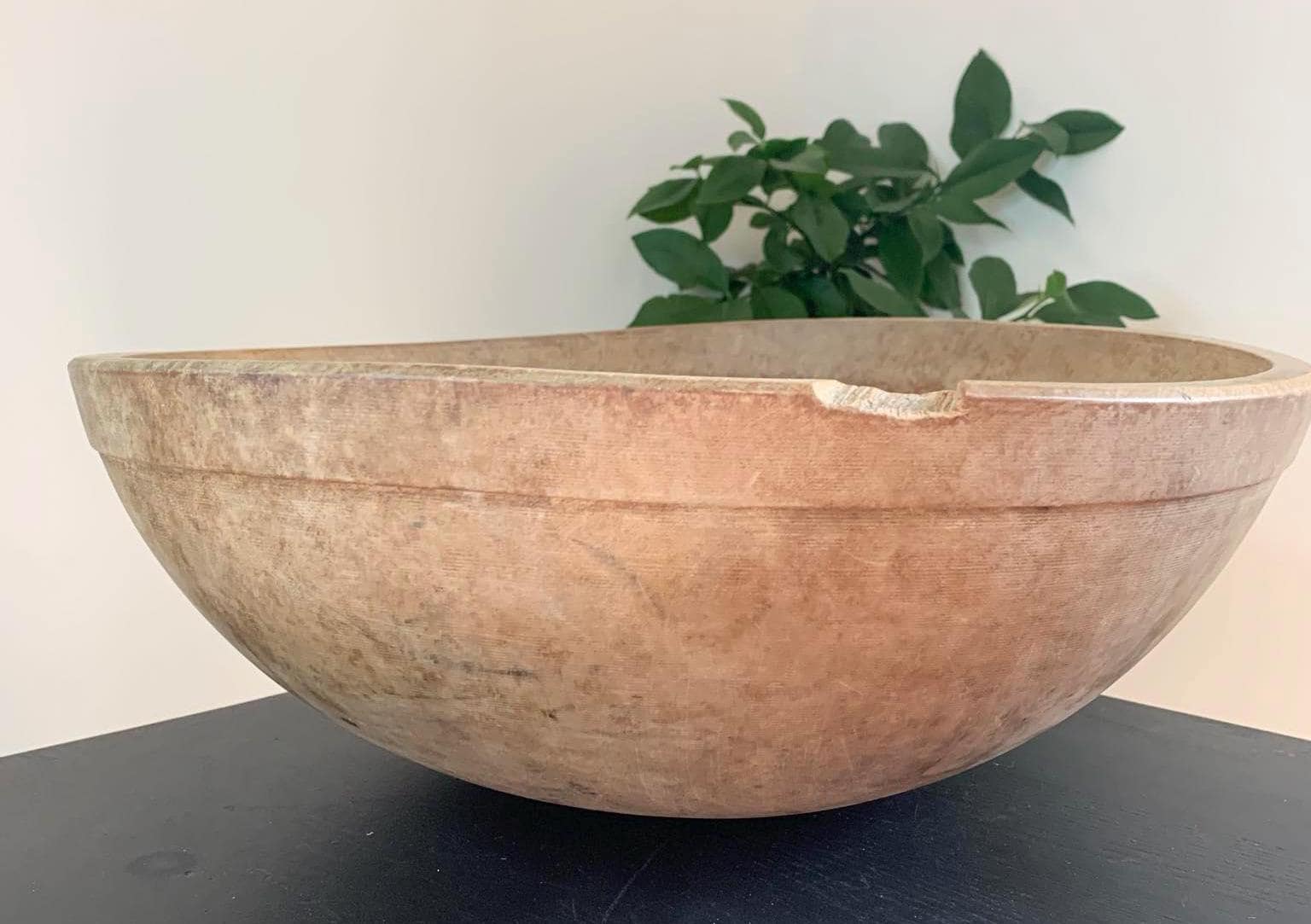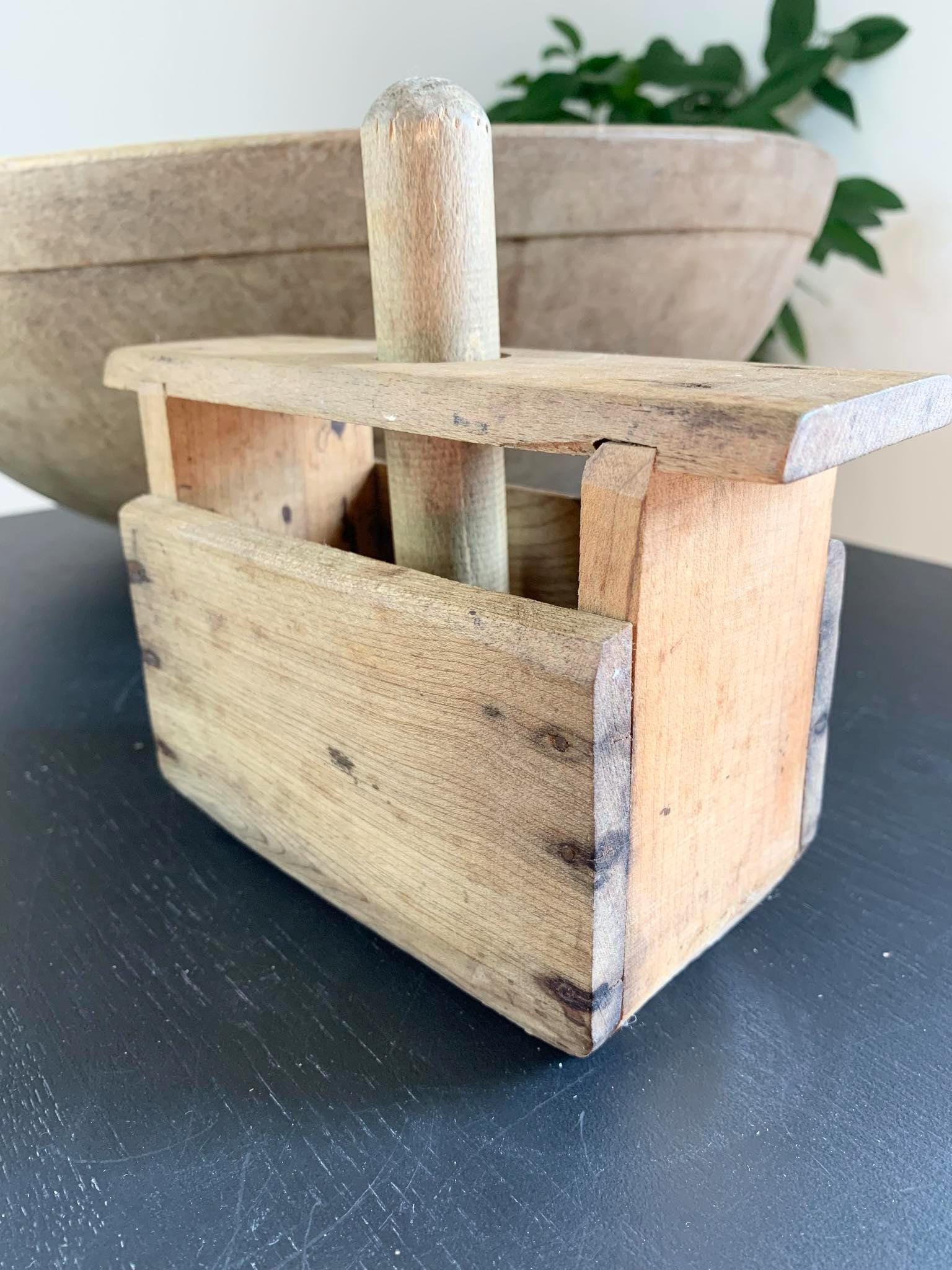 Primitive Munising No 2 Wooden Dough / Butter Bowl with Butter Paddle and Butter Mold