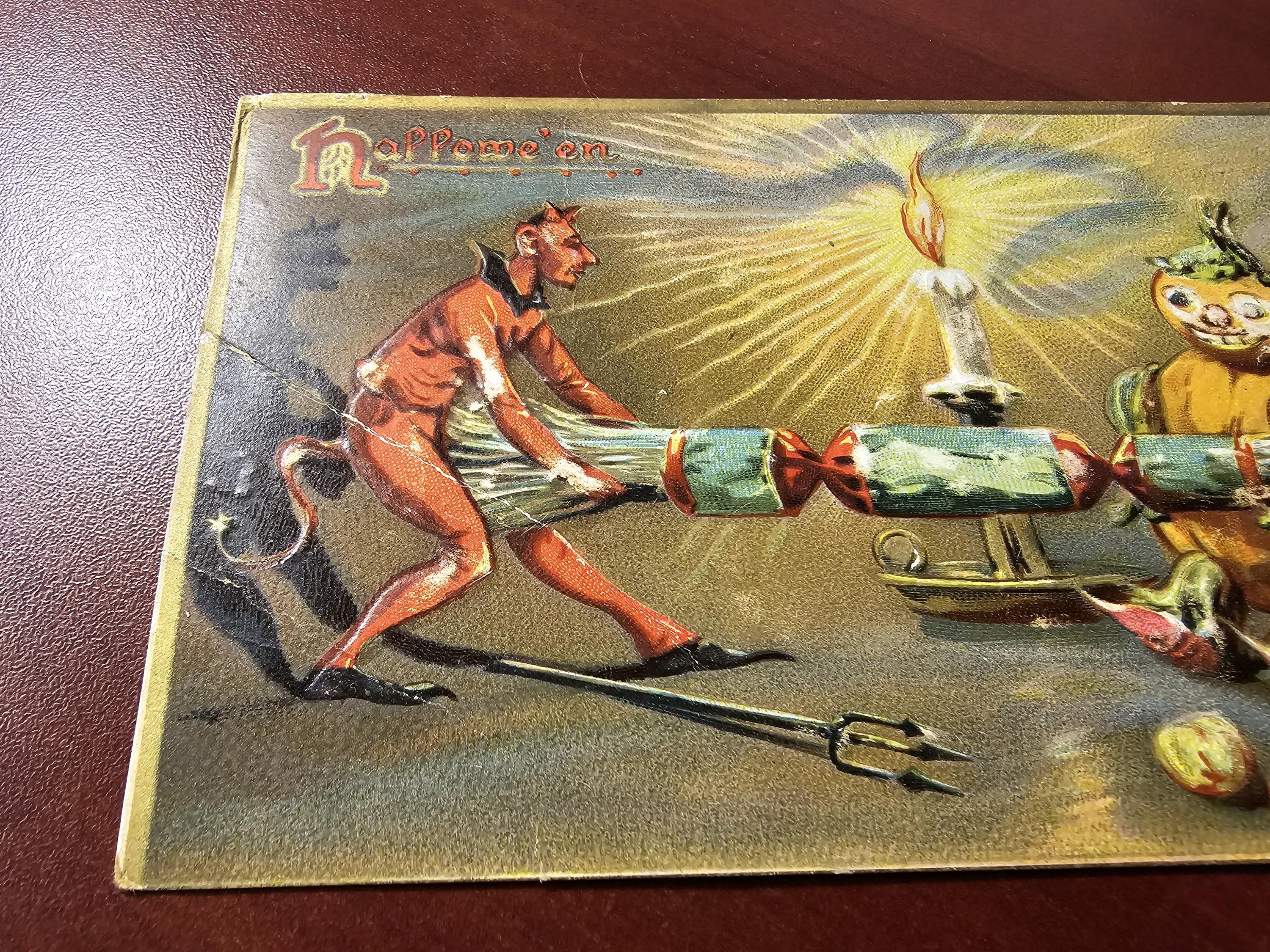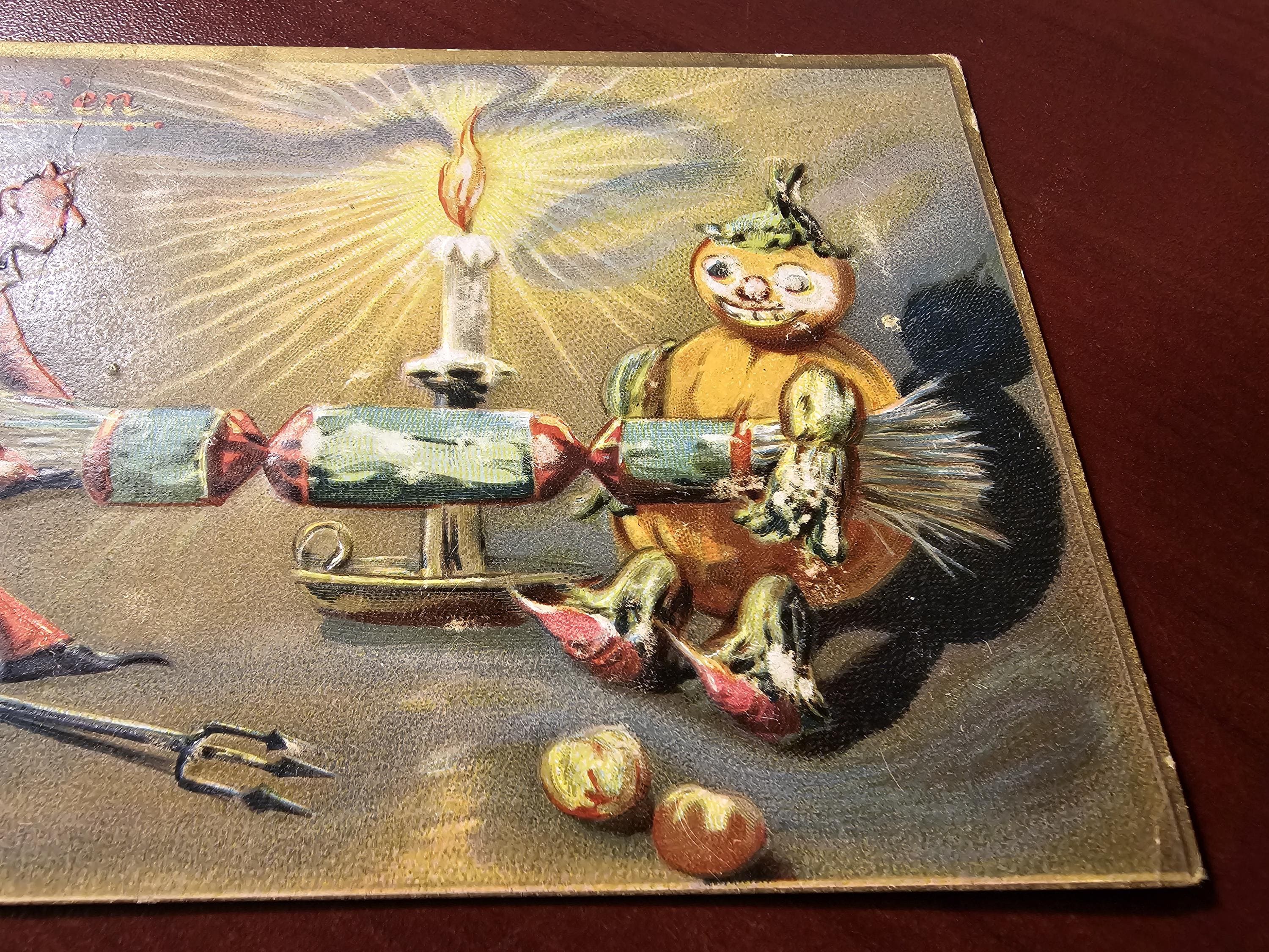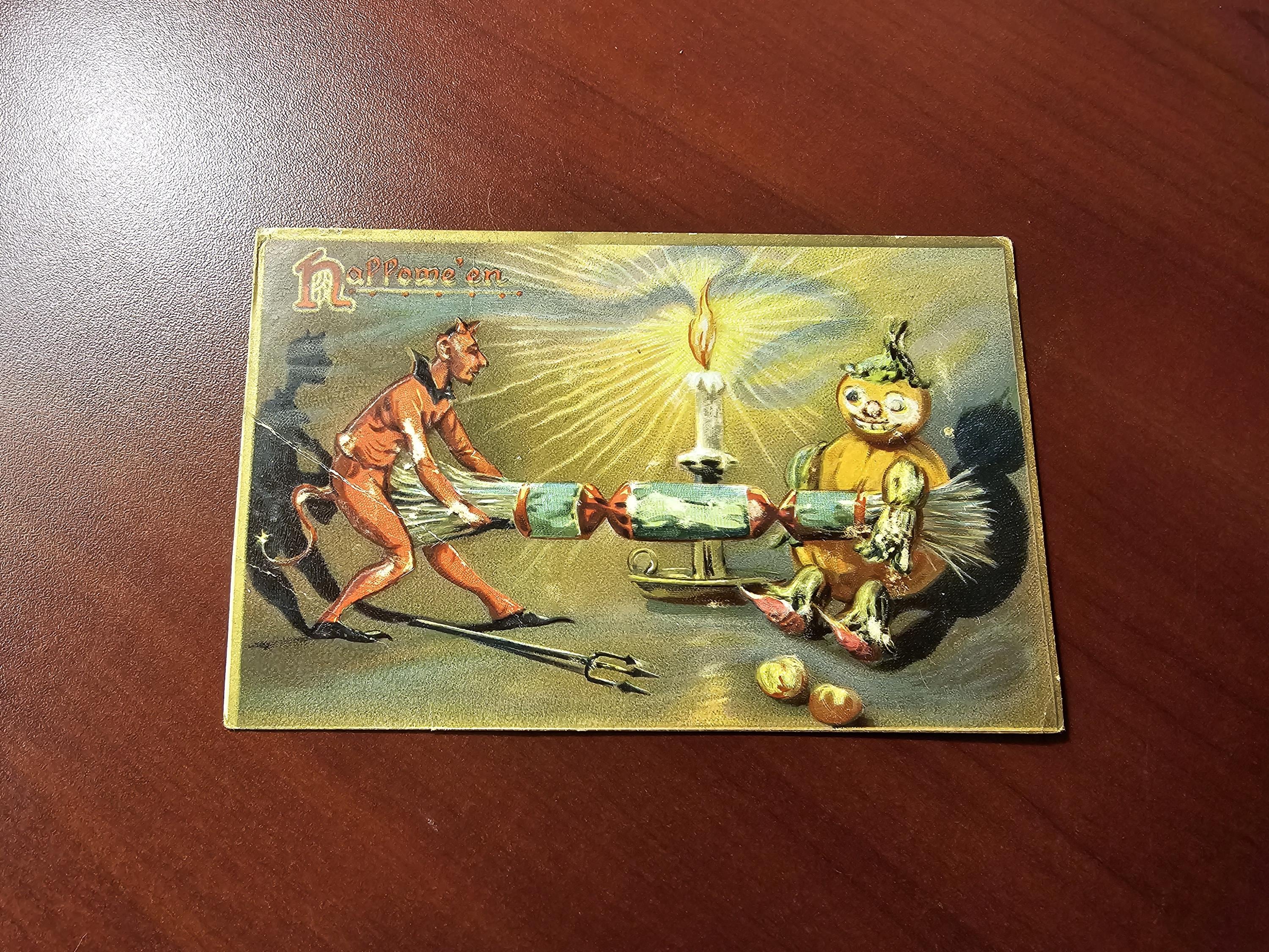 Antique Embossed Halloween Post Card Jack O'Lantern & Devil Tug Of War, Embossed Tuck's Post Card Series No 150