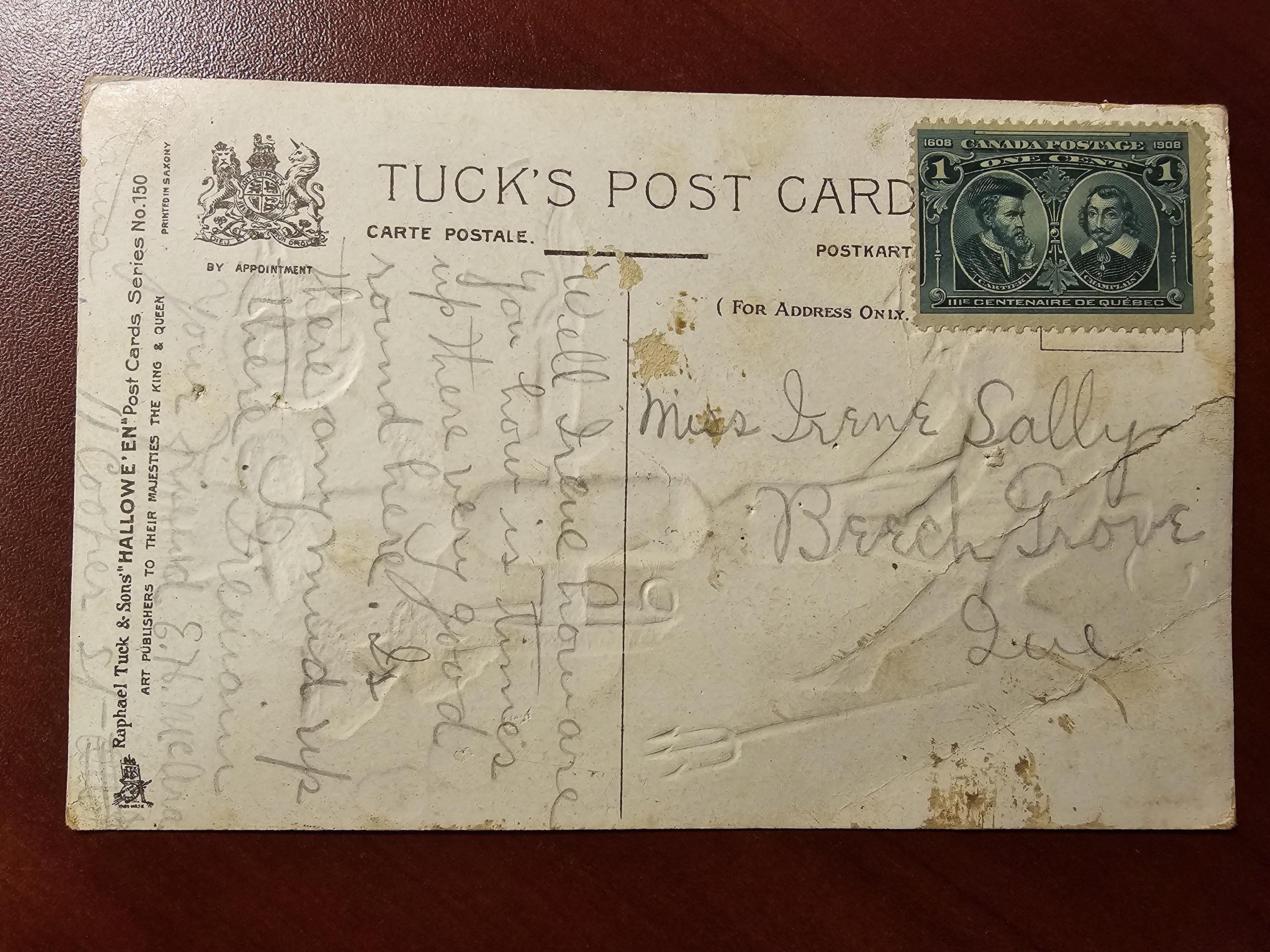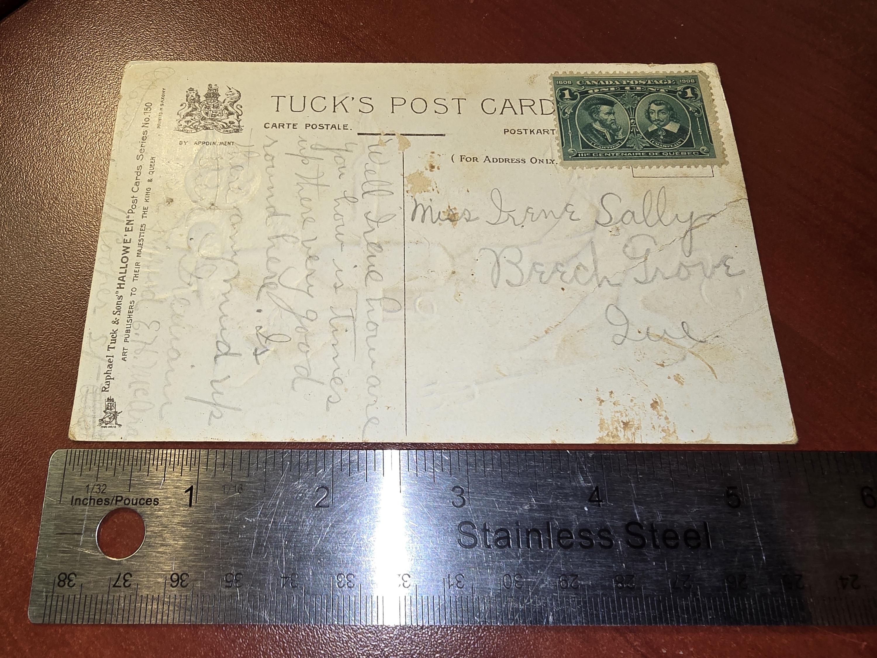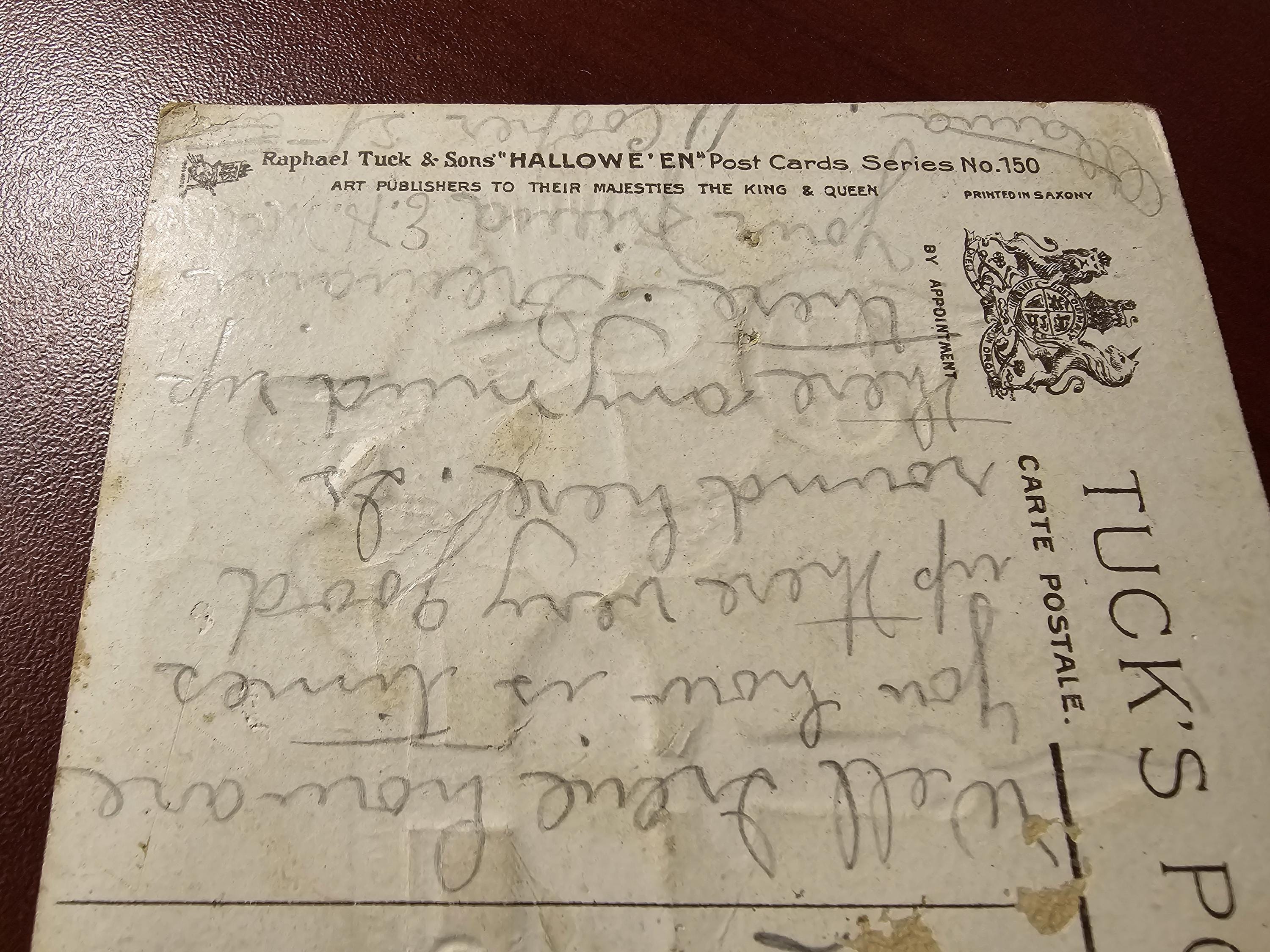 Antique Embossed Halloween Post Card Jack O'Lantern & Devil Tug Of War, Embossed Tuck's Post Card Series No 150