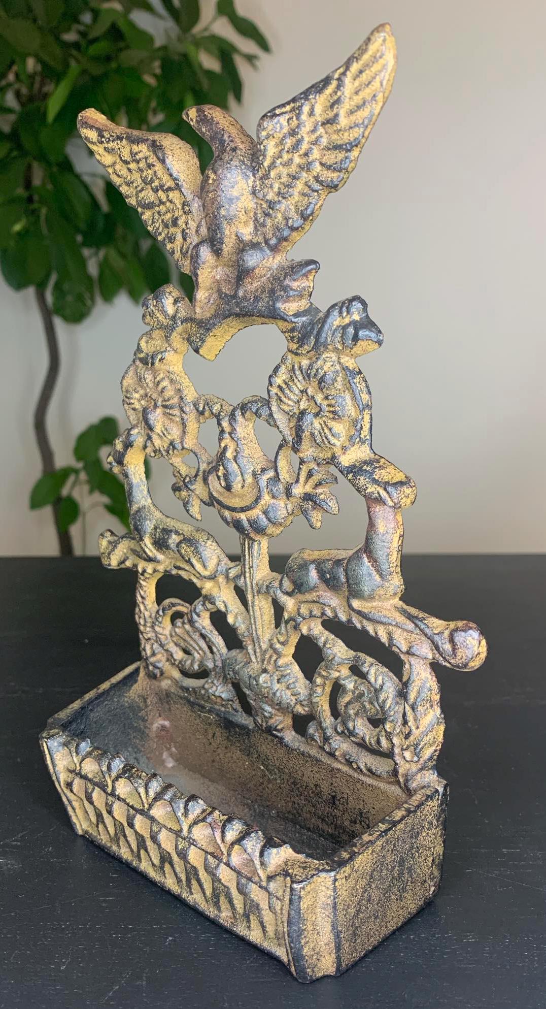 Vintage Cast Iron Eagle Wall Box / Match Holder