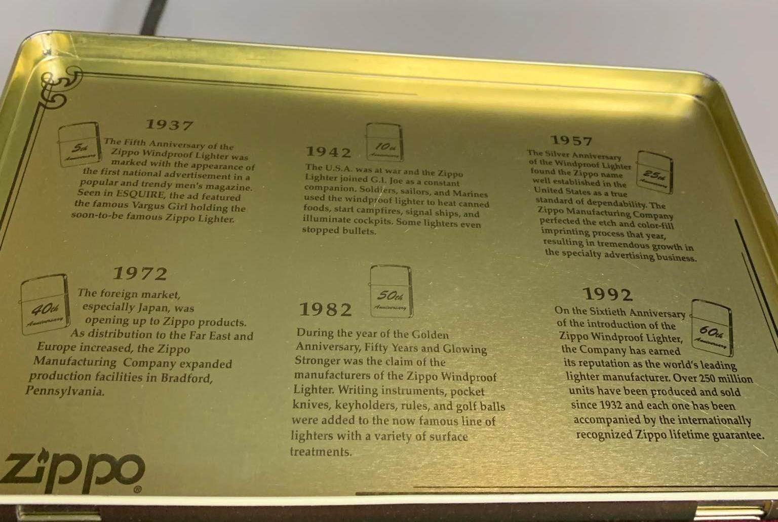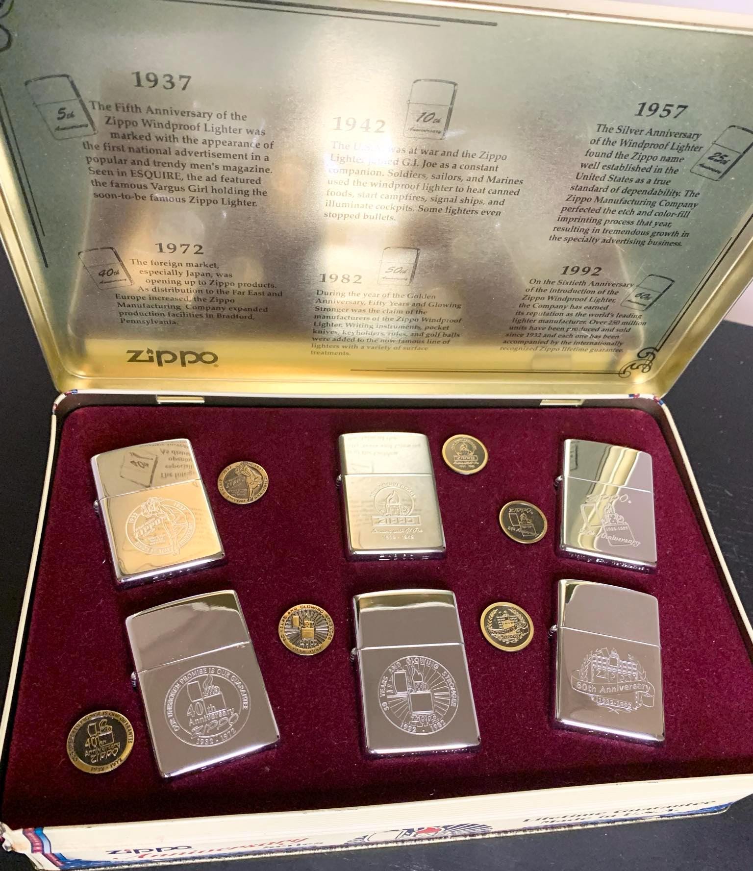 NOS Zippo Anniversary Series 1932-1992 Collectors' Edition with Pins - Unfired