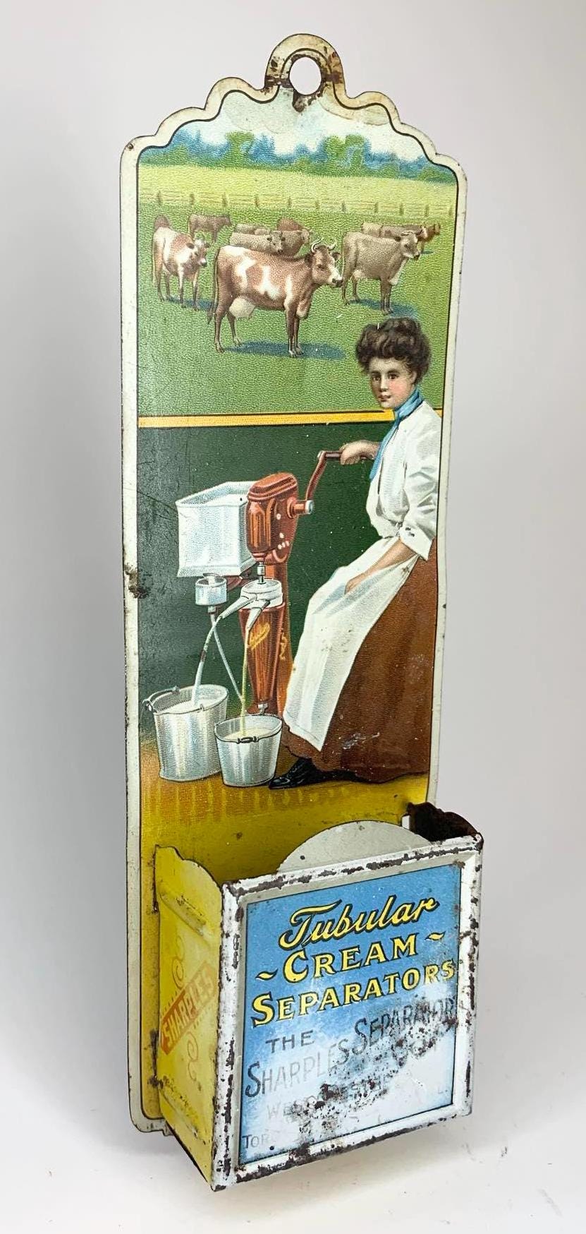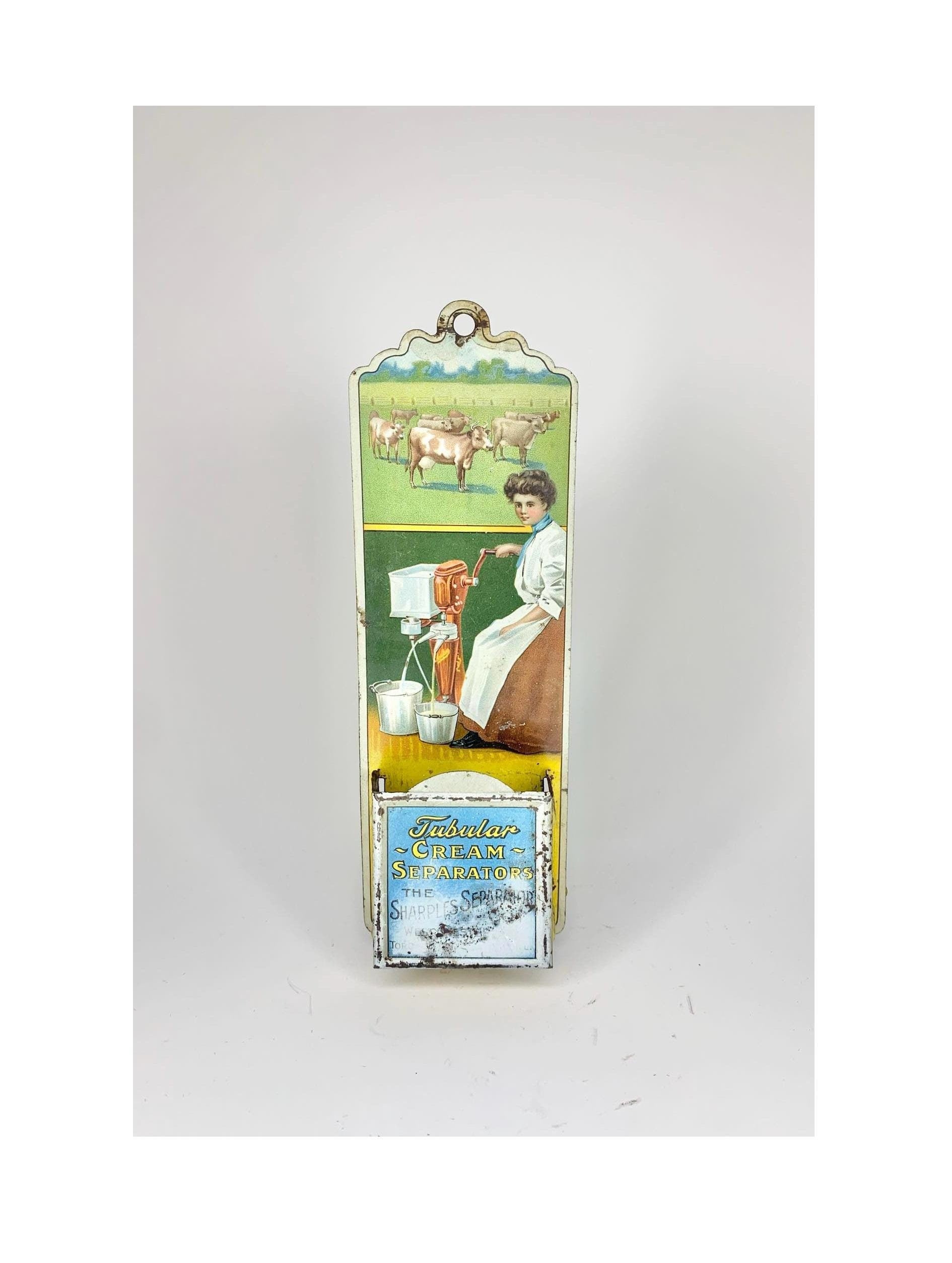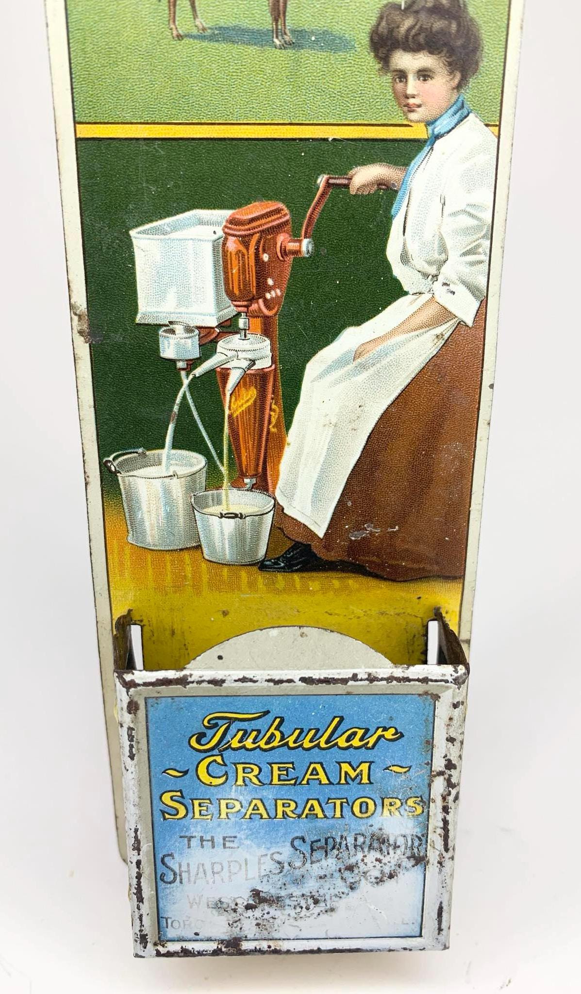 Antique Cream Separator Tin Lithograph Match Safe Sharples Advertising