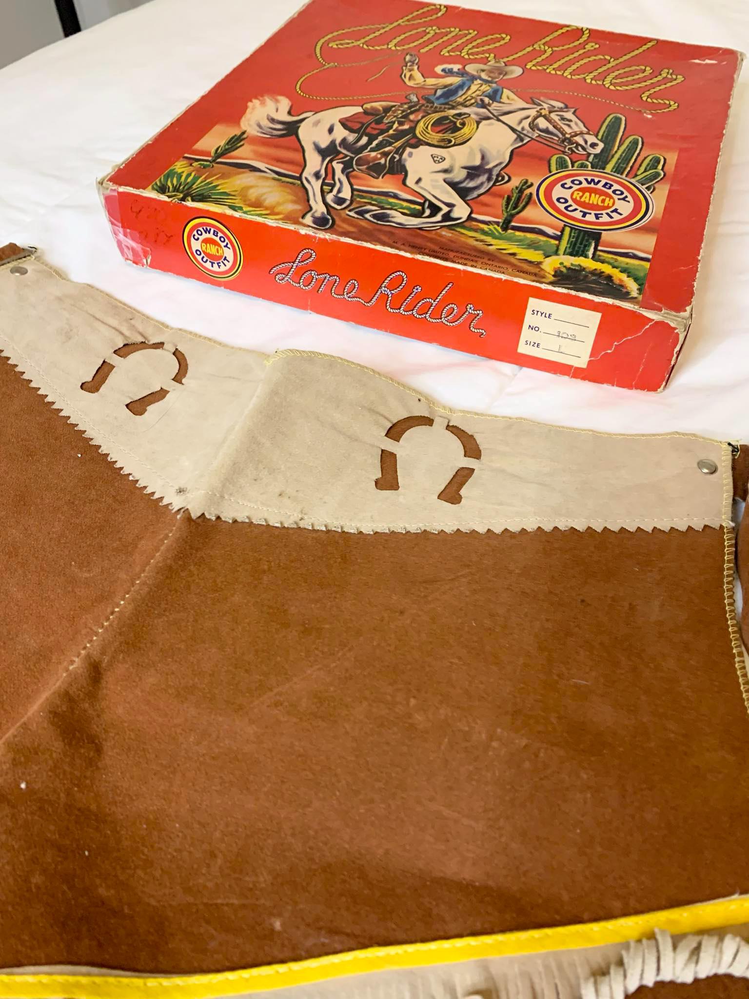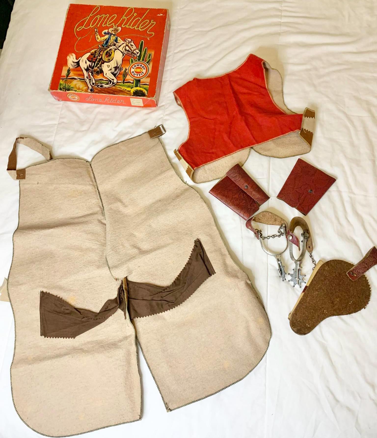 Includes Chaps, vest, gun holster, cuffs, and real metal spurs