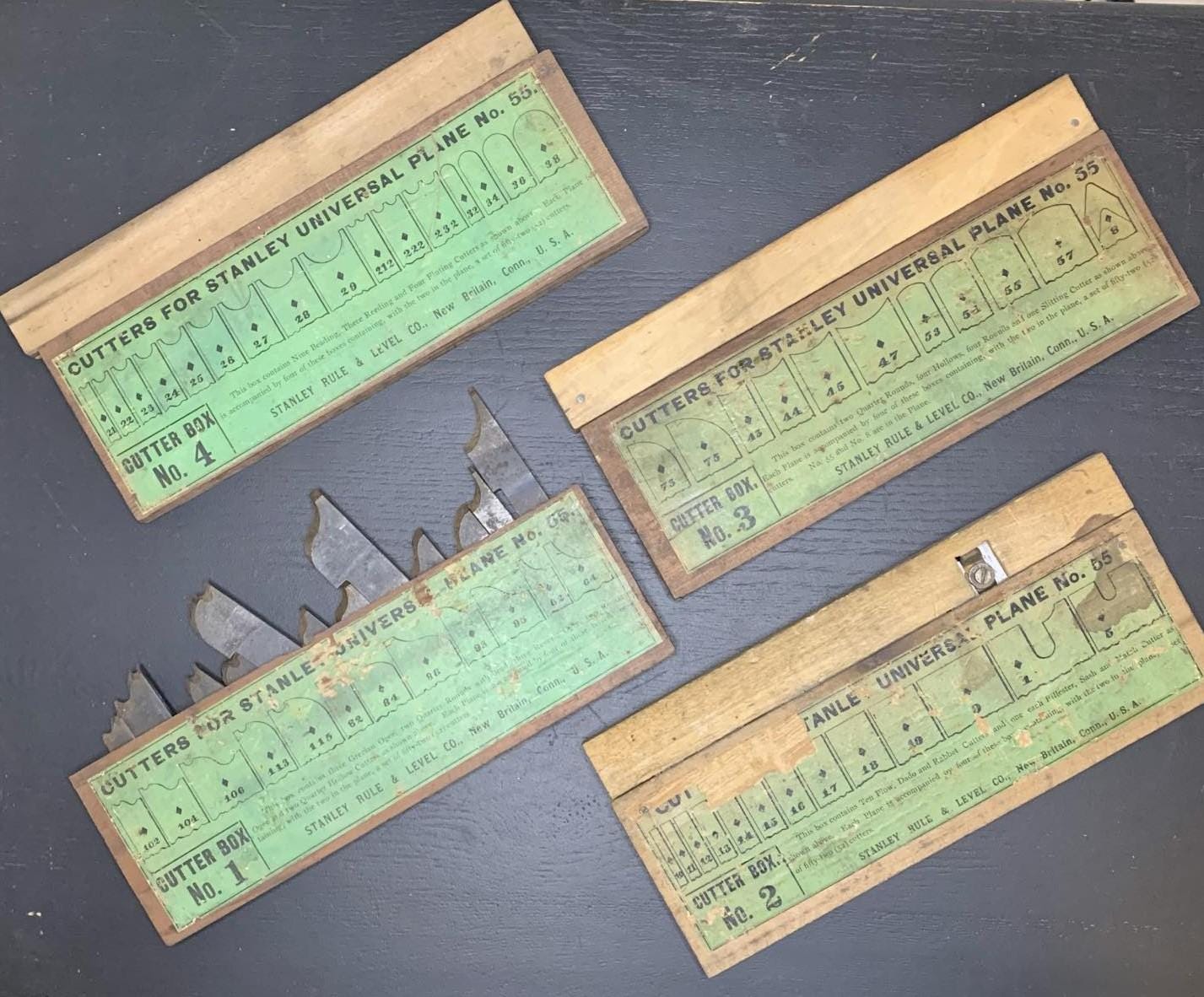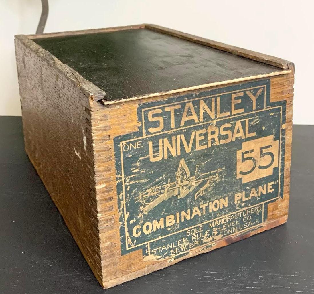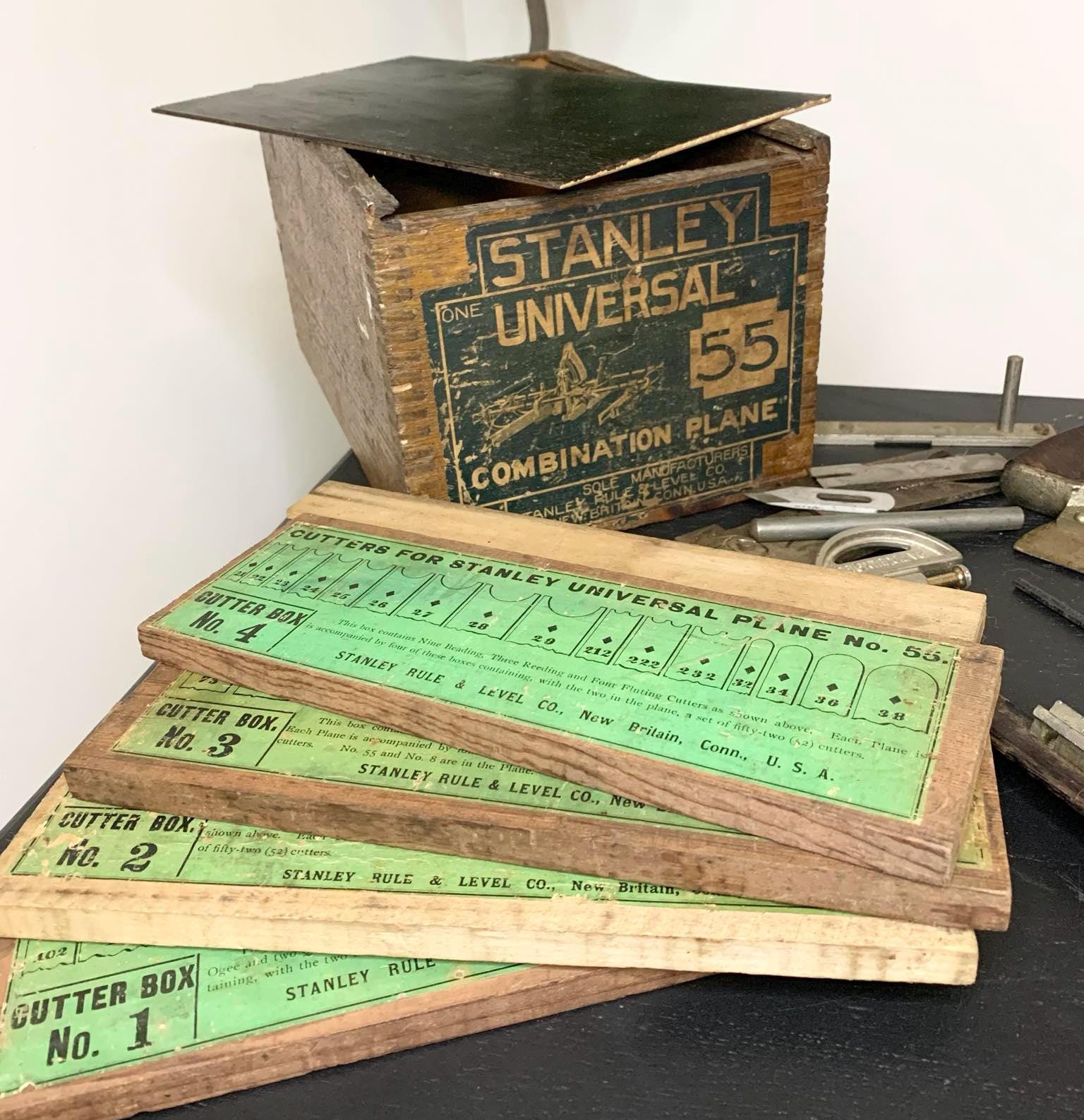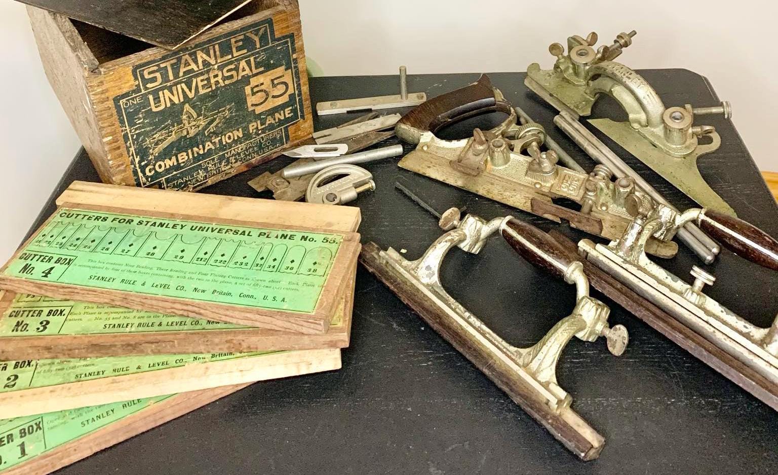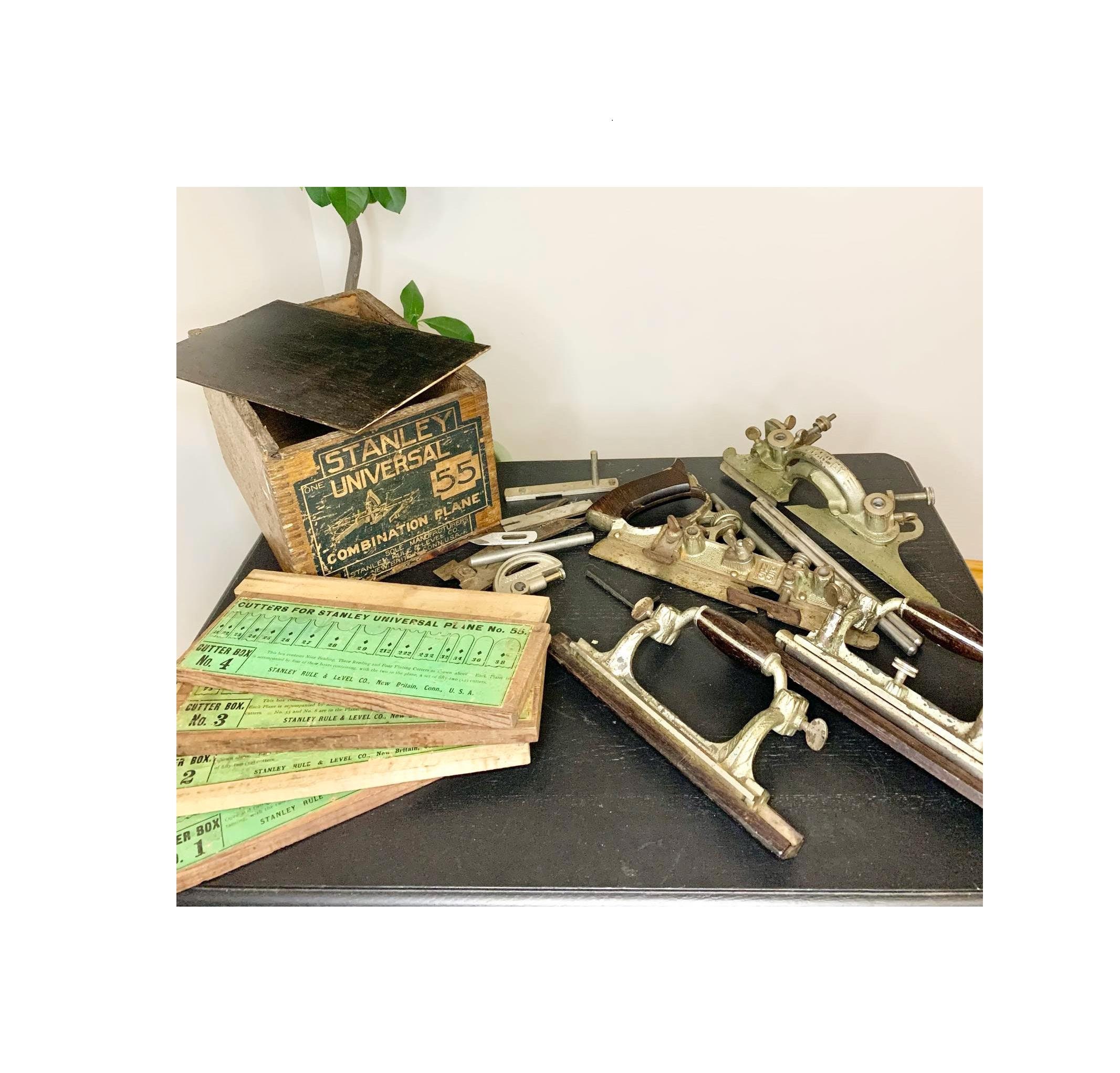 Vintage Stanley Universal Combination Plane No. 55 with Cutters and in Original Wood Box