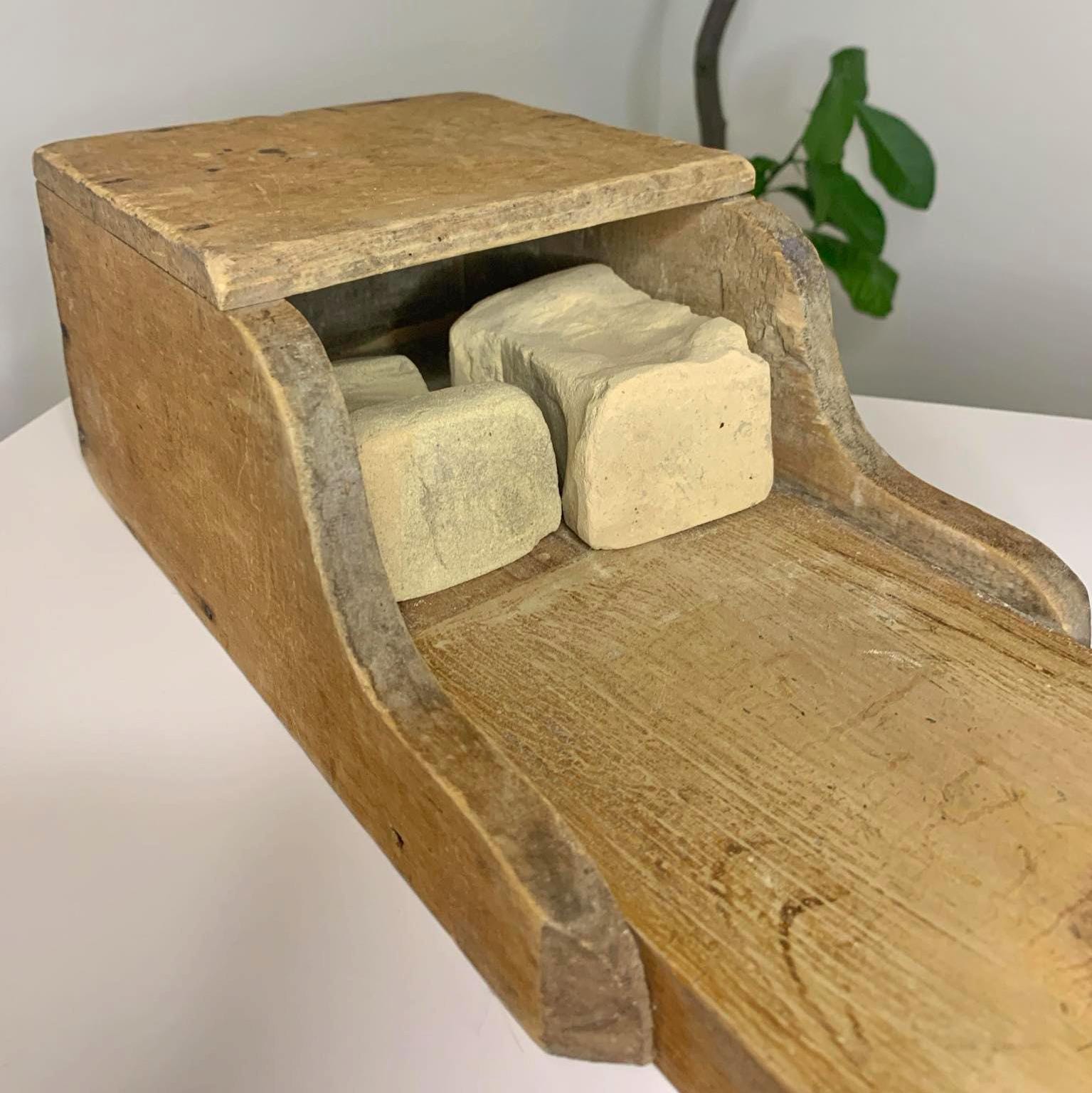 Antique Primitive Canadian Scouring Scrub Wall Box in Light Beige Paint
