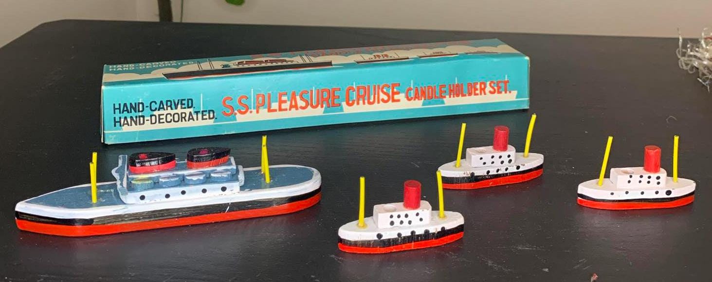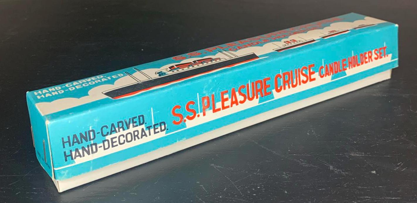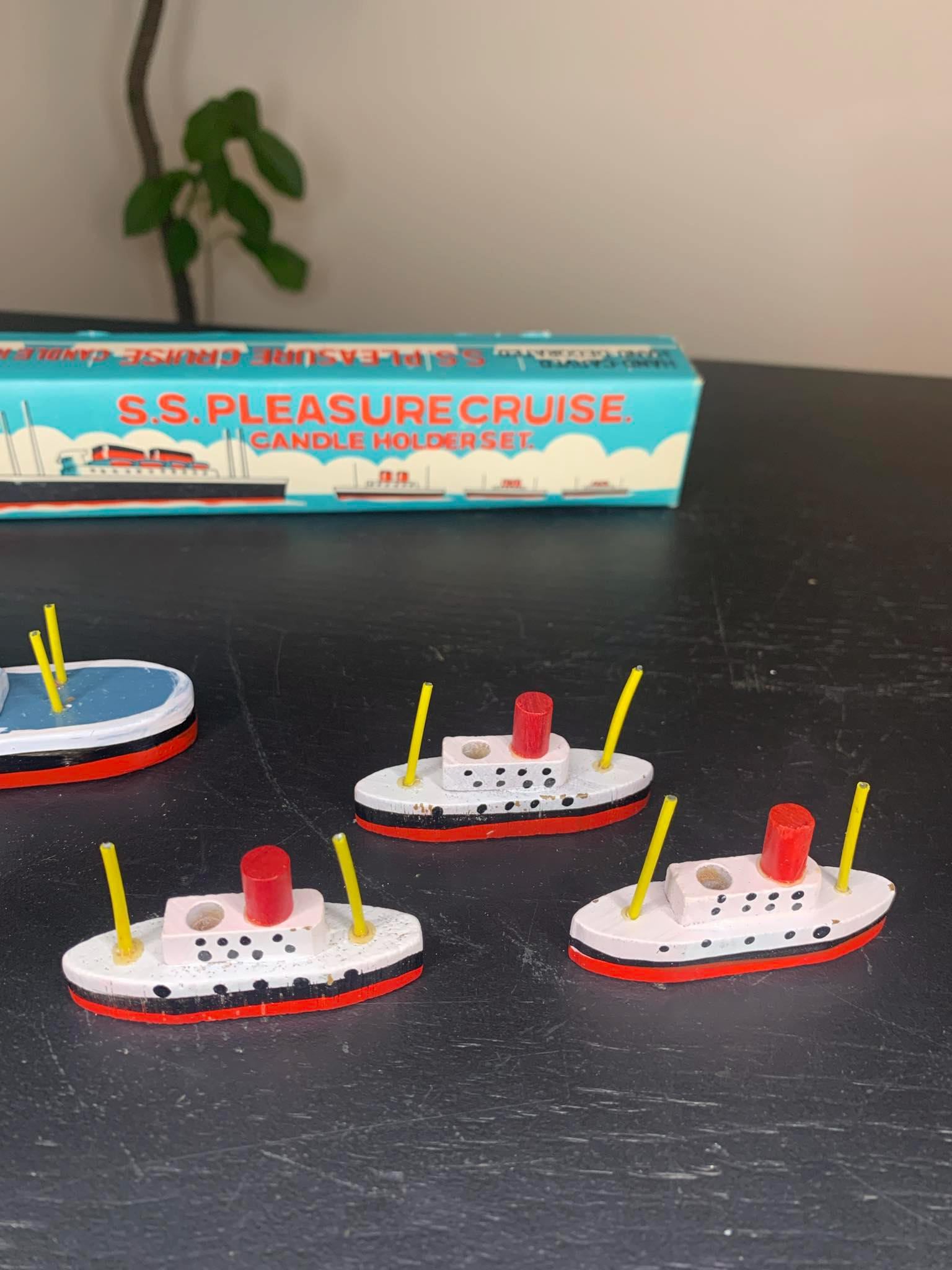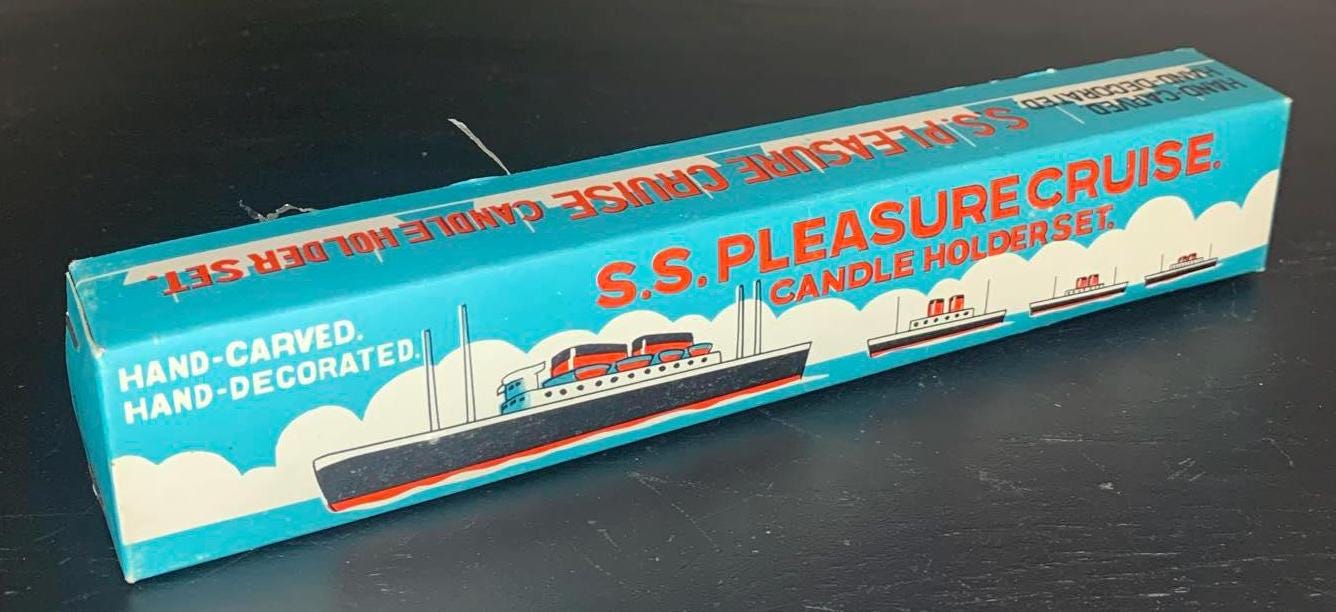 NOS Vintage Birthday Cake Topper - S.S. Pleasure Cruise Candle Holder Set in Original Box