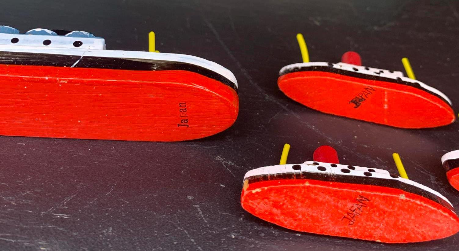 Item Measurements in Inches: large boat: 5 x 1 smaller boats each 2 x .5