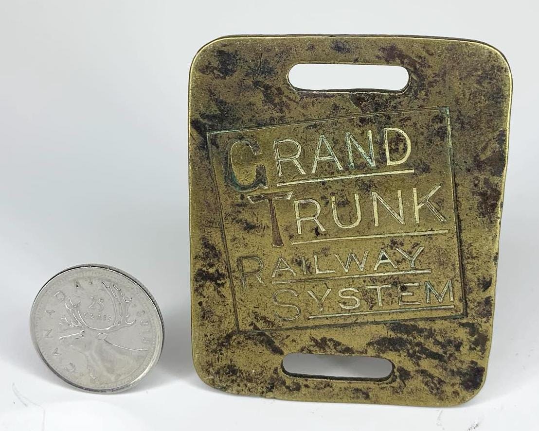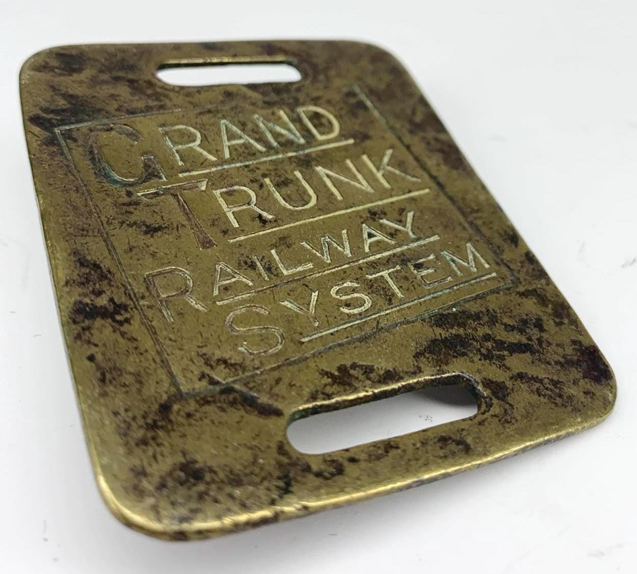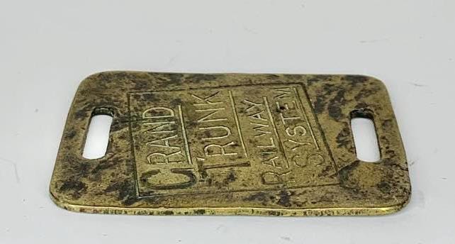 Antique Grand Trunk Railway System Brass Luggage Tag