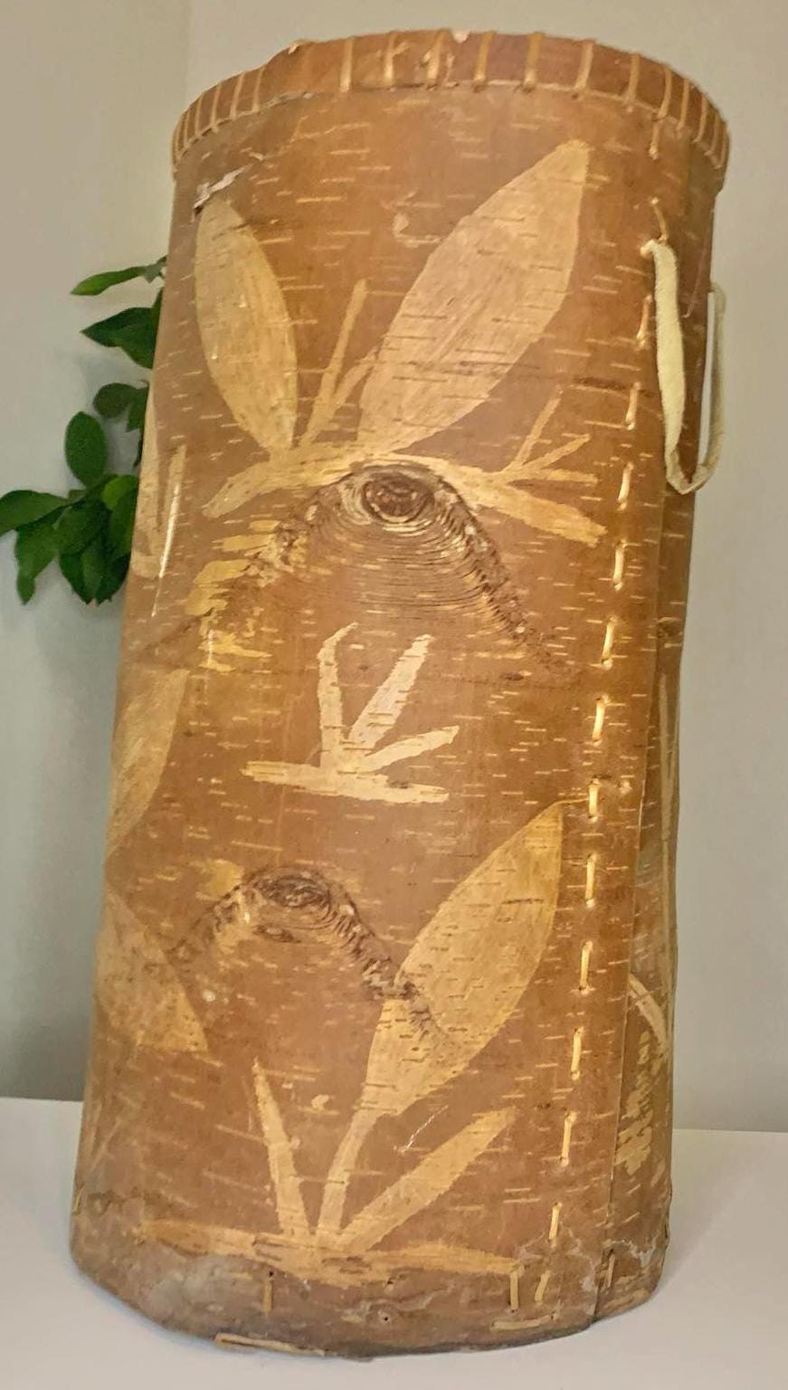 Large 23" Tall Canadian Indigenous Birch Bark Gathering Basket with Handles
