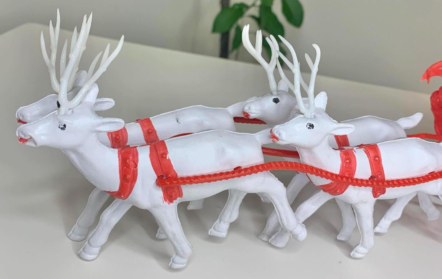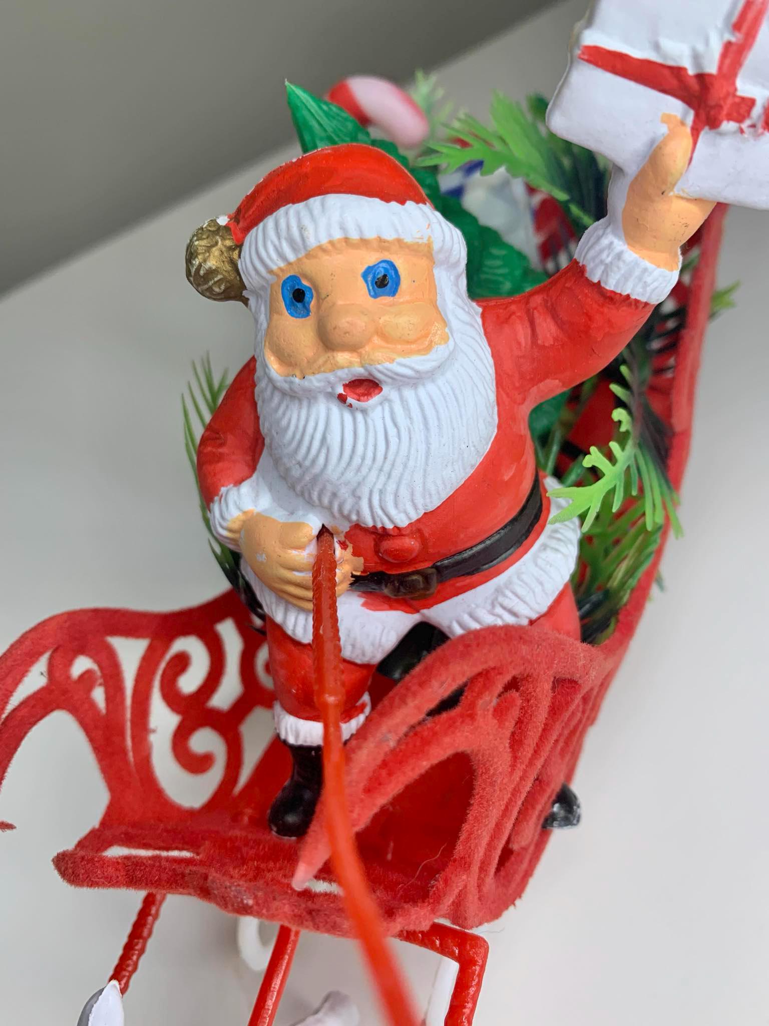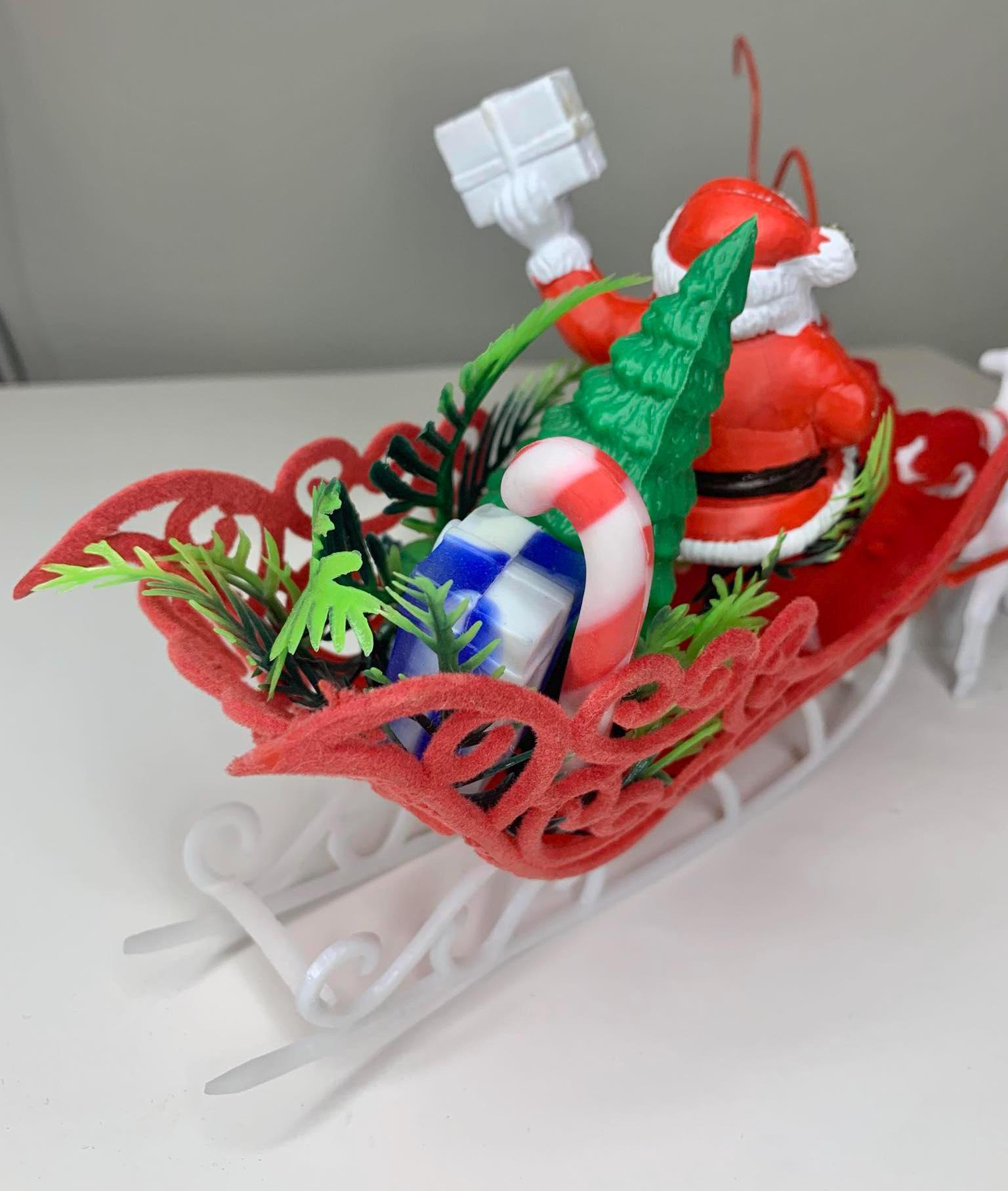 Vintage Plastic Christmas Decoration - Santa's Sleigh and Reindeer