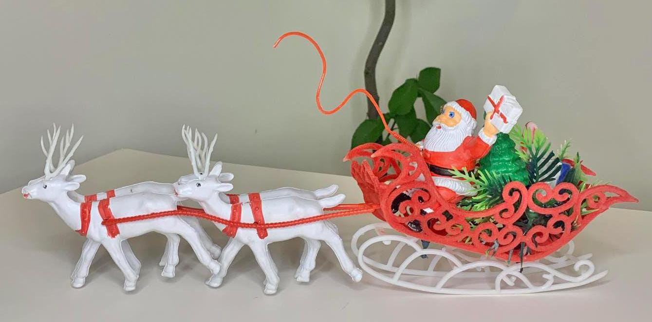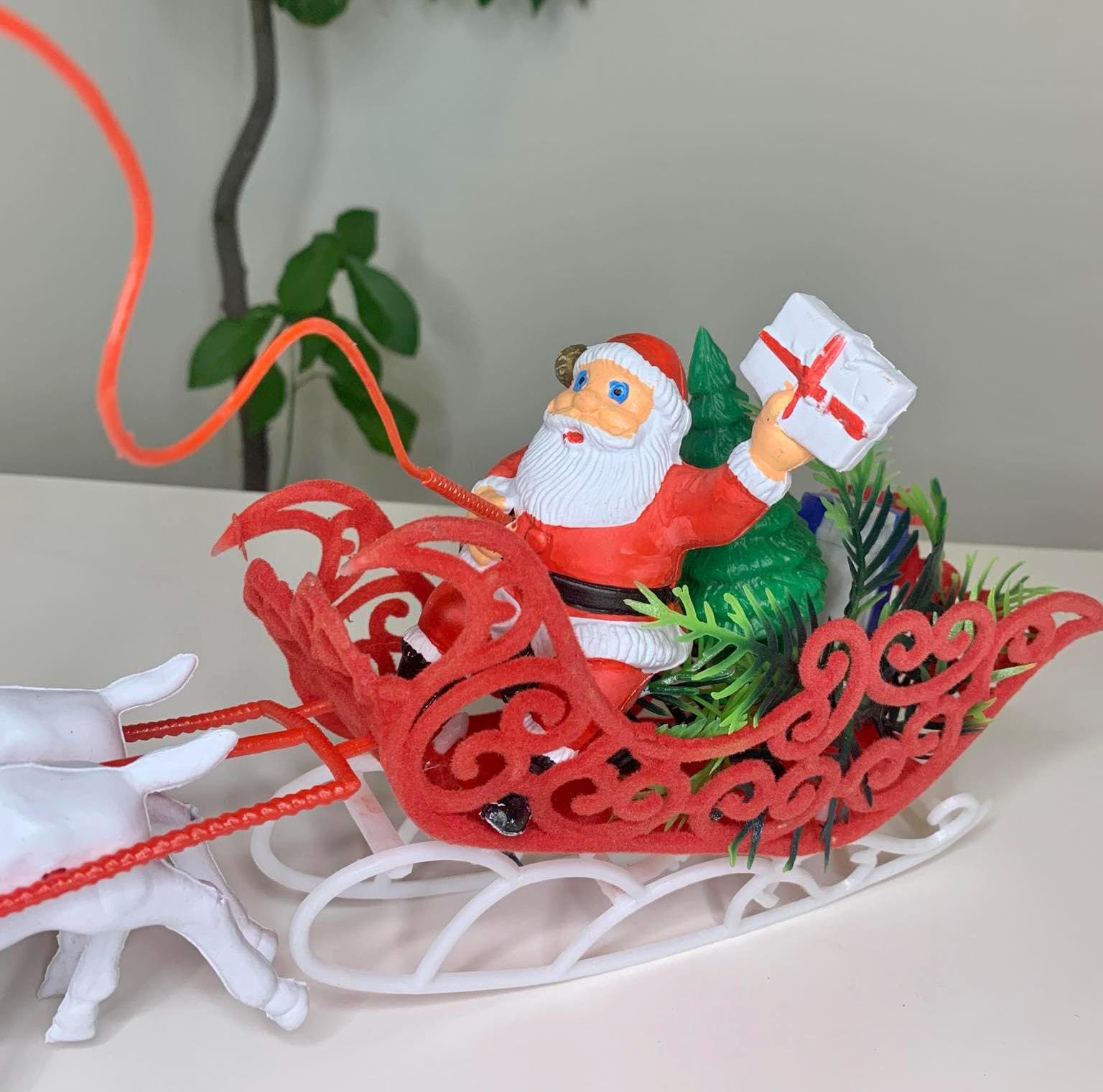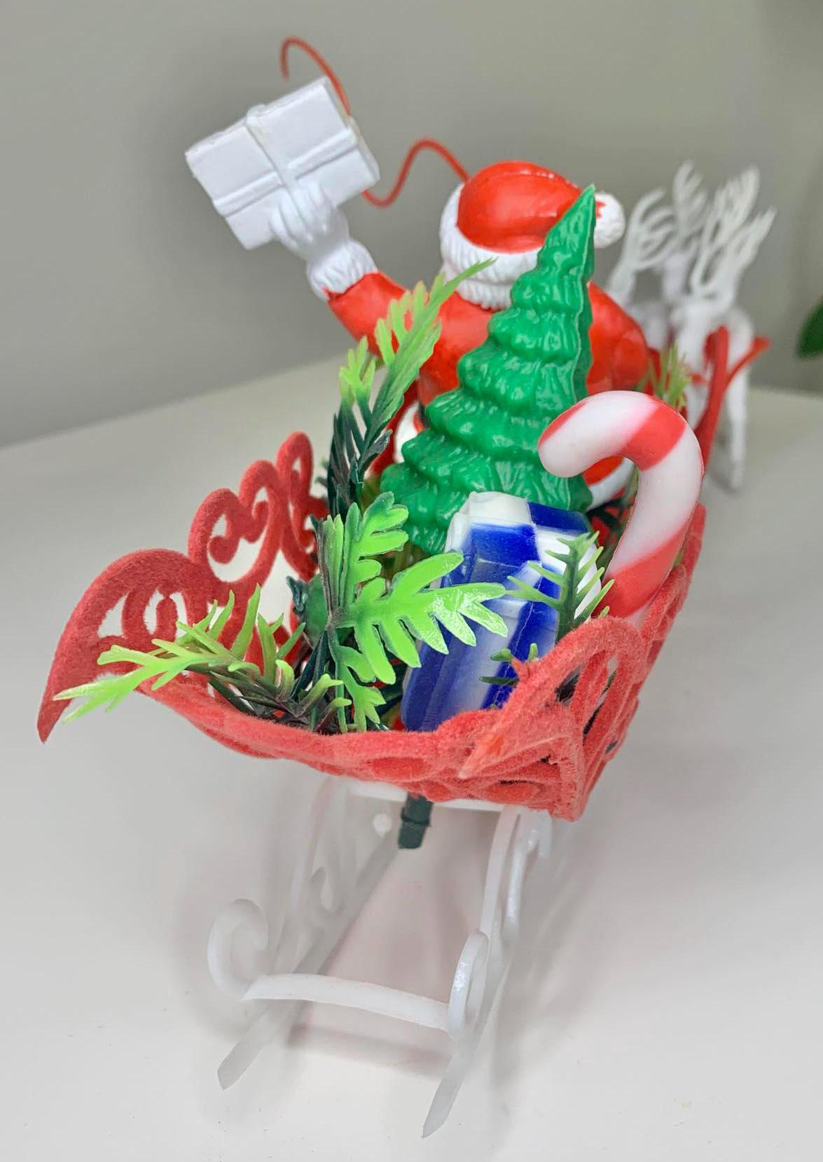 Vintage Plastic Christmas Decoration - Santa's Sleigh and Reindeer