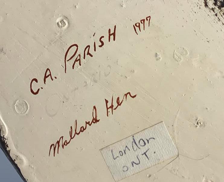 Carved Wooden "Mallard Hen" Duck Decoy signed by CA Parish, (1943-2020)