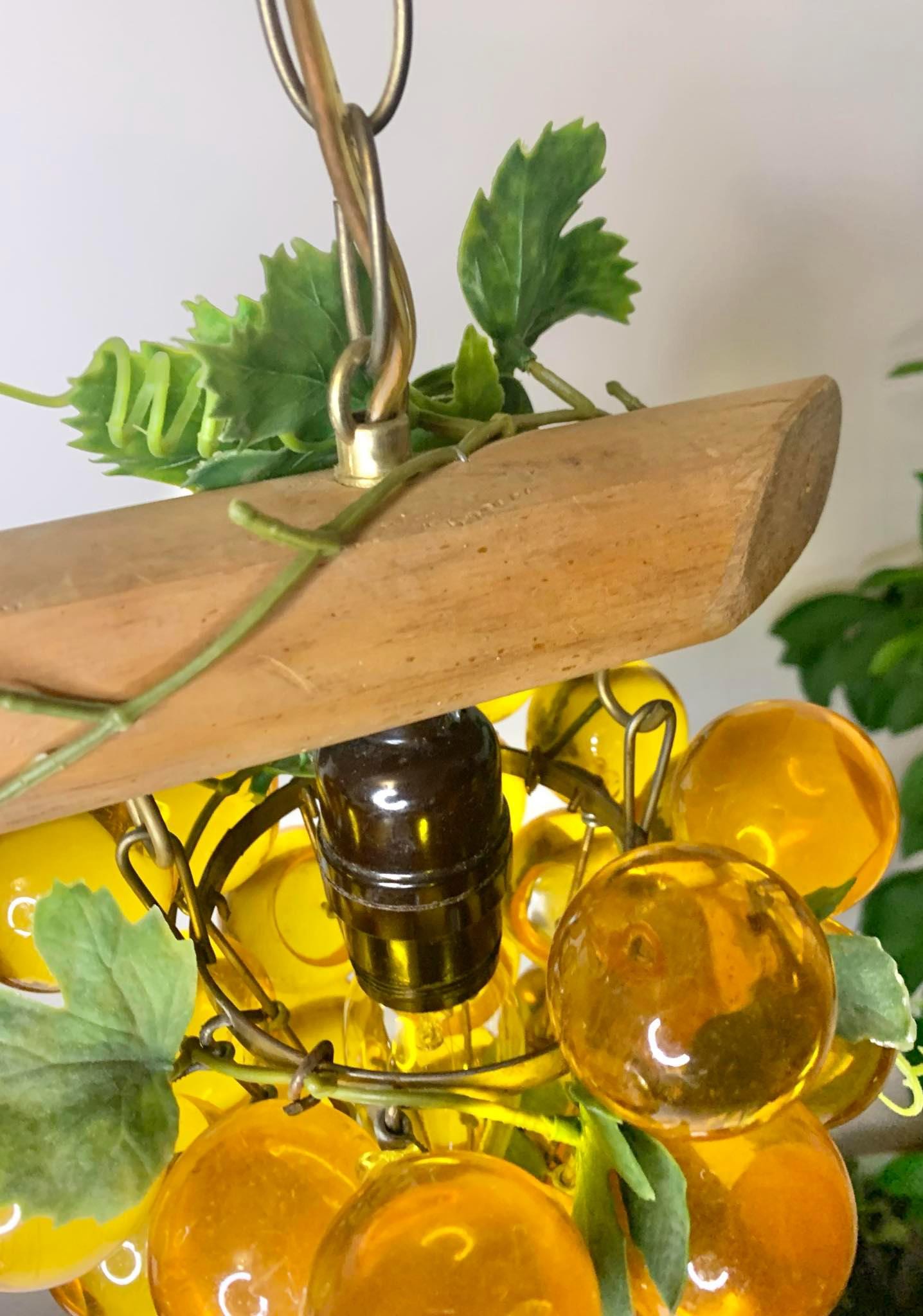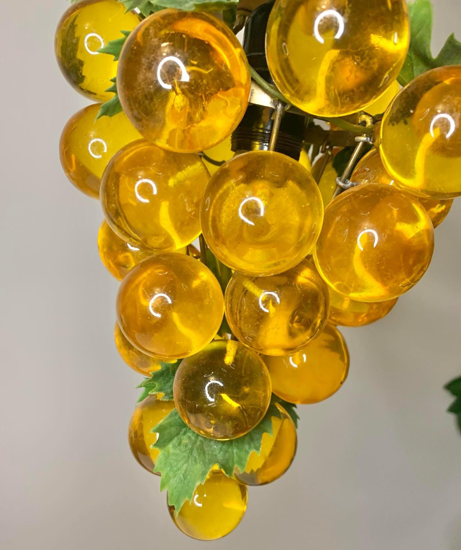 Vintage 1970s MCM Lucite Grape Cluster Hanging Light 13" Tall