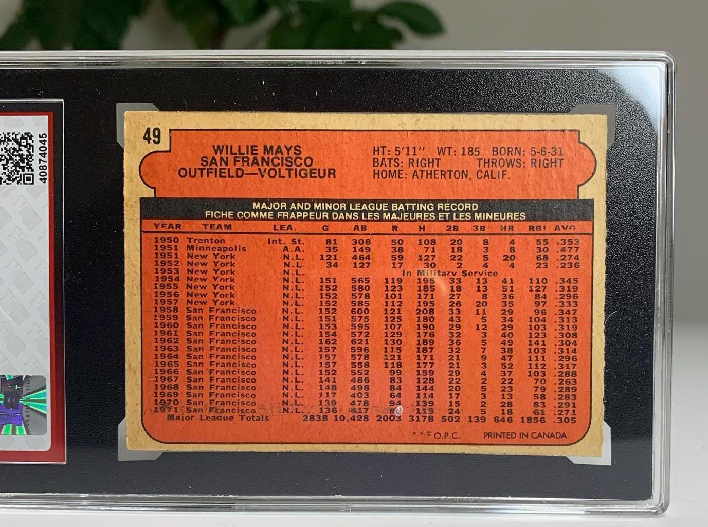 1972 O-Pee-Chee #49 Willie Mays San Francisco Giants Baseball Card