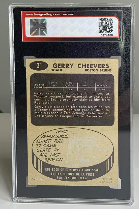 1965-66 TOPPS #31 Gerry Cheevers Boston Bruins Rookie Hockey Card