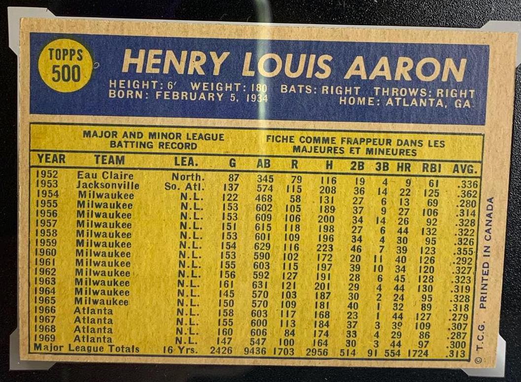 1970 O-Pee-Chee #500 Hank Aaron Atlanta Braves Baseball Card