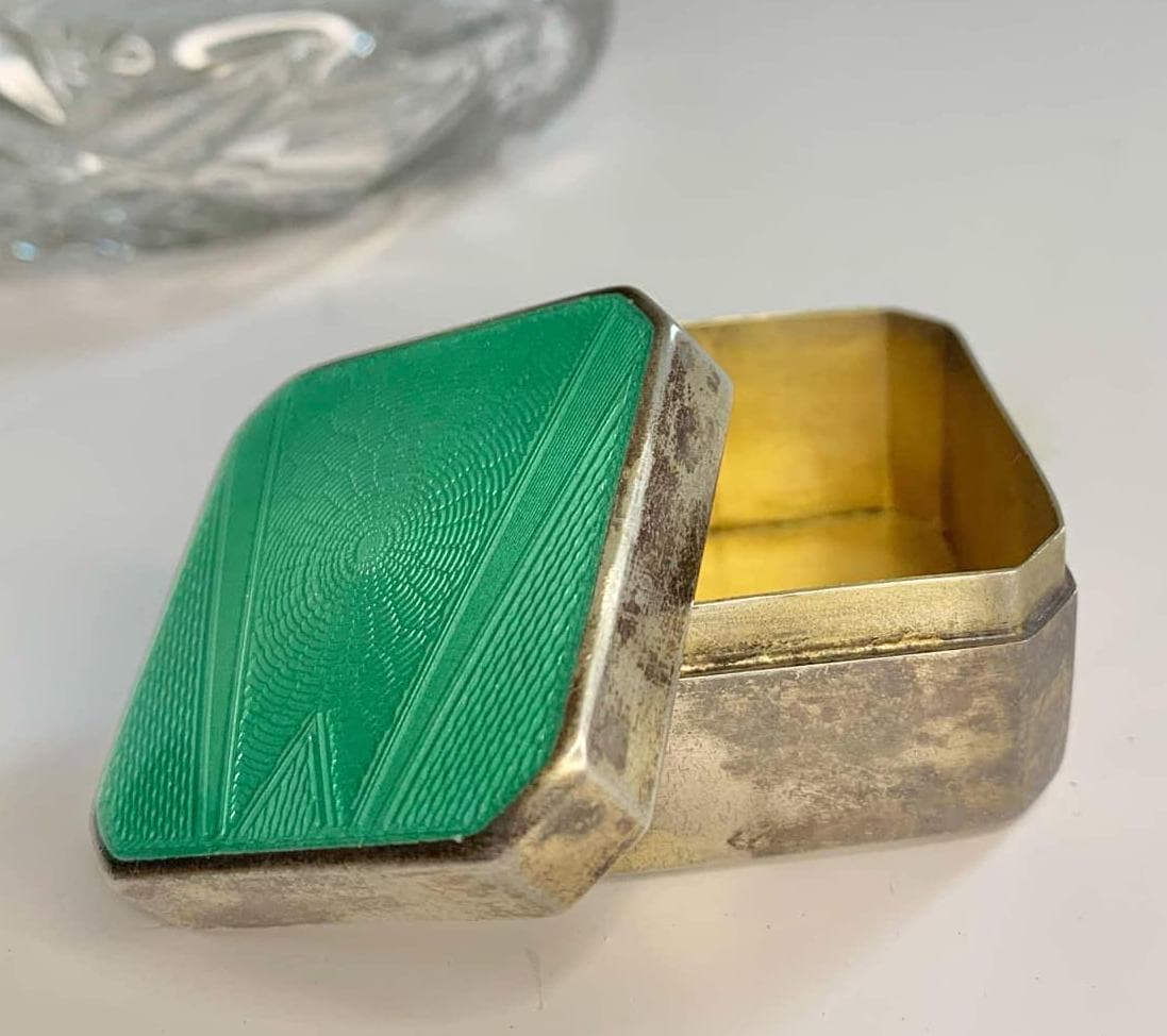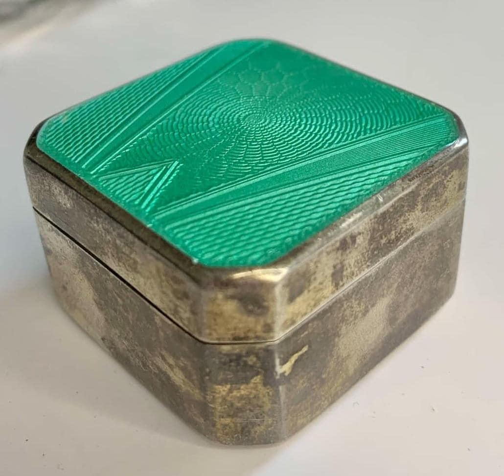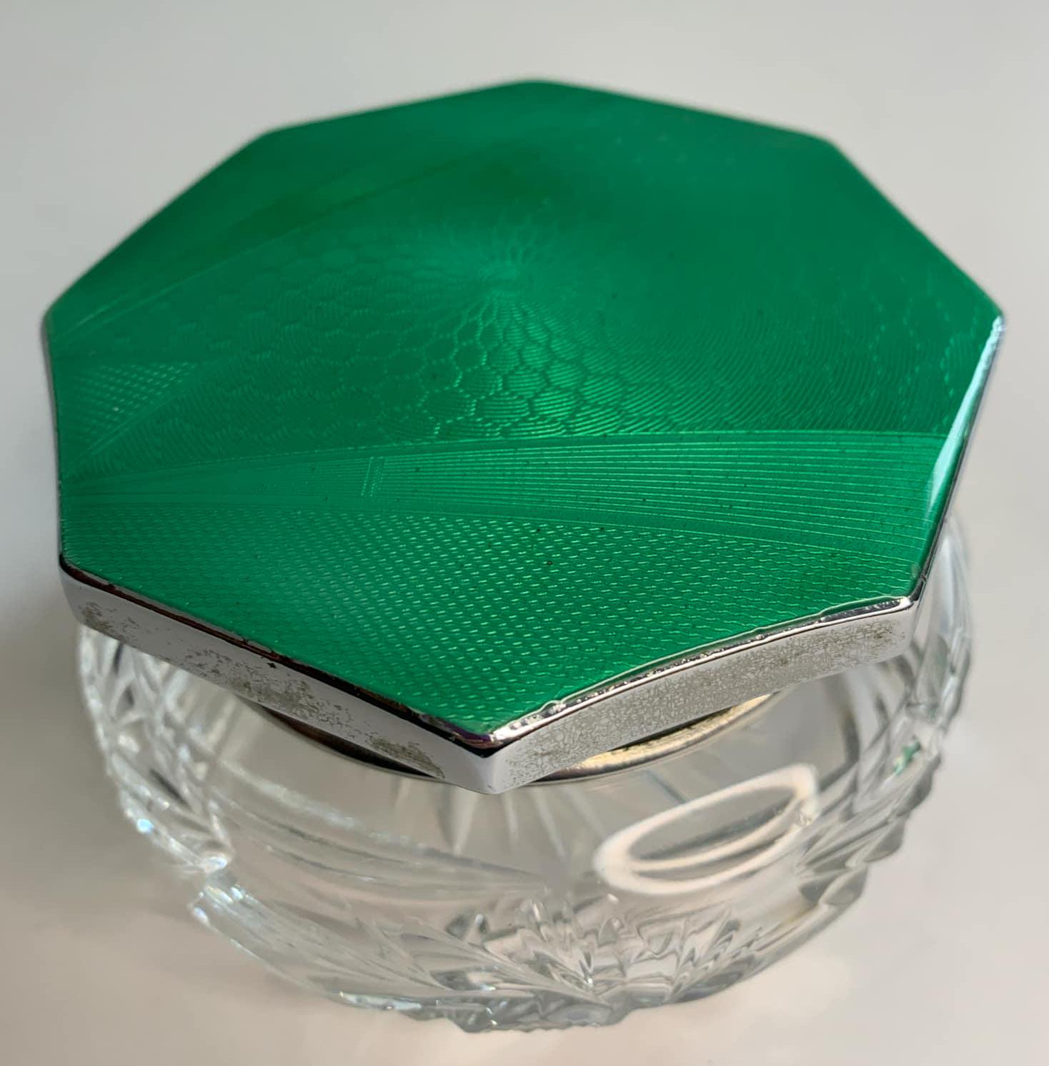 Art Deco Sterling Silver Ring Box Davis, Moss & Company with Matching Dresser Jar