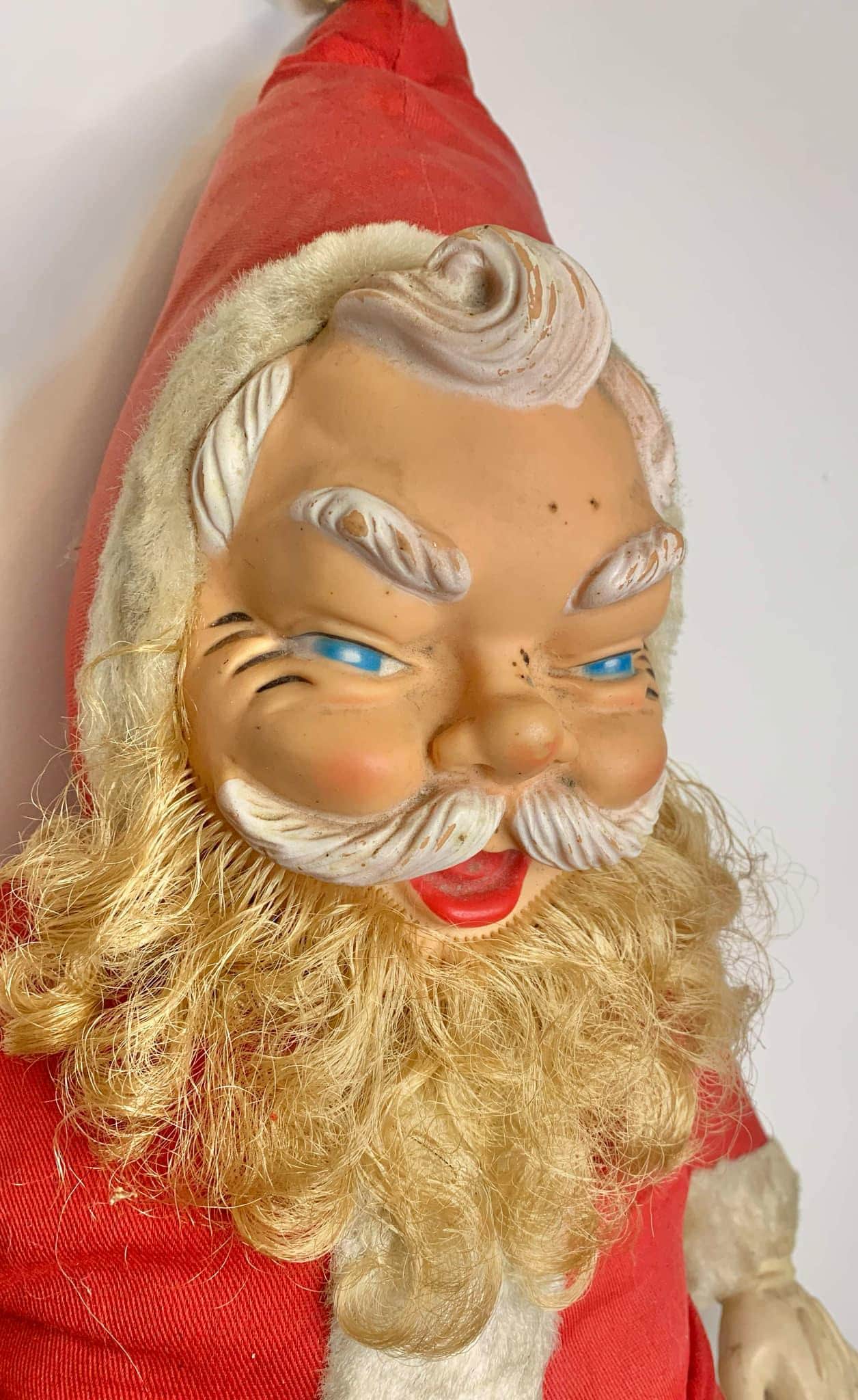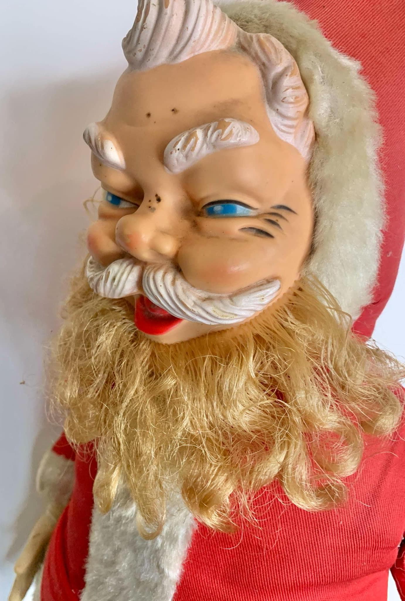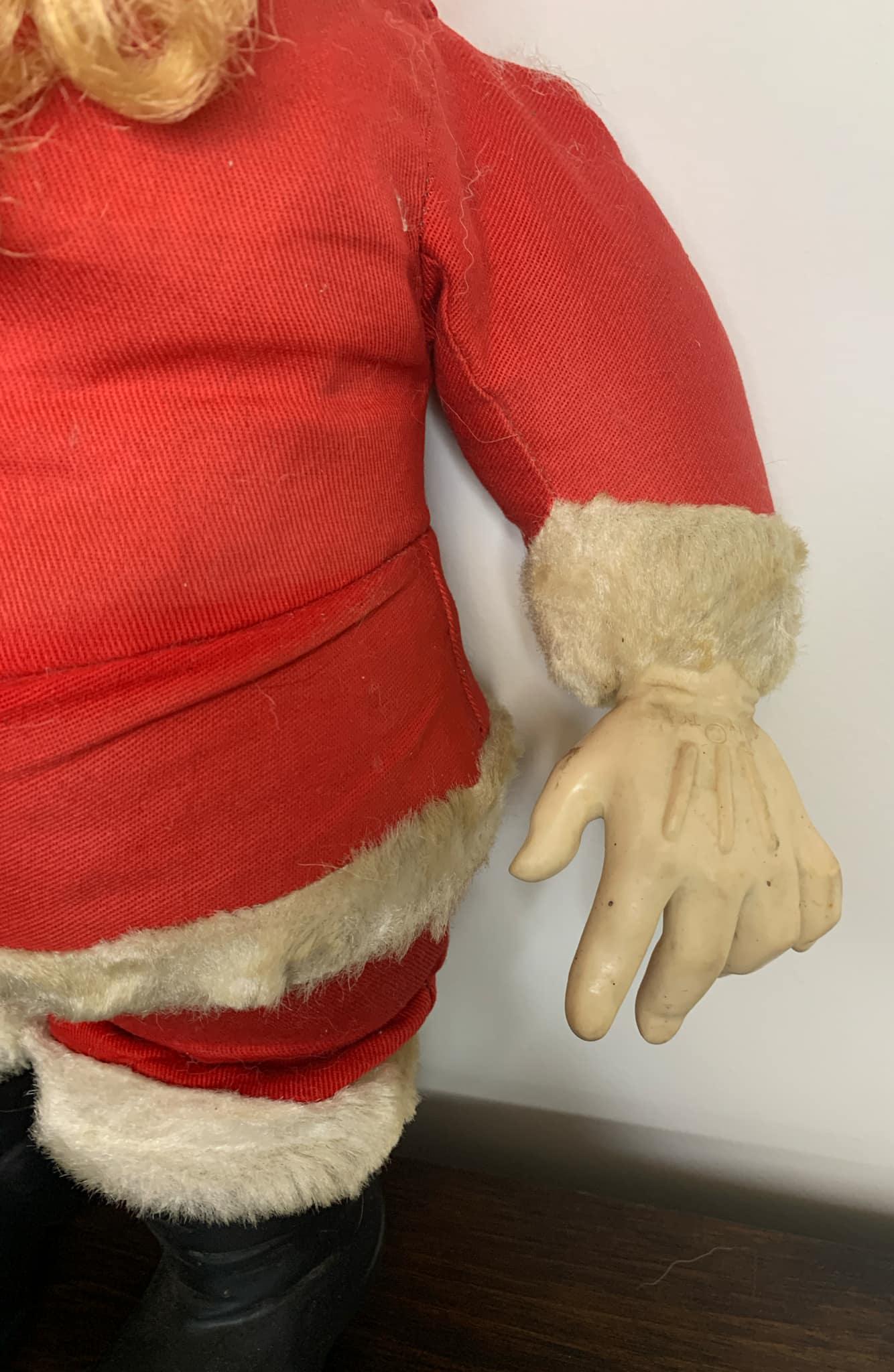 Large 25" Vintage 1950s Rushton Santa with Molded Rubber Face - Made in Canada by Regal Toys Limited in Toronto, Ontario, Canada