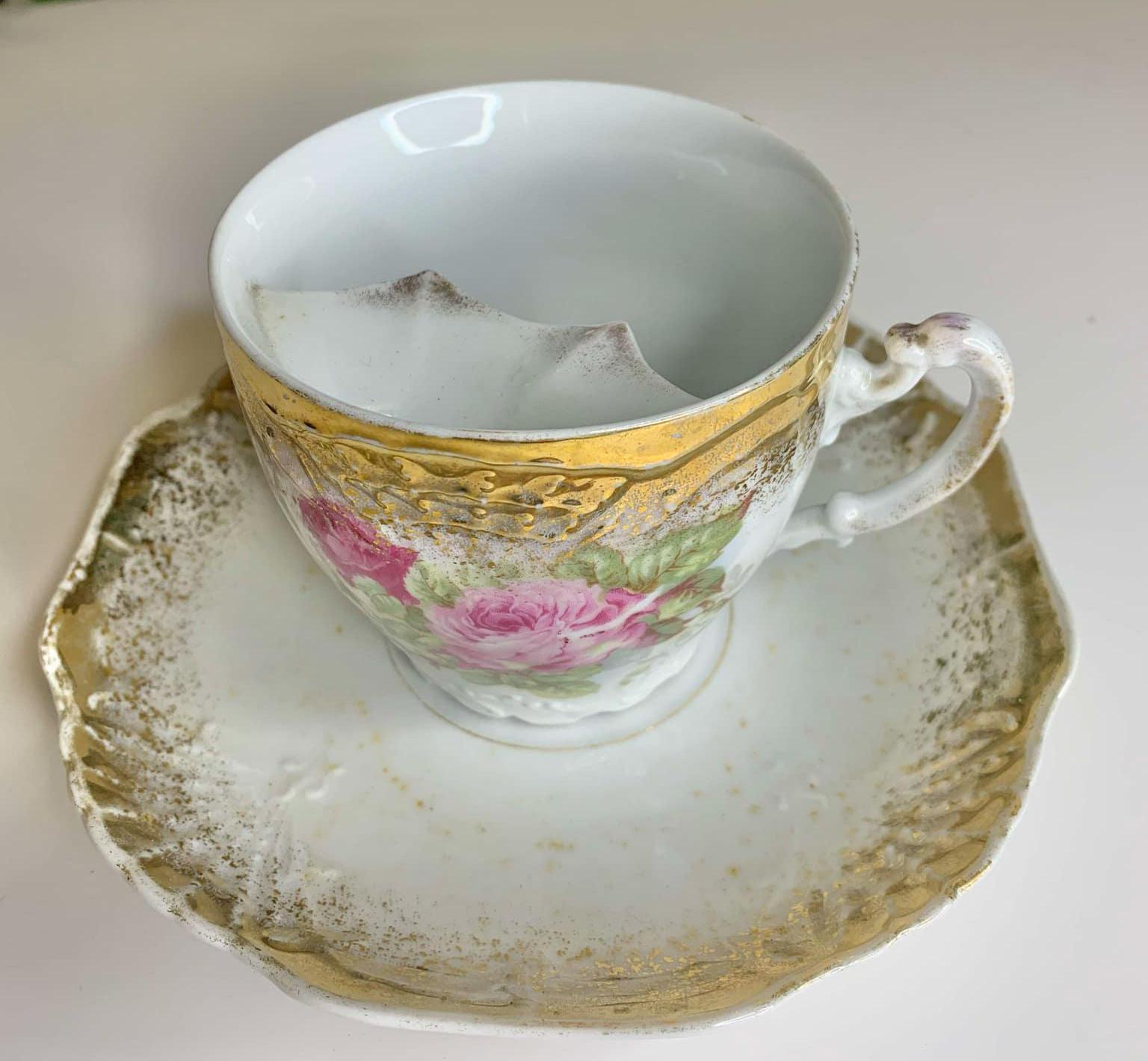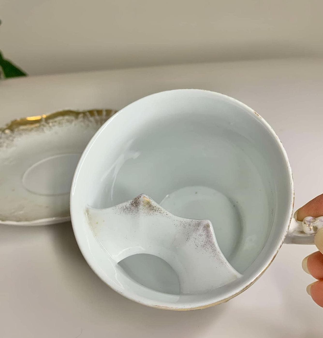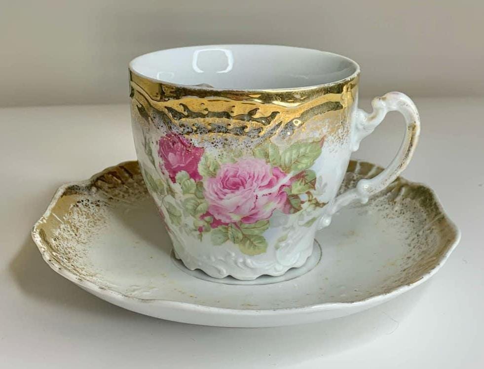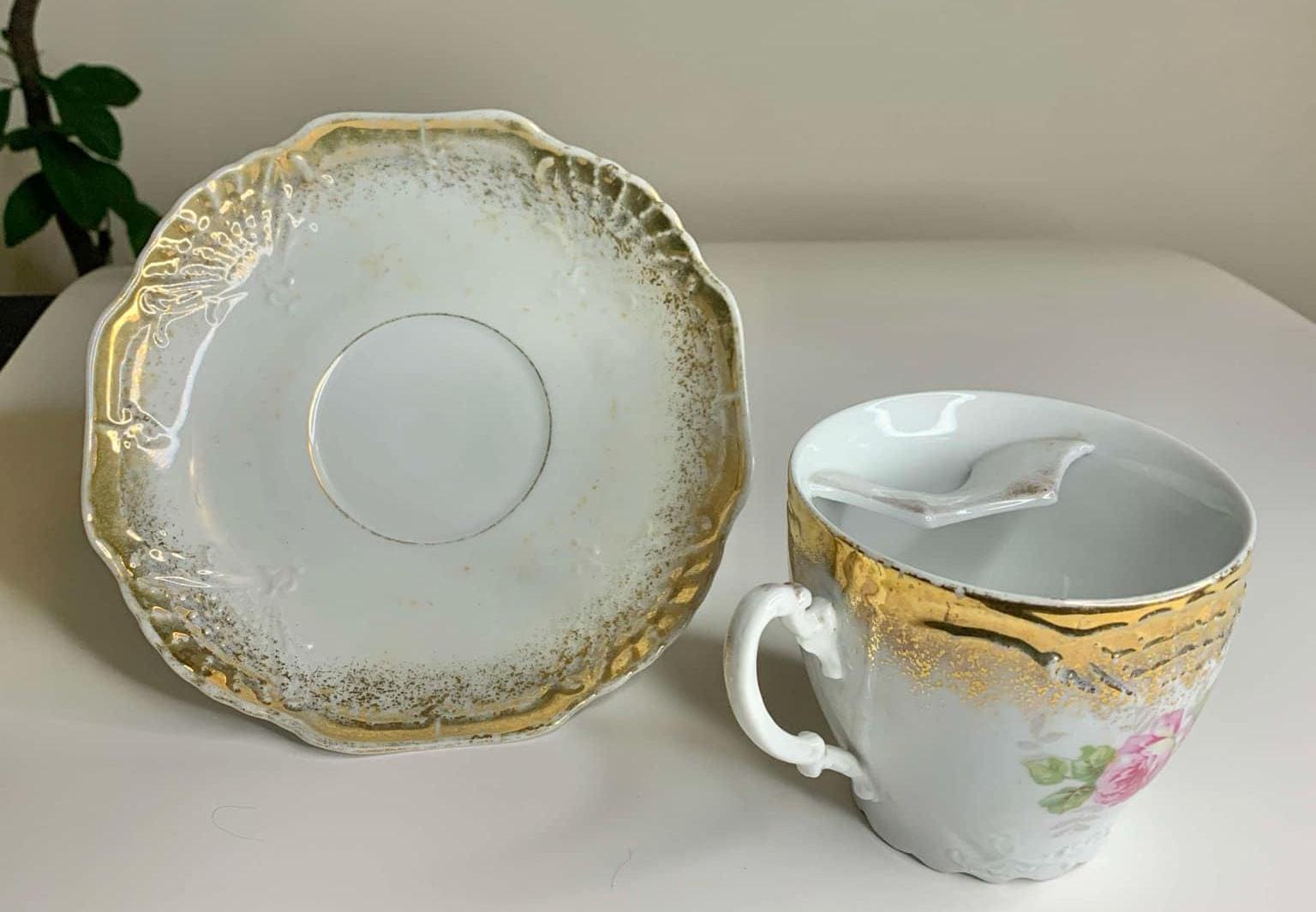 Antique Three Crown China Mustache Cup and Saucer - Made in Germany