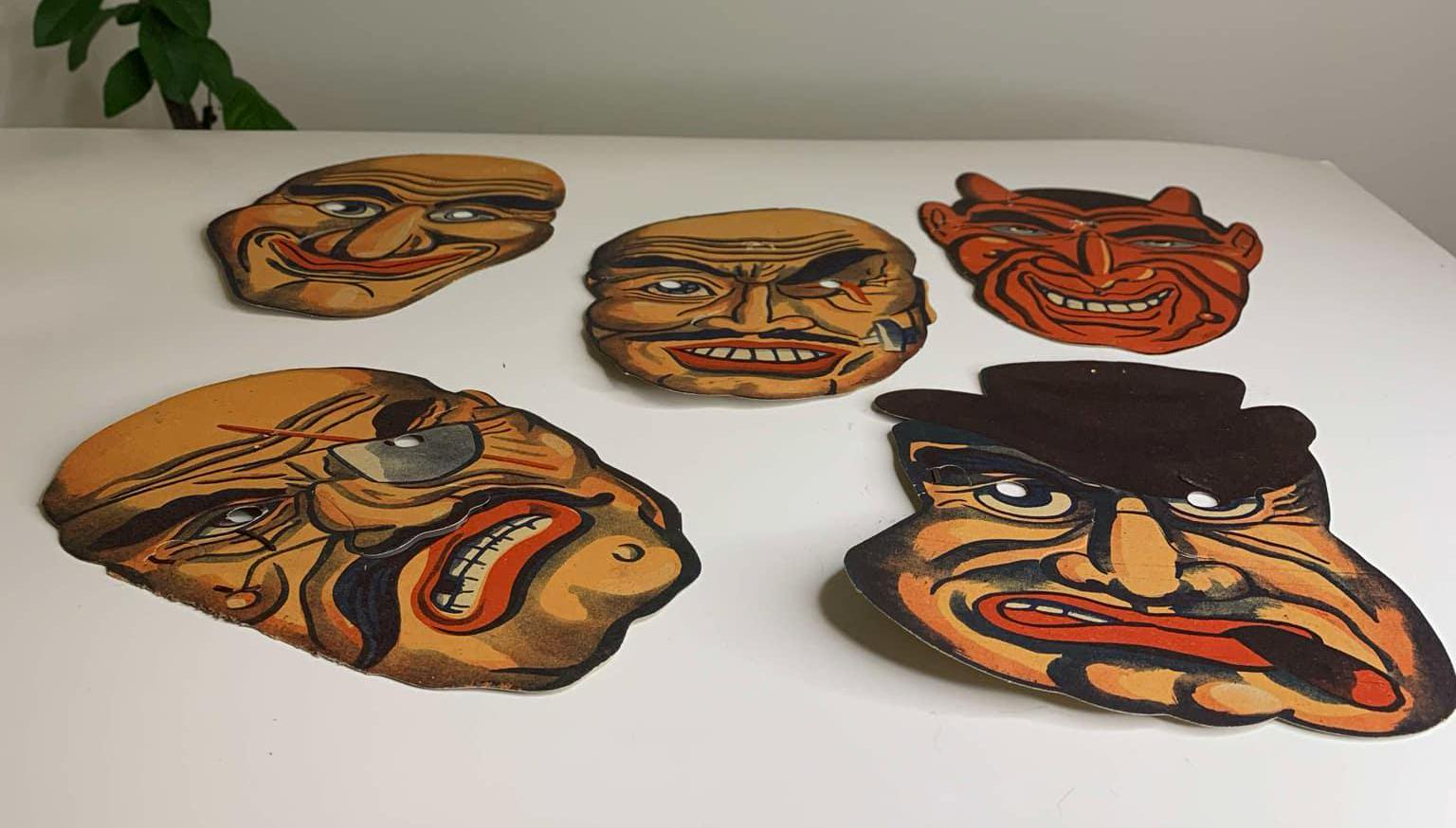 Group of 5 Original Vintage Die Cut Halloween Masks - Made in Japan
