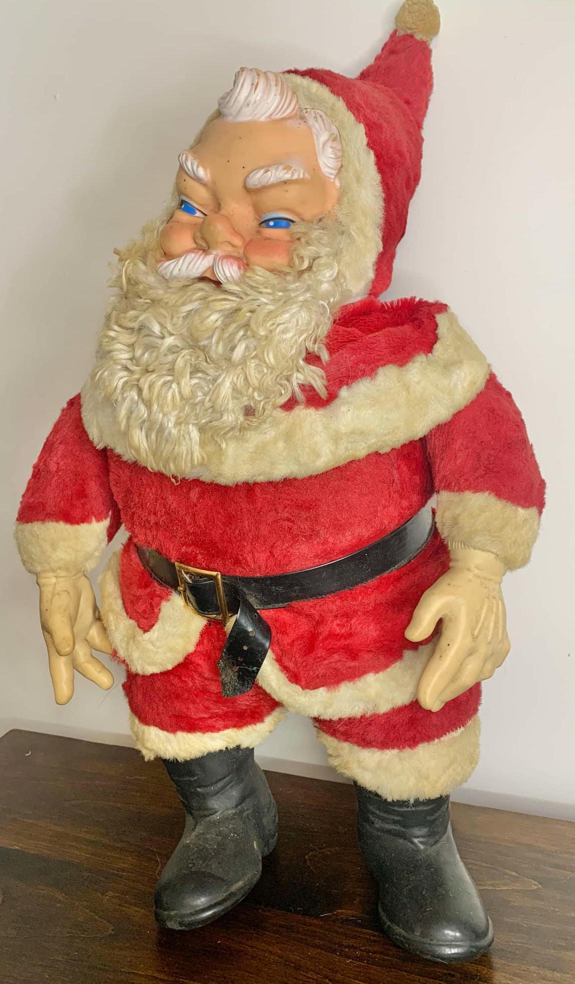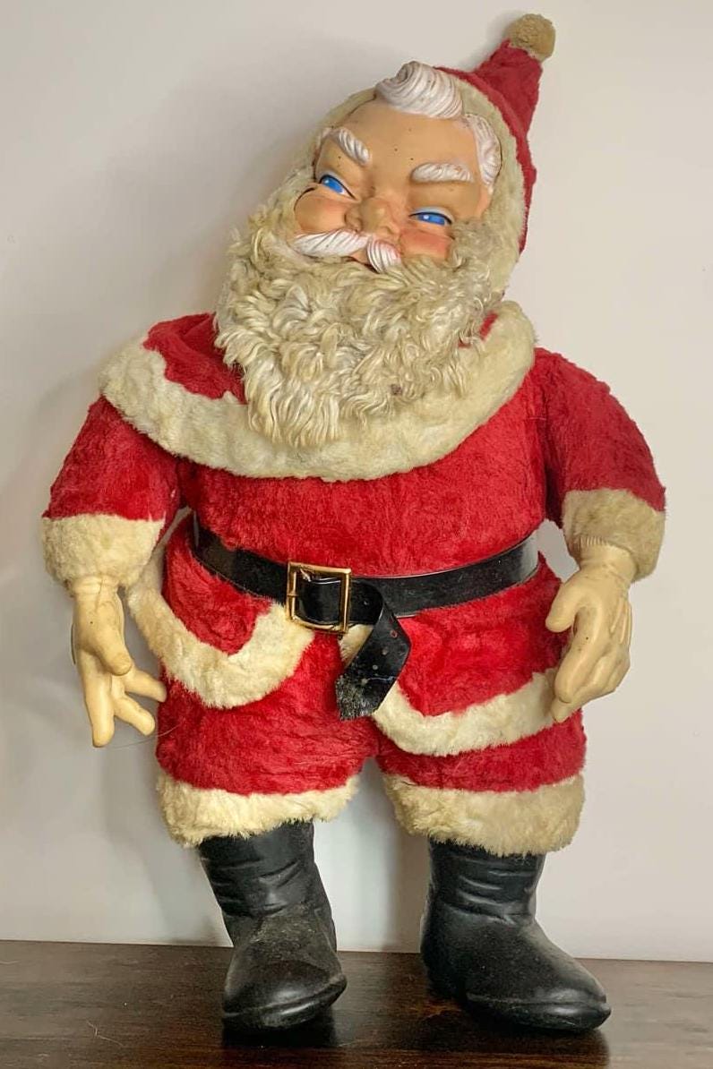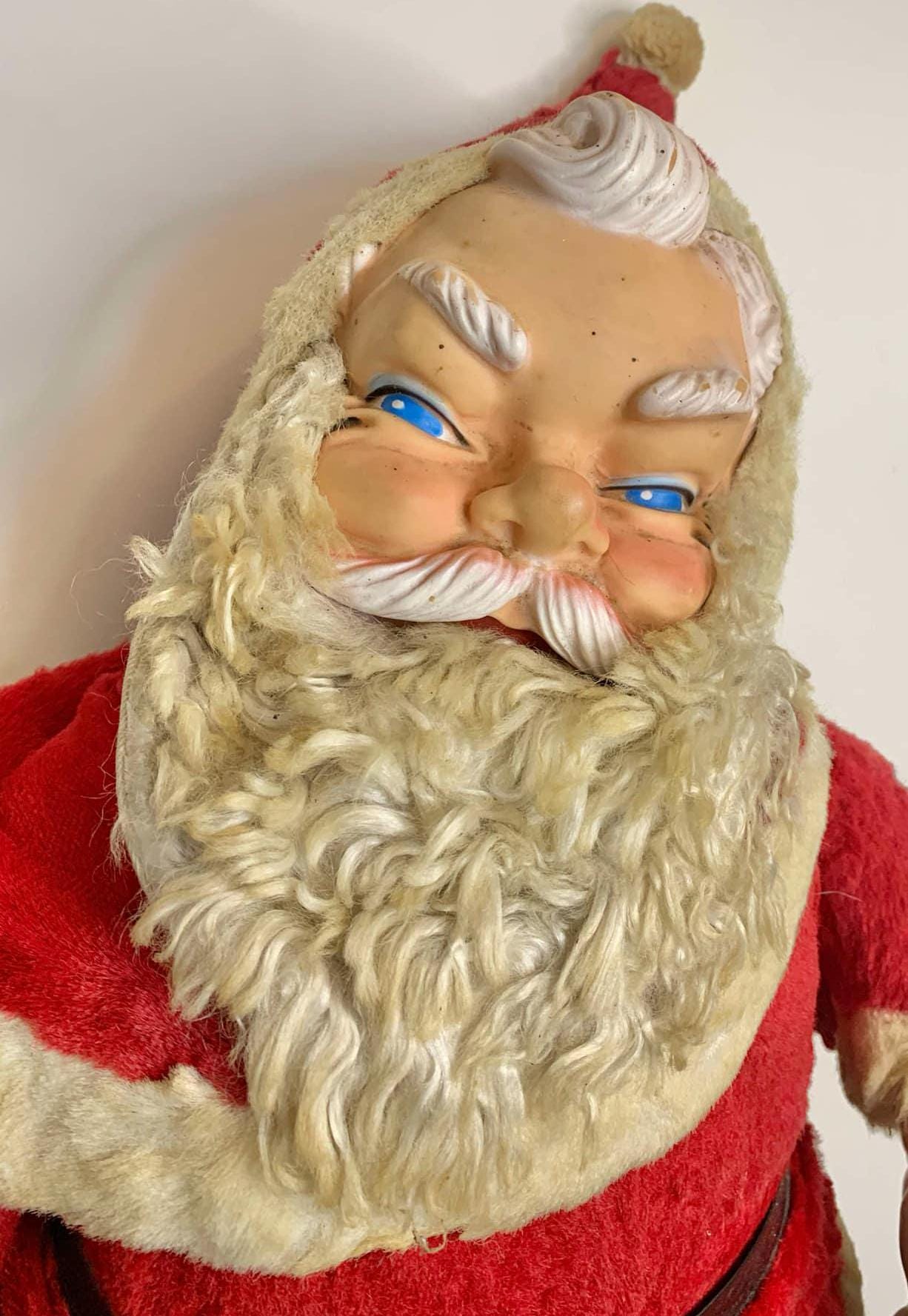 Large 24" Vintage 1950s Rushton Santa with Molded Rubber Face