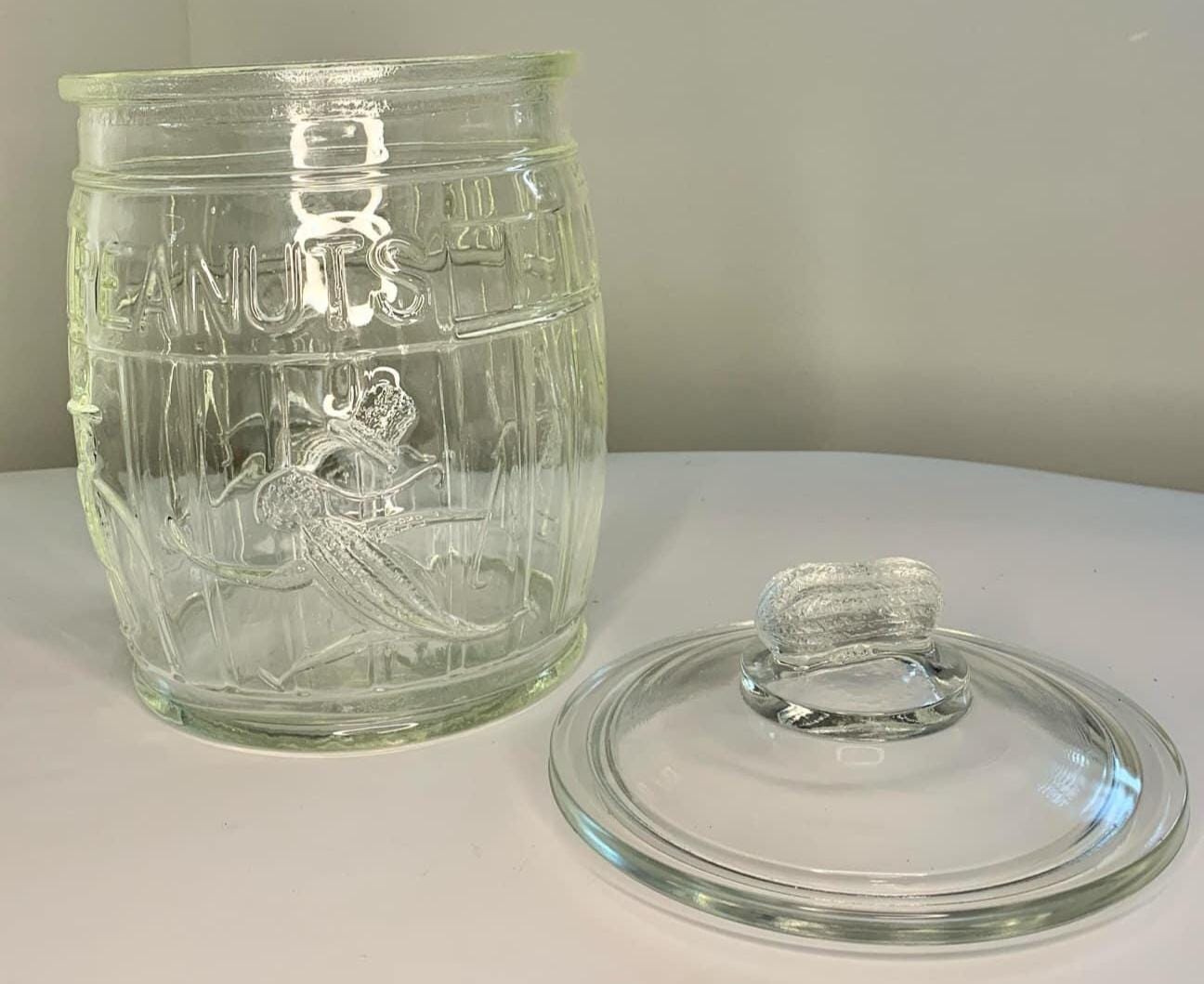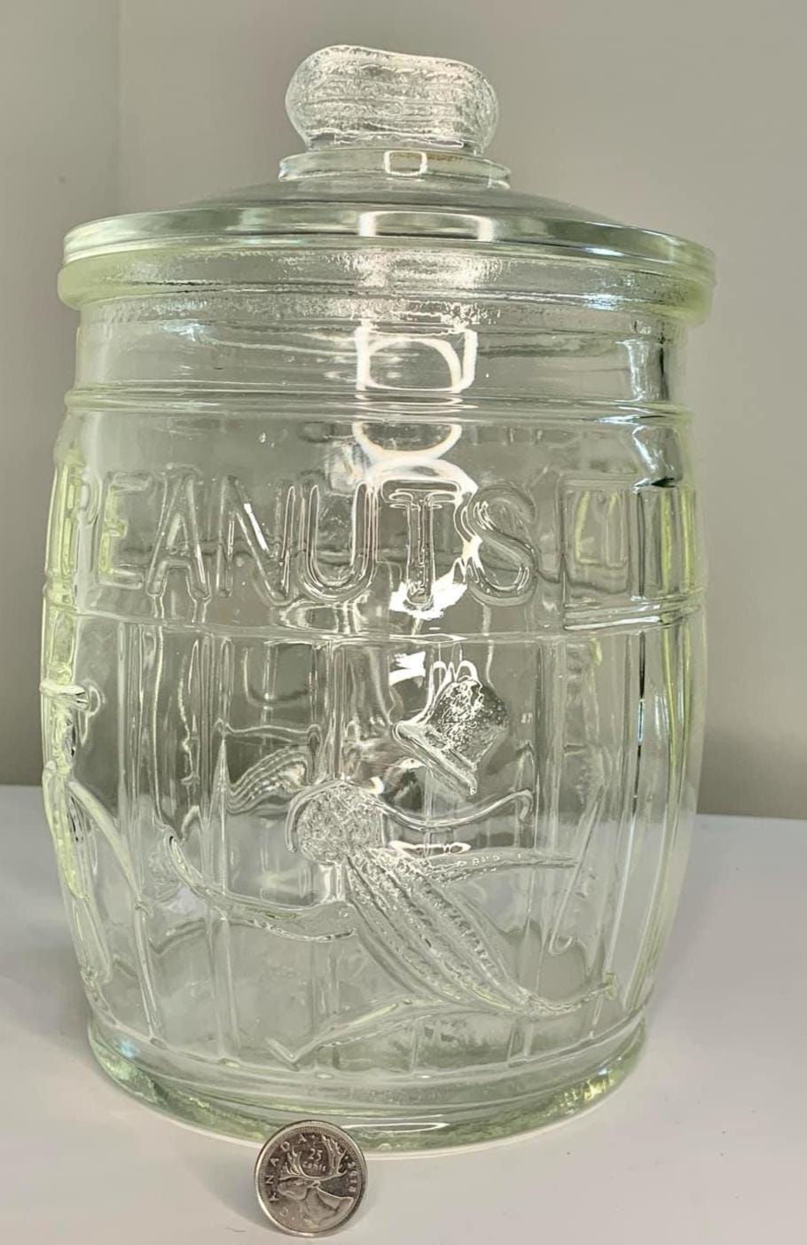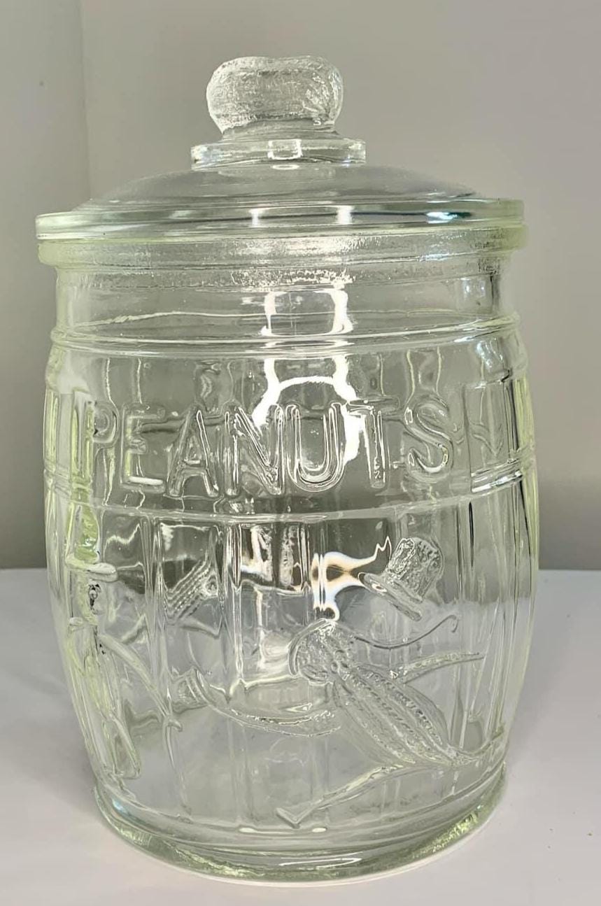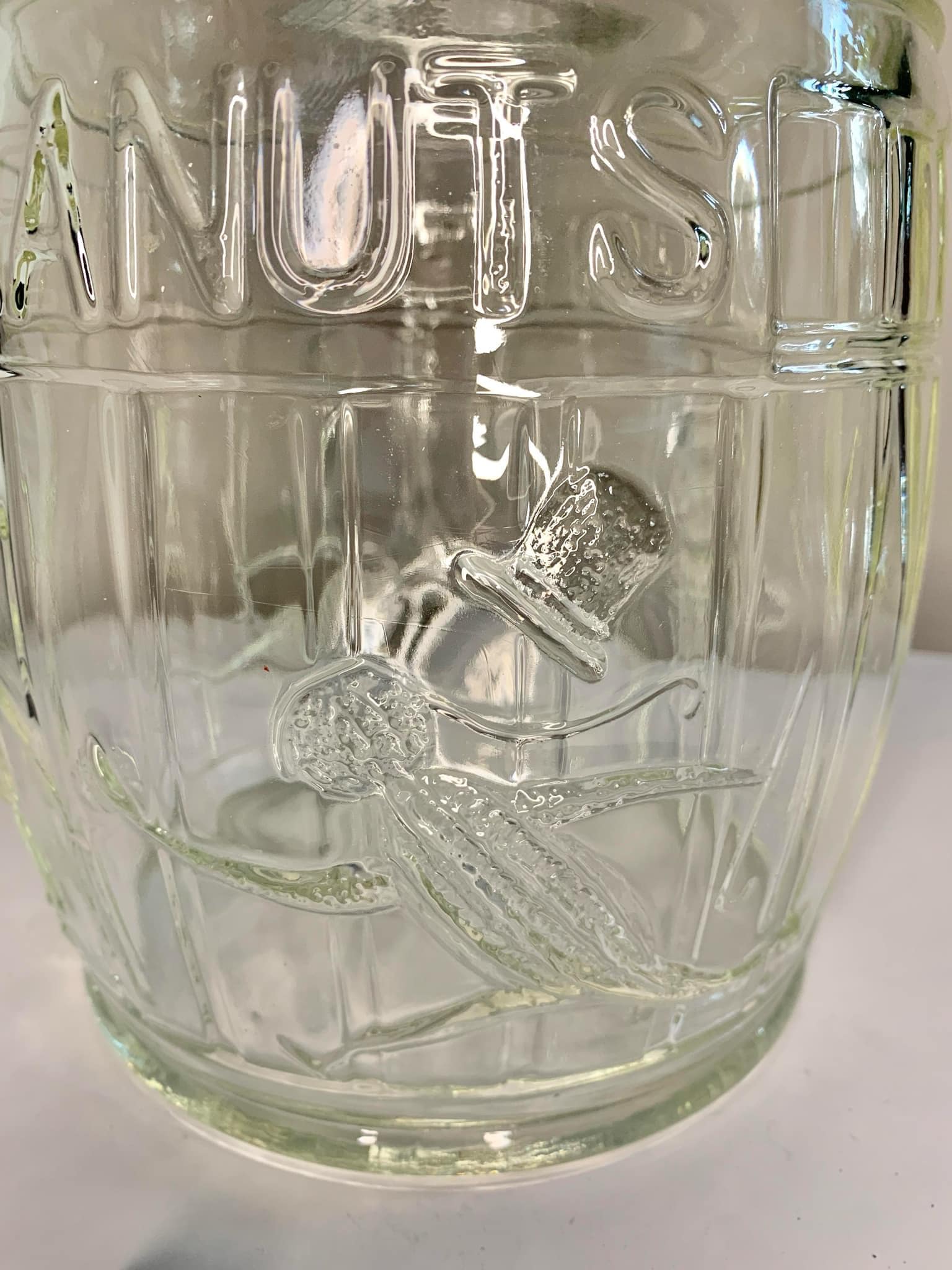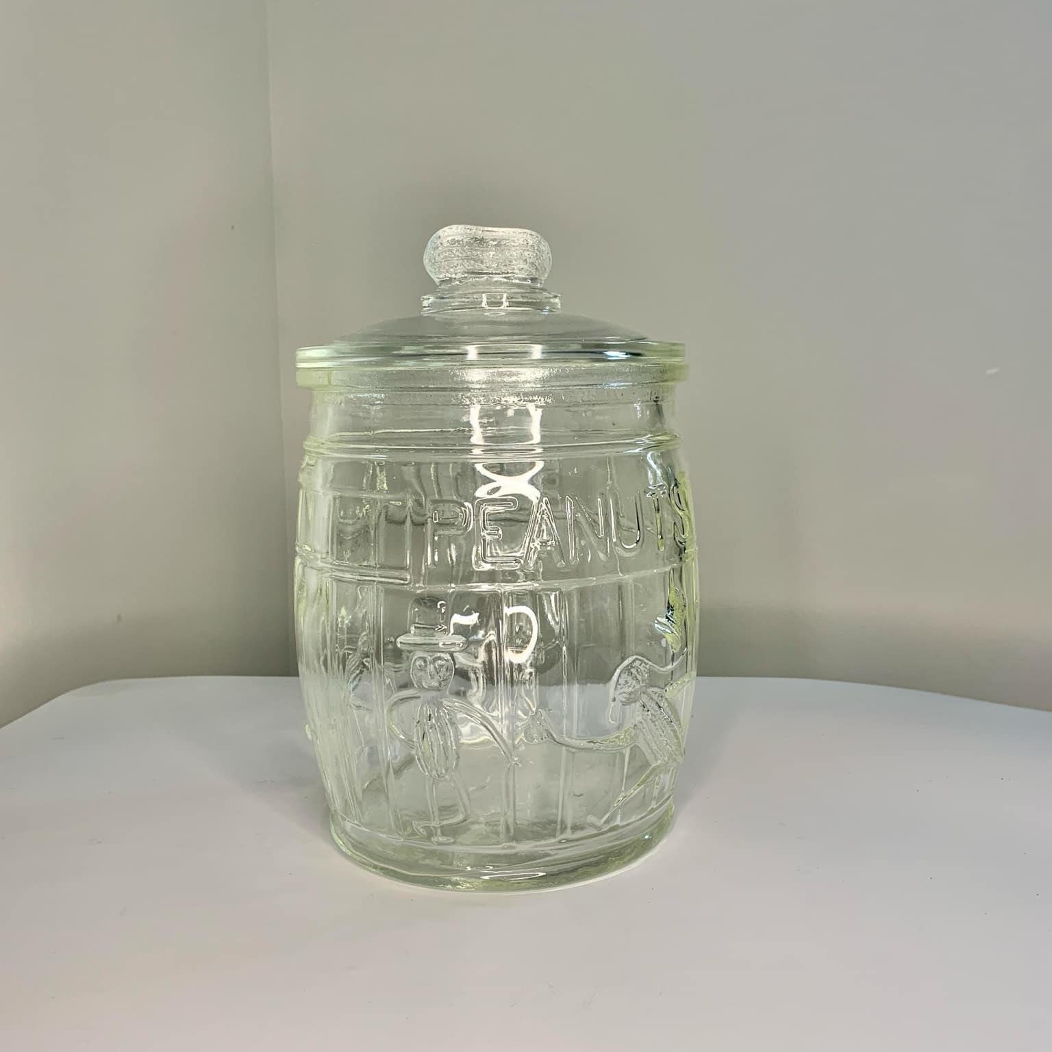 Vintage Planters Running Mr. Peanut Glass Barrel Store Display Jar with Lid