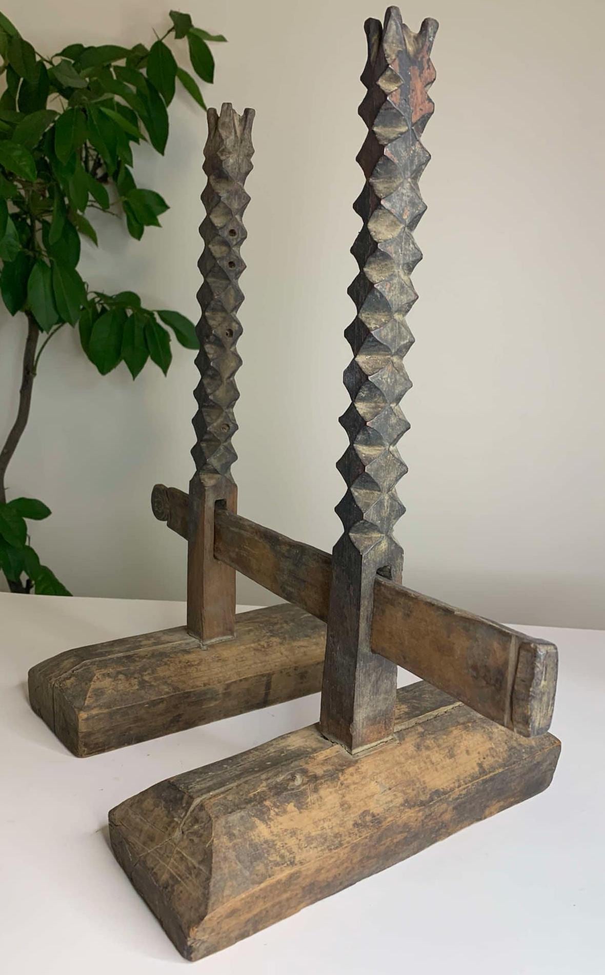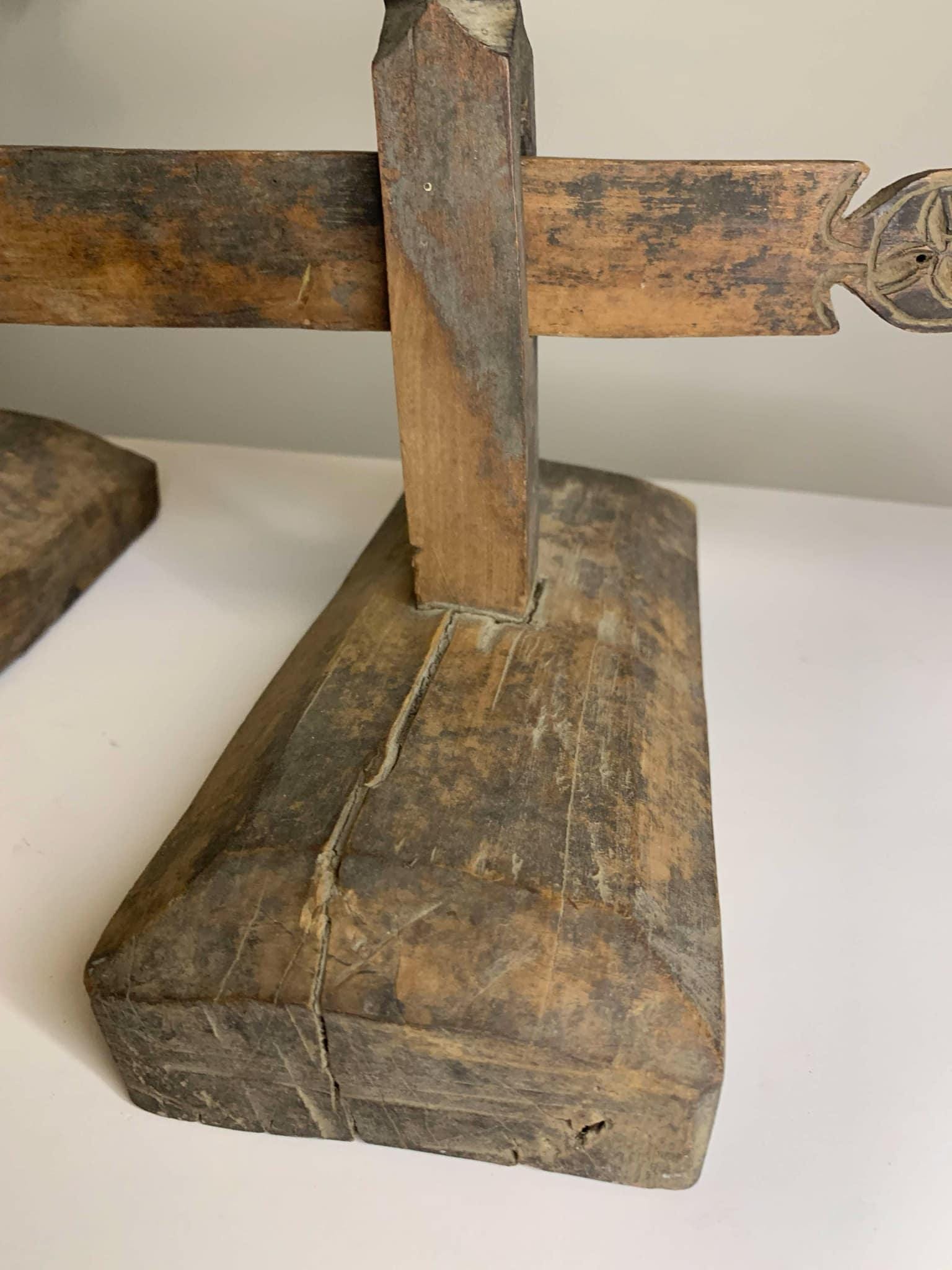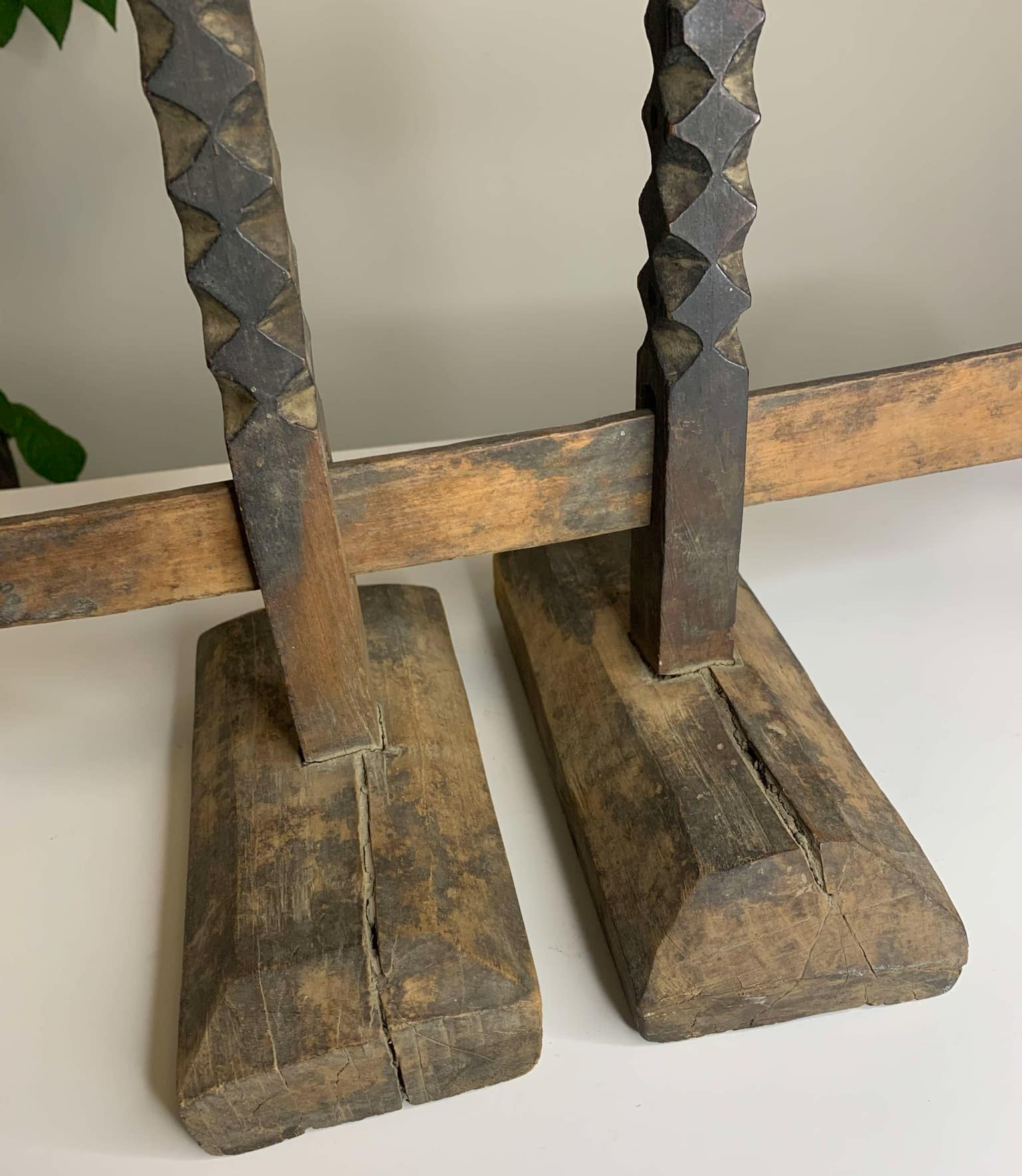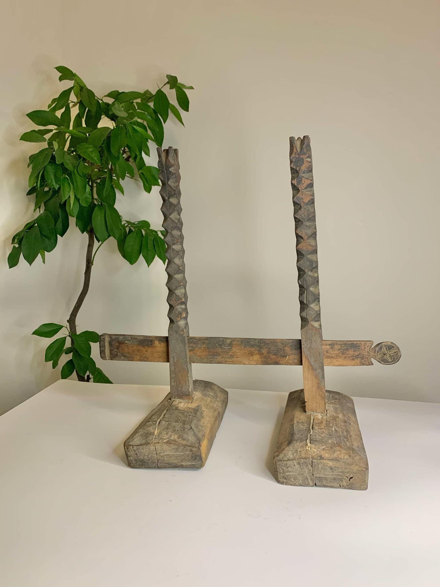 16" Primitive Carved Wooden Standing Adjustable Loom Rack
