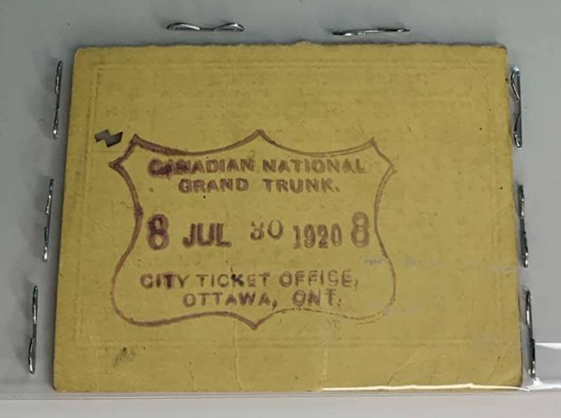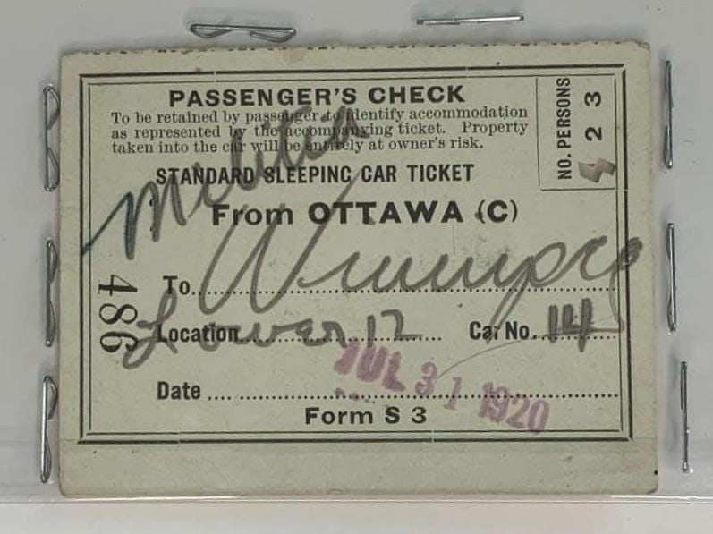 Canadian Pacific Railway / Grand Trunk Railway Passengers Check - Ottawa to Winnipeg Militia July 1920