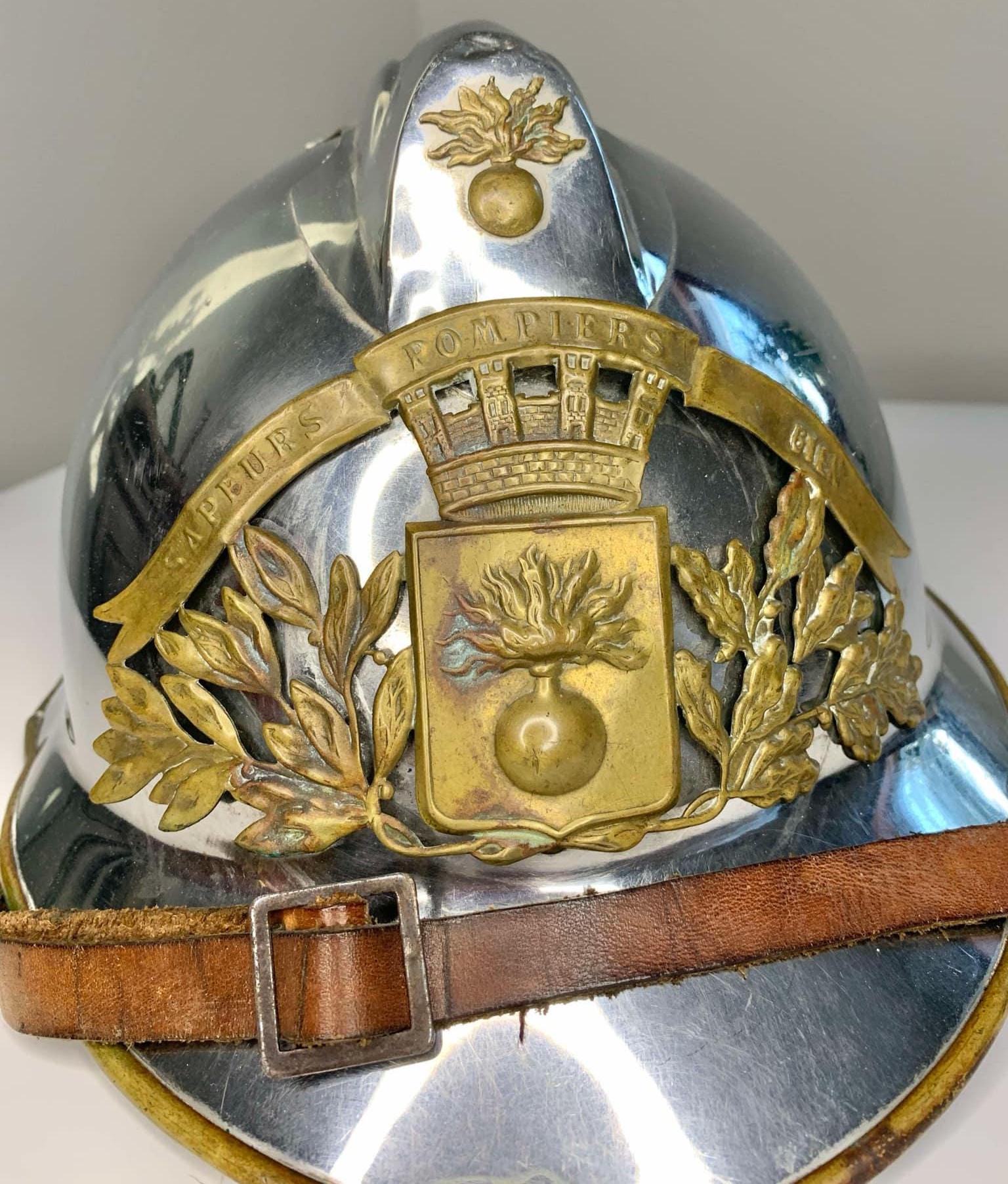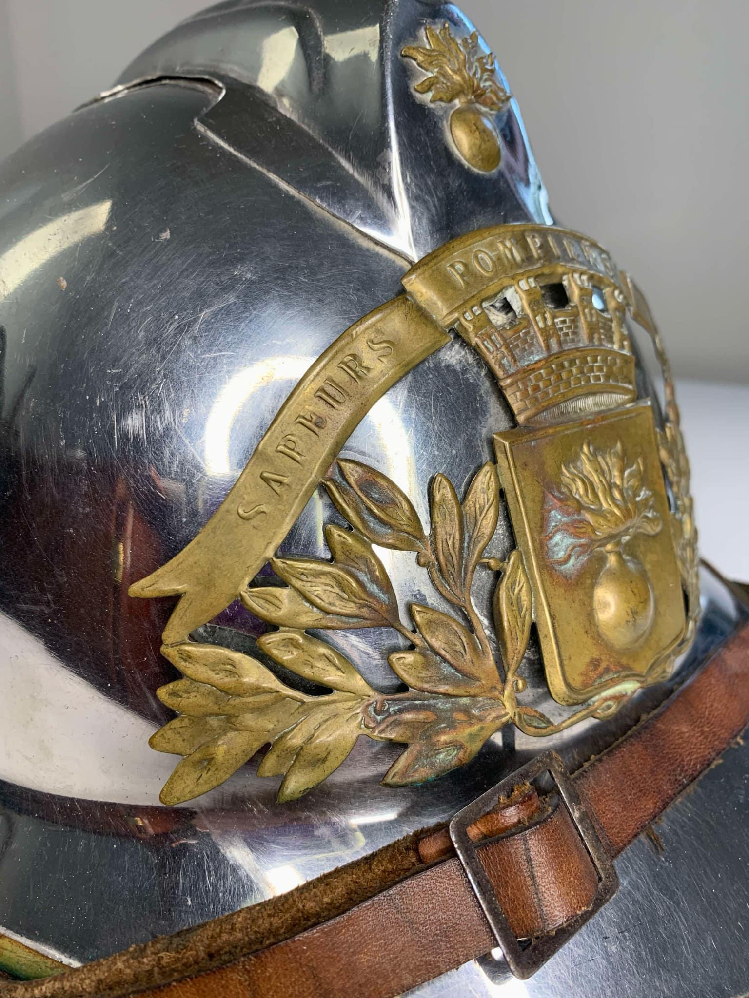 French Sapeurs Pompiers Firefighter Helmet Nickle Plated with Nice Liner