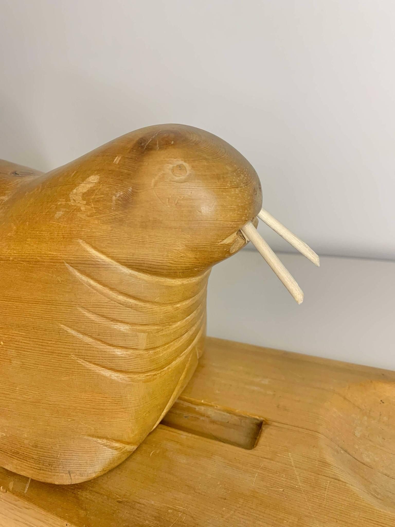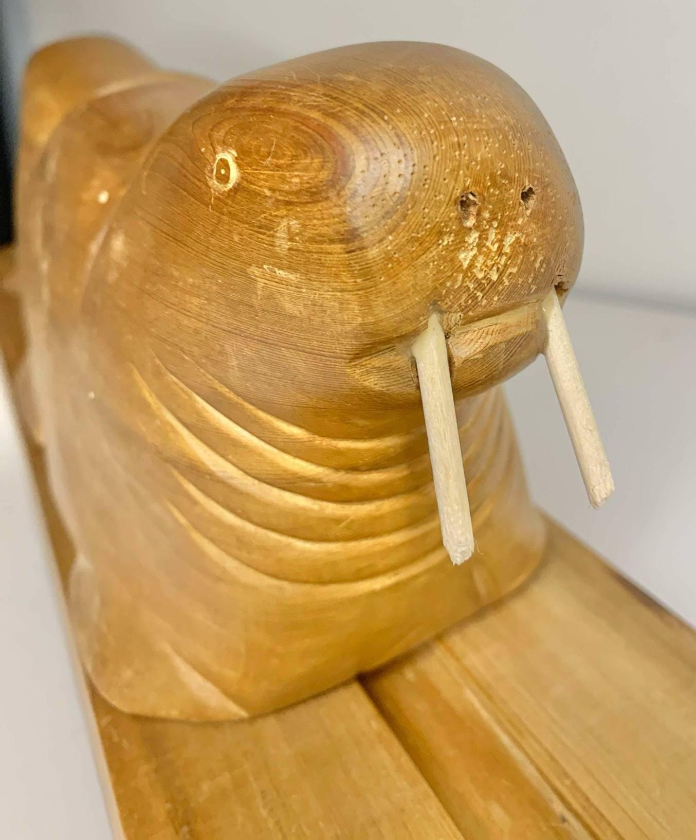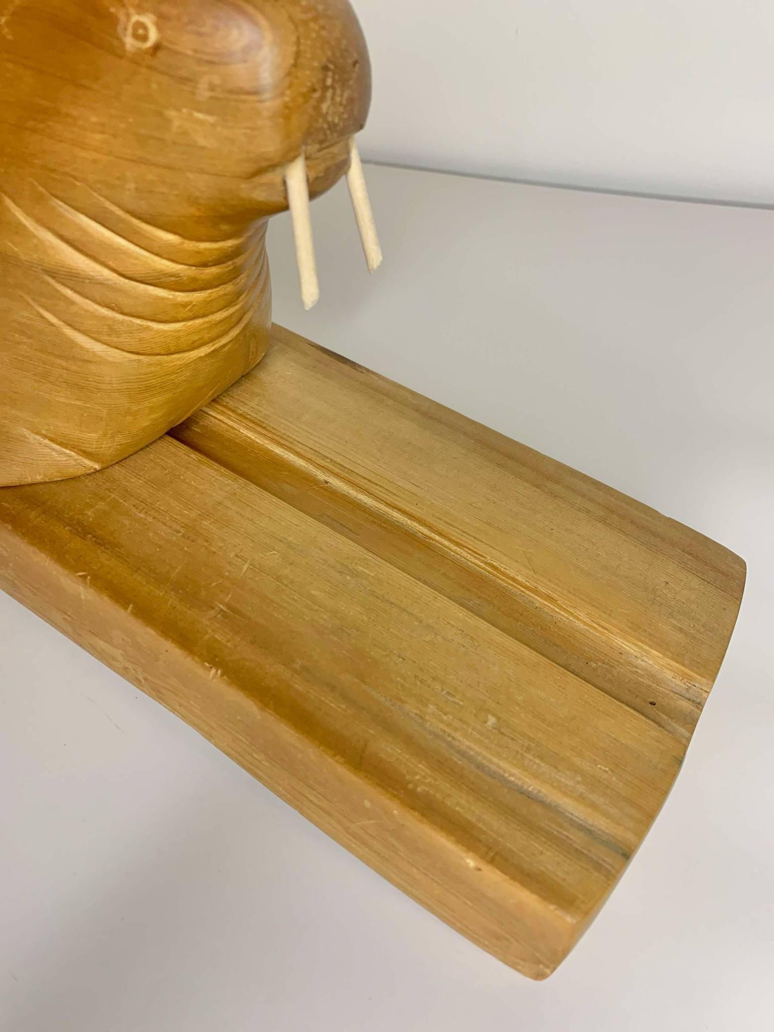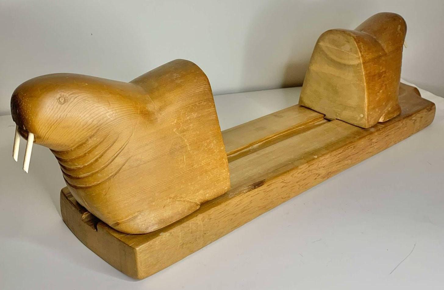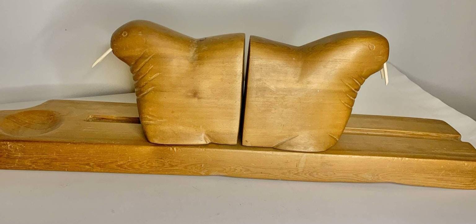 Indigenous Made Carved Wooden Walrus Sliding Bookends - Signed by Artist