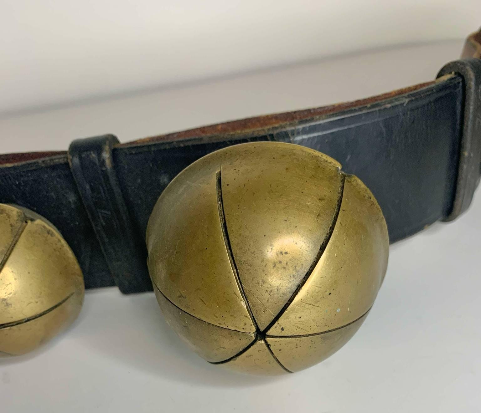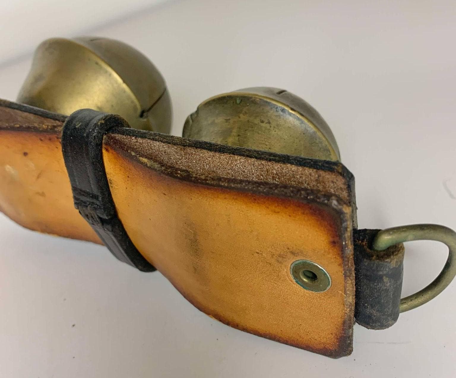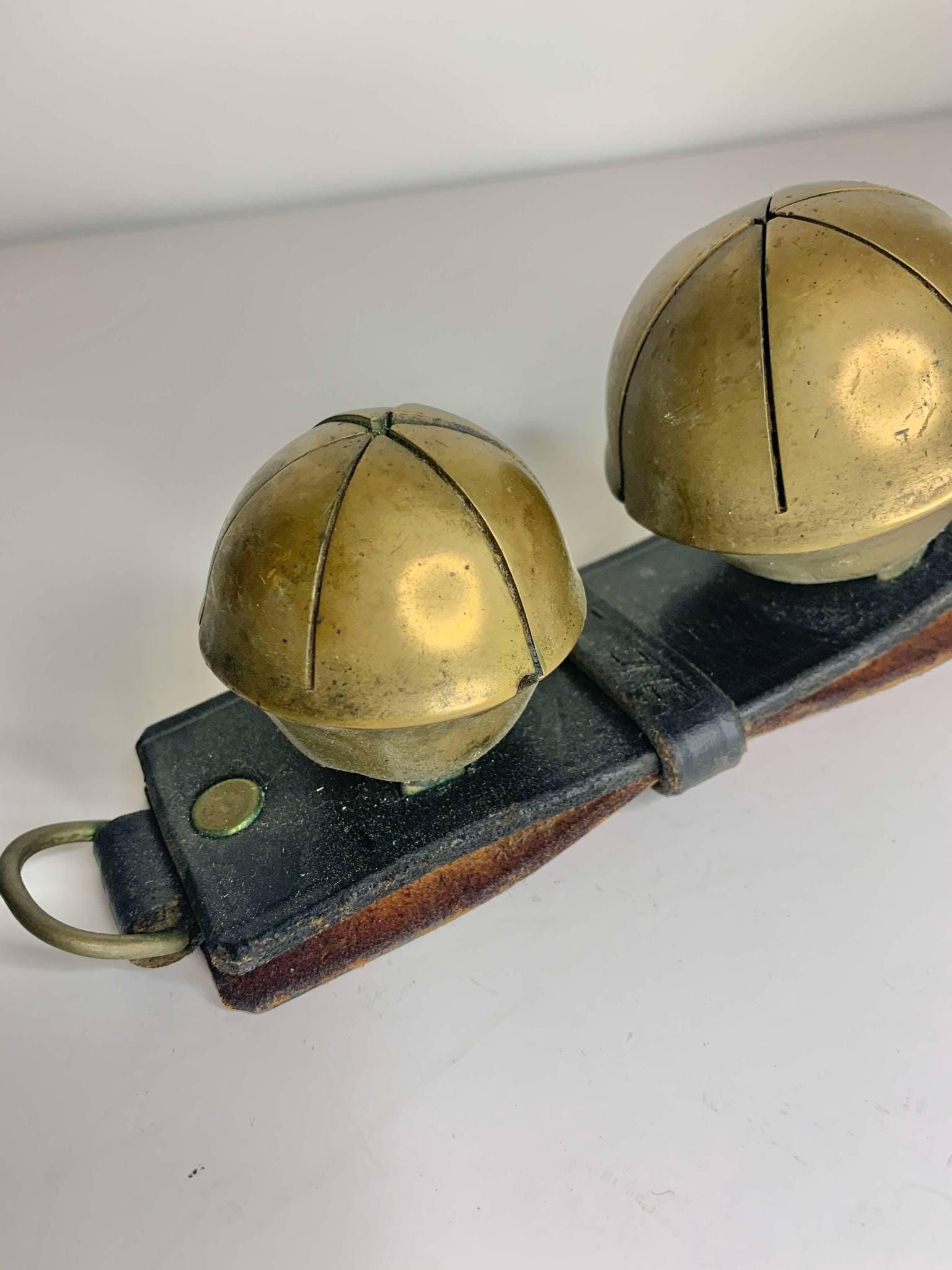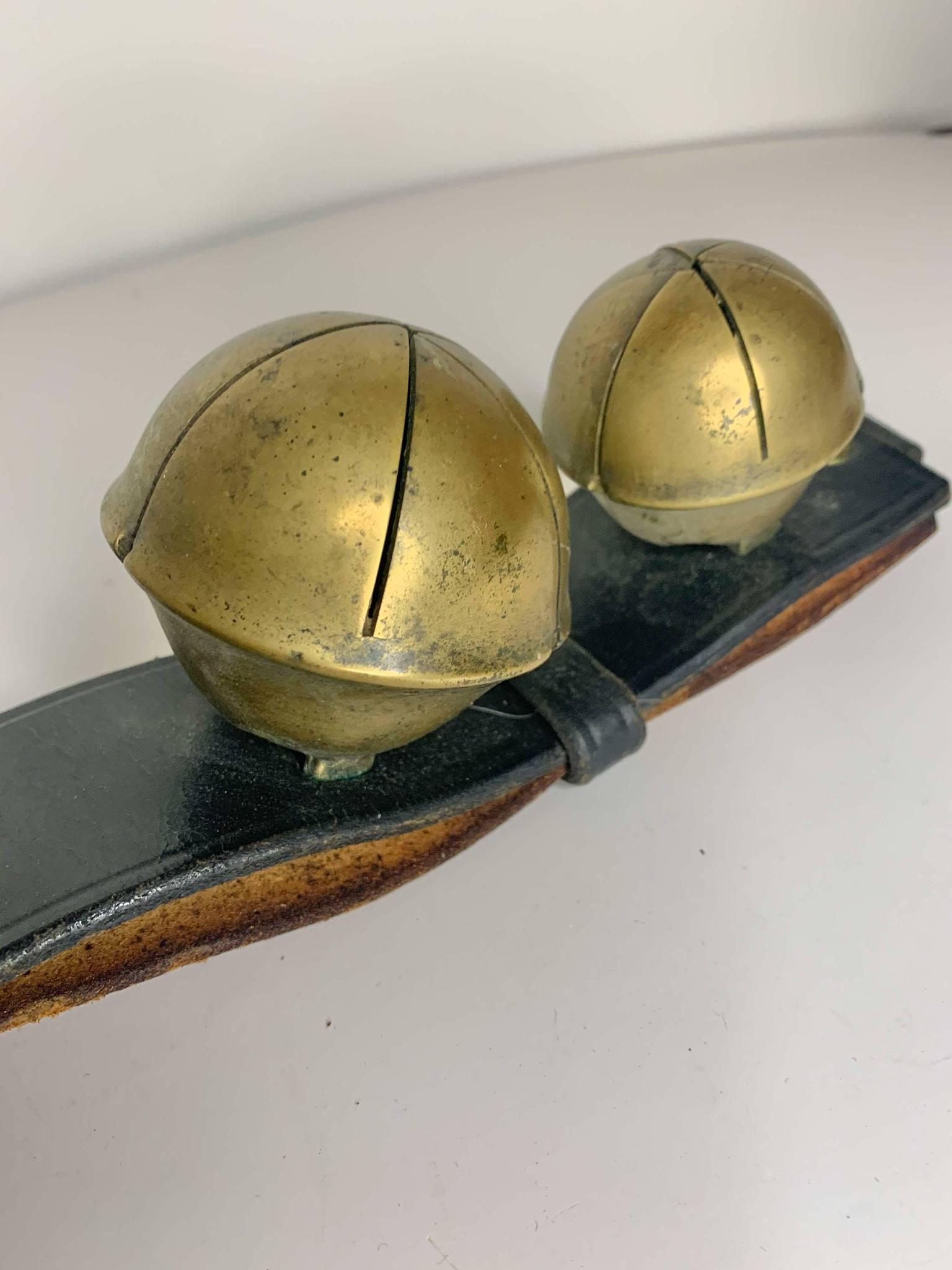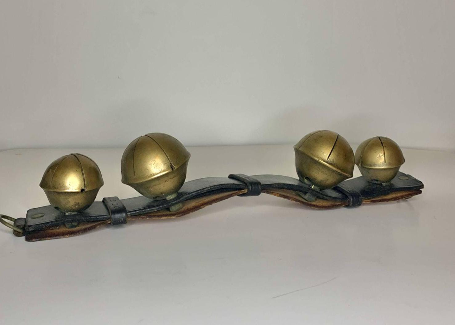 Set of 4 Antique Brass Swedish Rump Bells on Leather