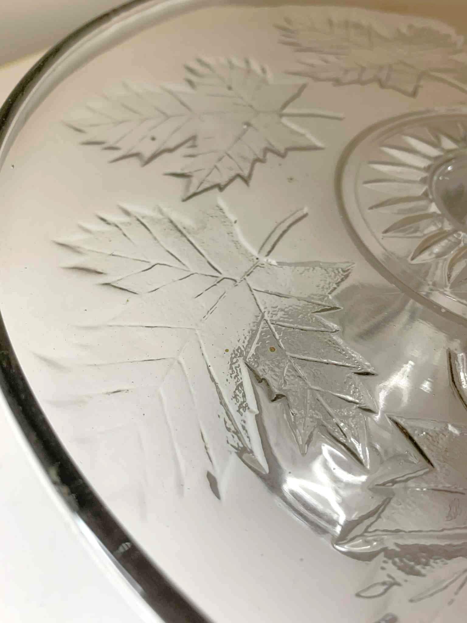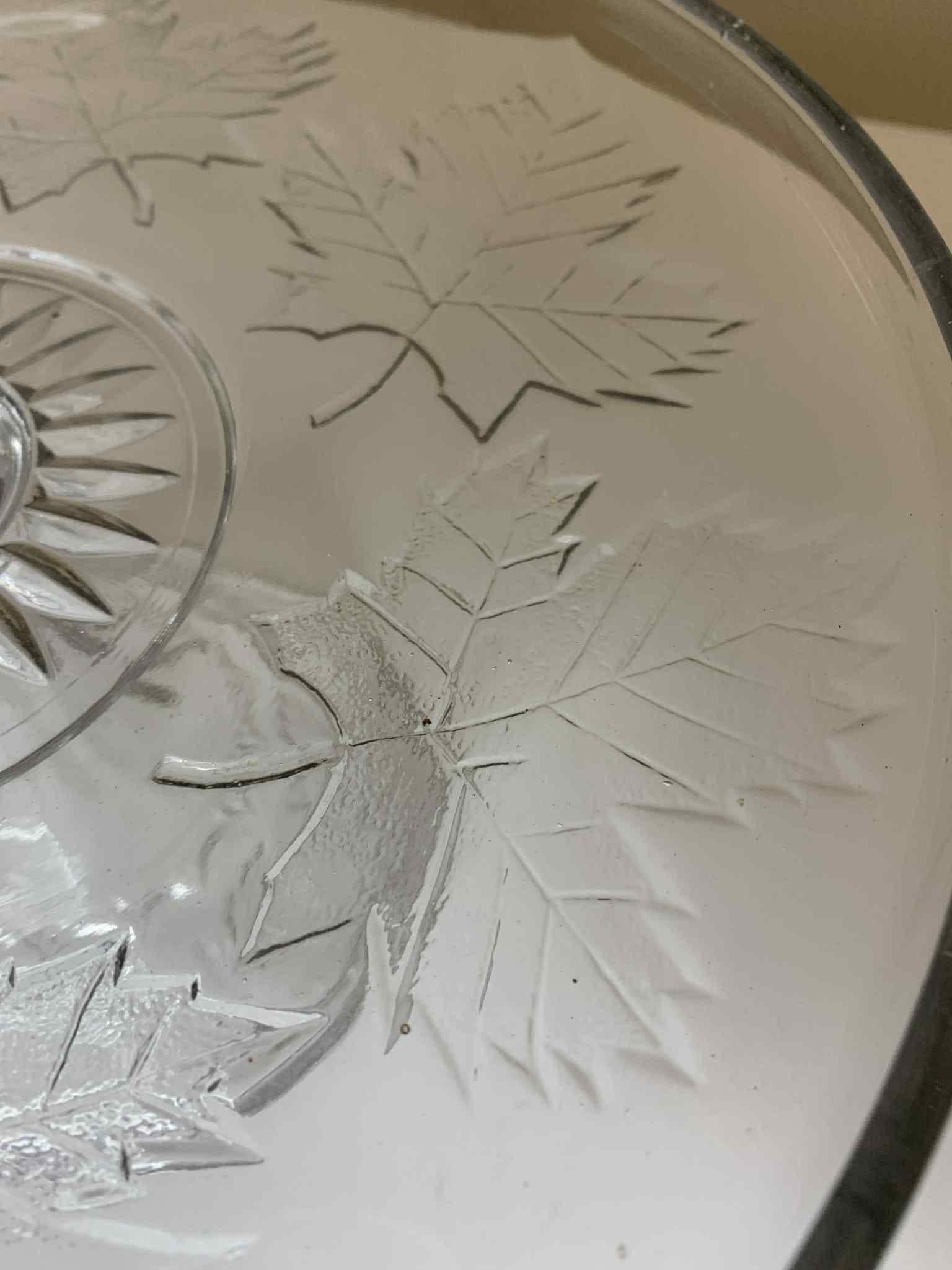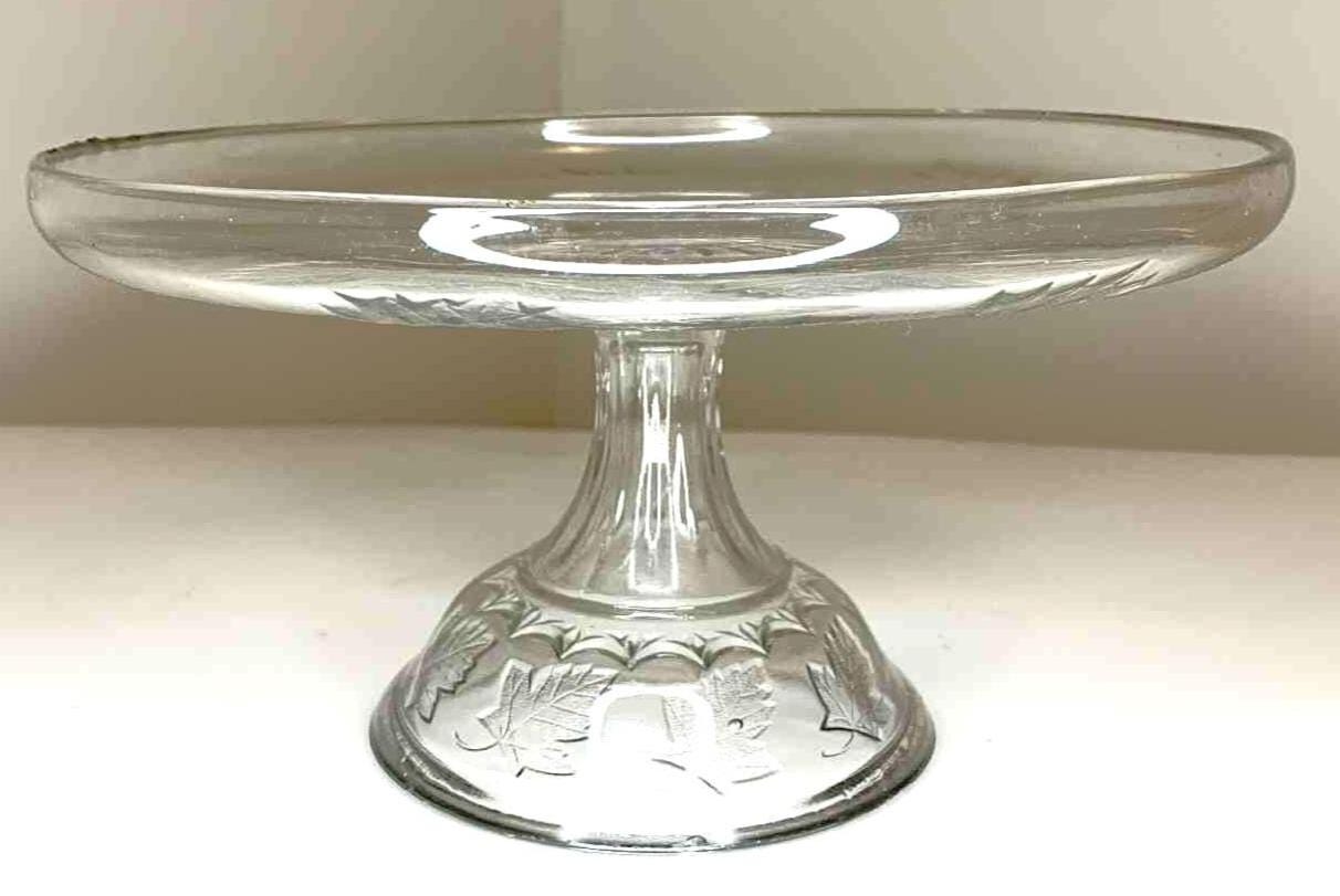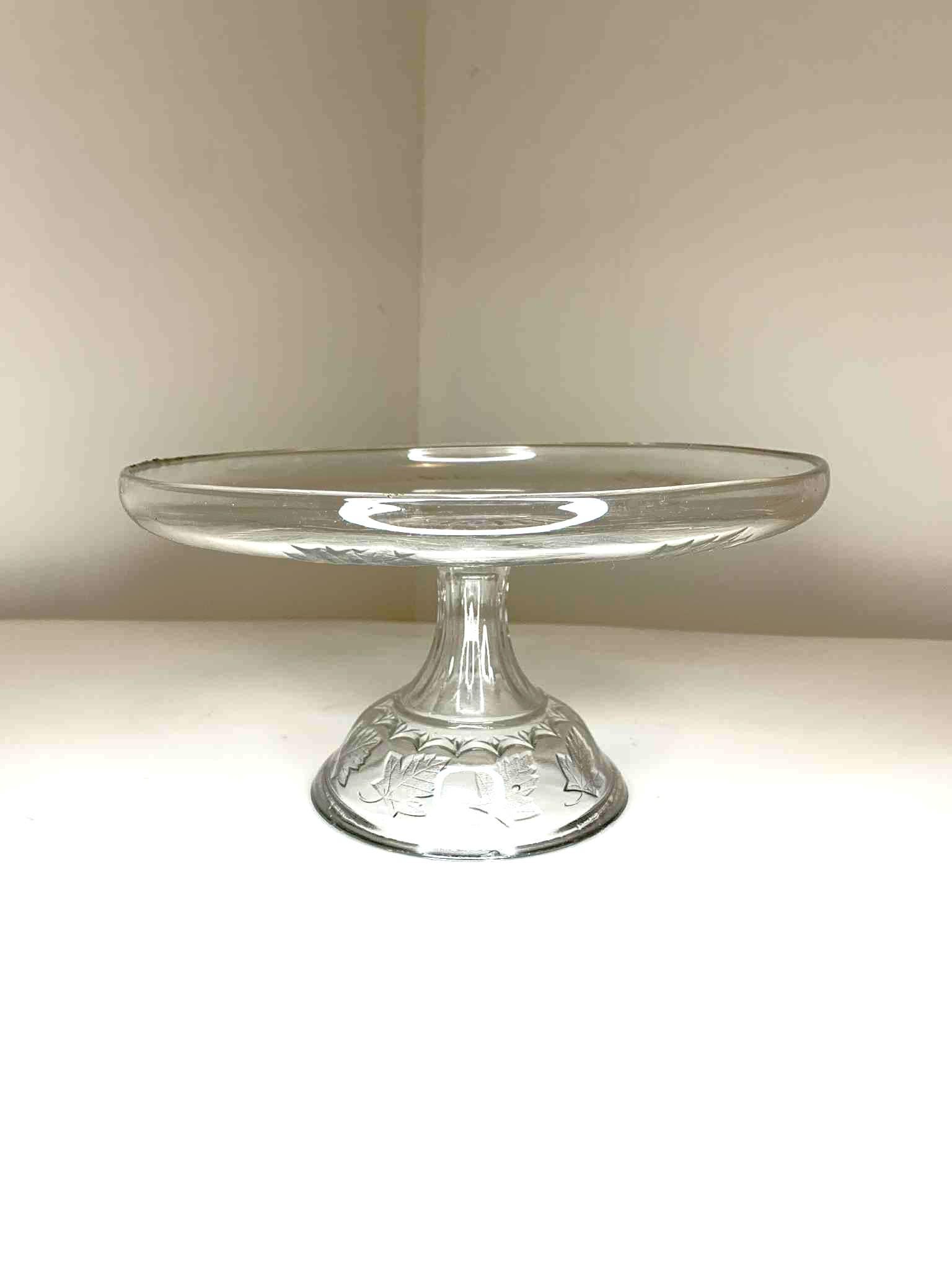Maple Leaf Decorated Pressed Glass Pedestal Cake Plate