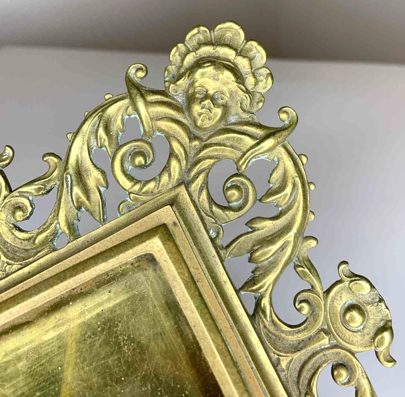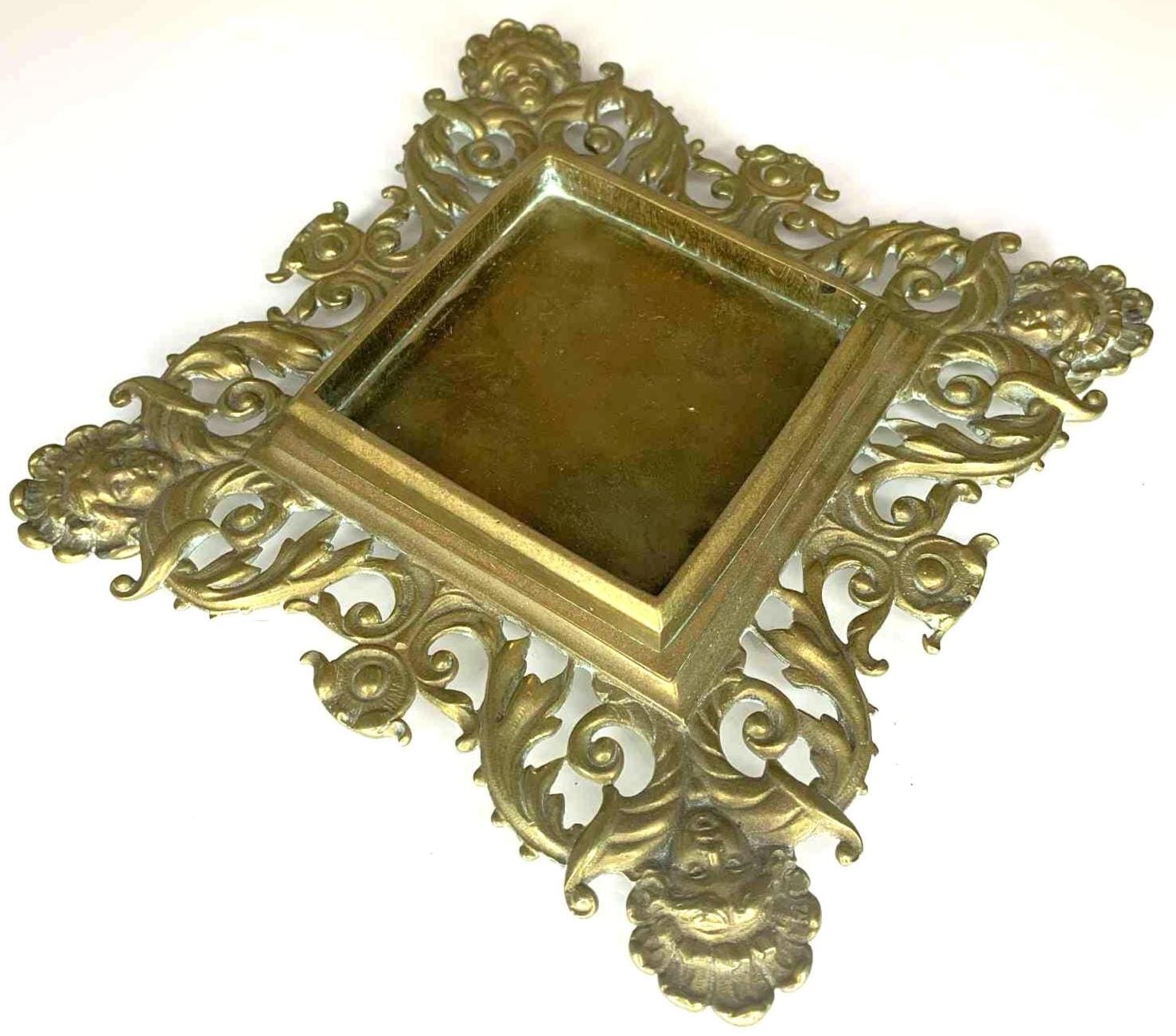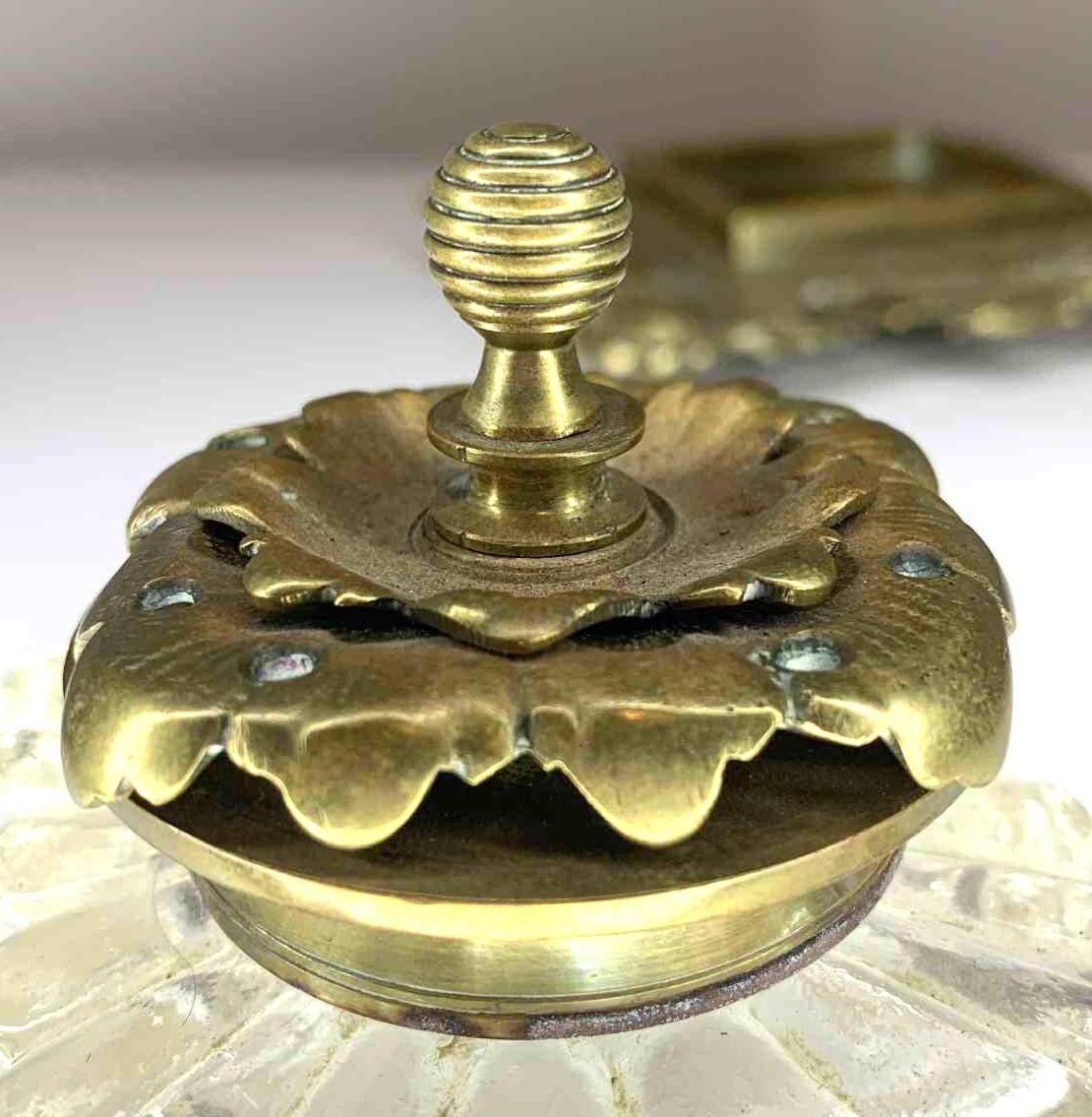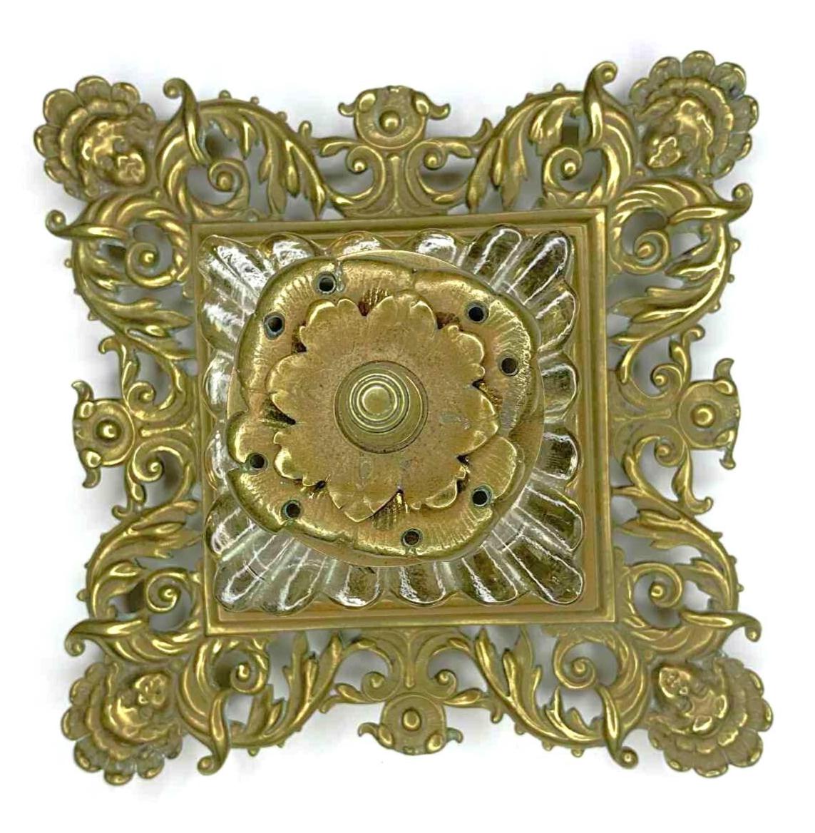 Ornate Vintage Solid Brass Ink Well Holder With Crystal Well