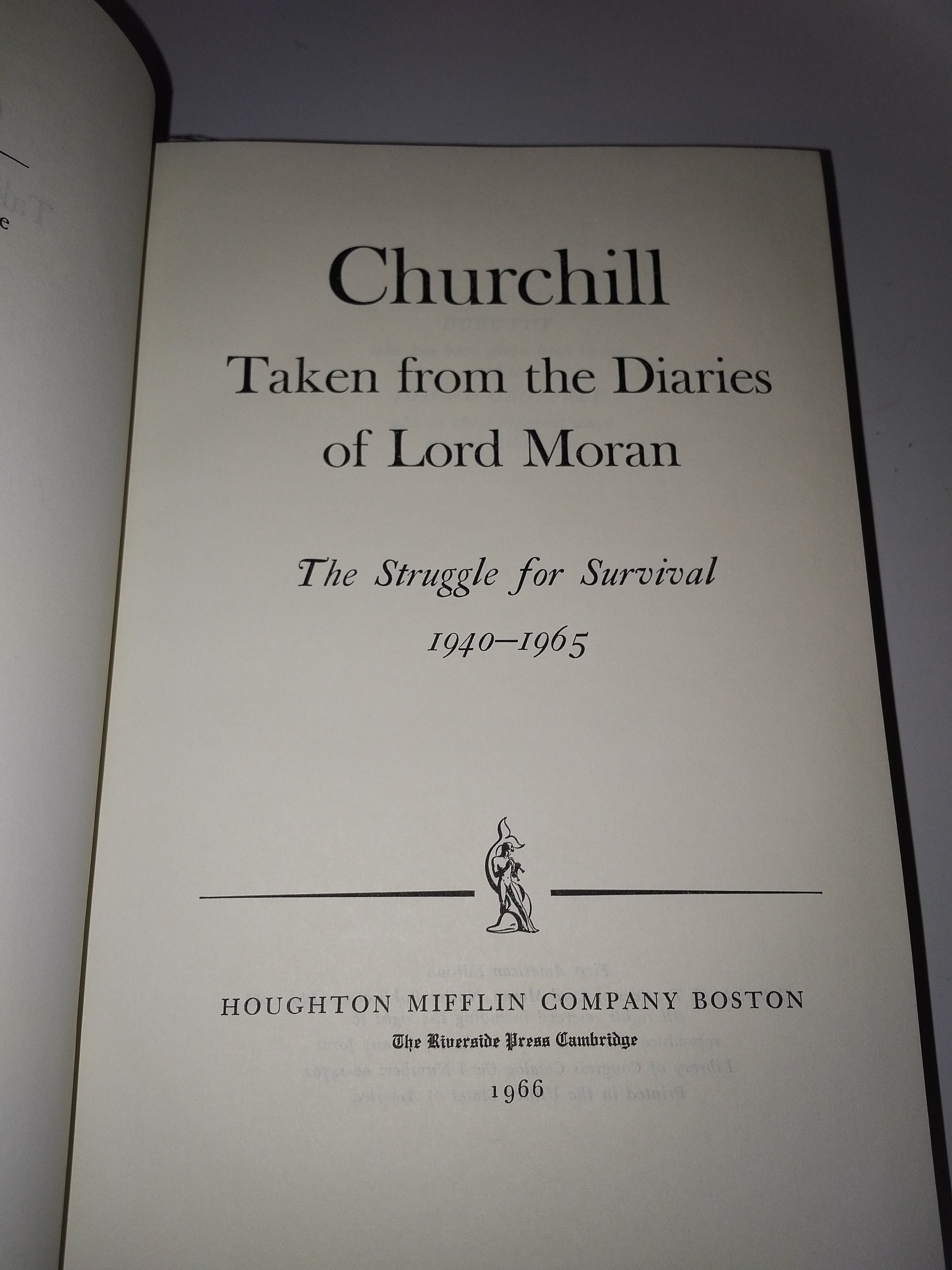 Churchill Taken from the Diaries of Lord Moran: The Struggle for Survival 1940-1965, 1st American Edition with Dust Jacket