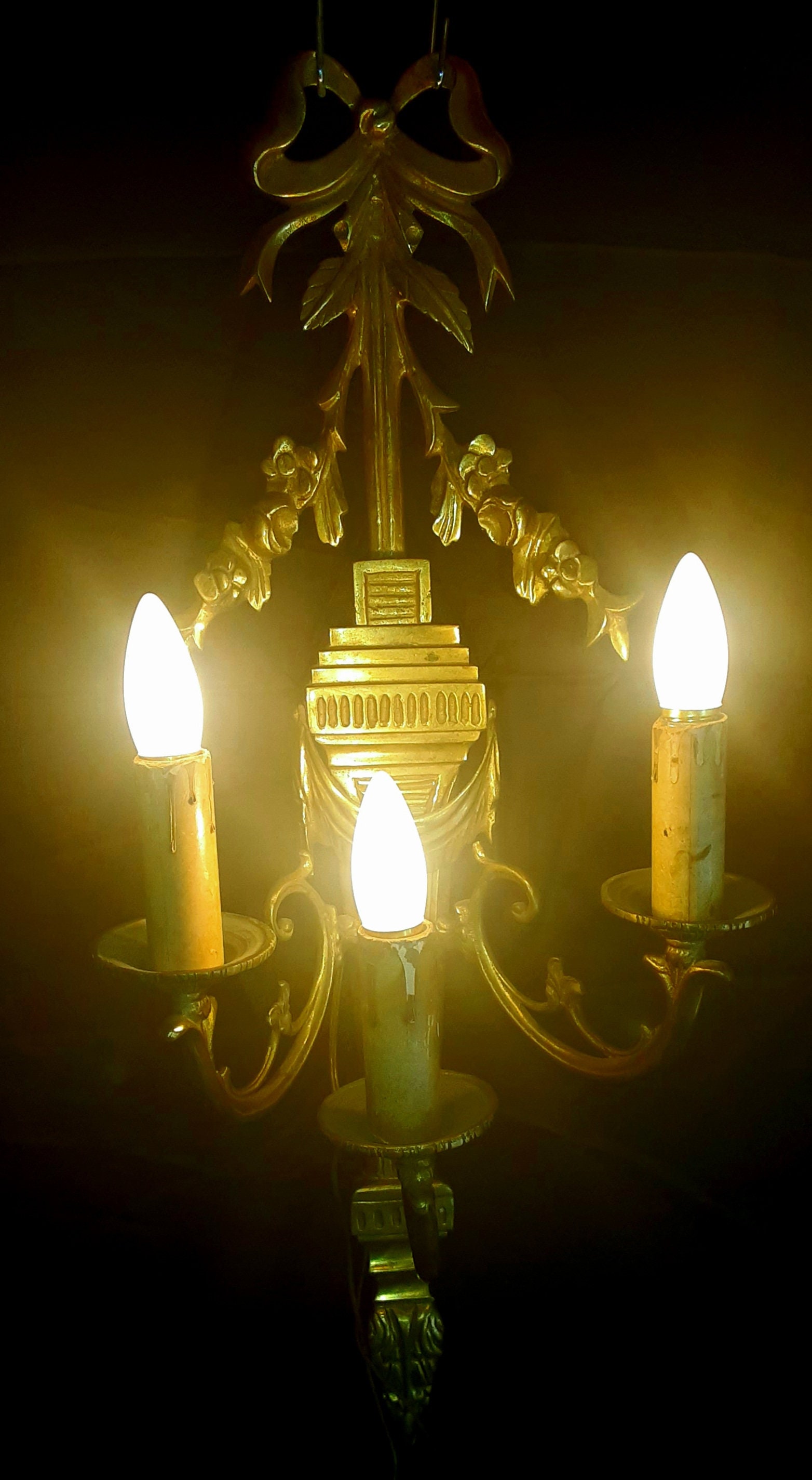 Condition: excellent vintage condition with some wear to the candle light covers. Recommended that the light be rewired before use.